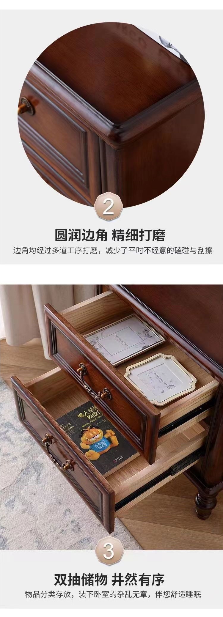 미국 입국 럭셔리 솔리드 우드 침대 옆 테이블 한국 목회 복고풍 침실 침실 침실 캐비닛 테이블 램프 캐비닛 서랍 보관 캐비닛