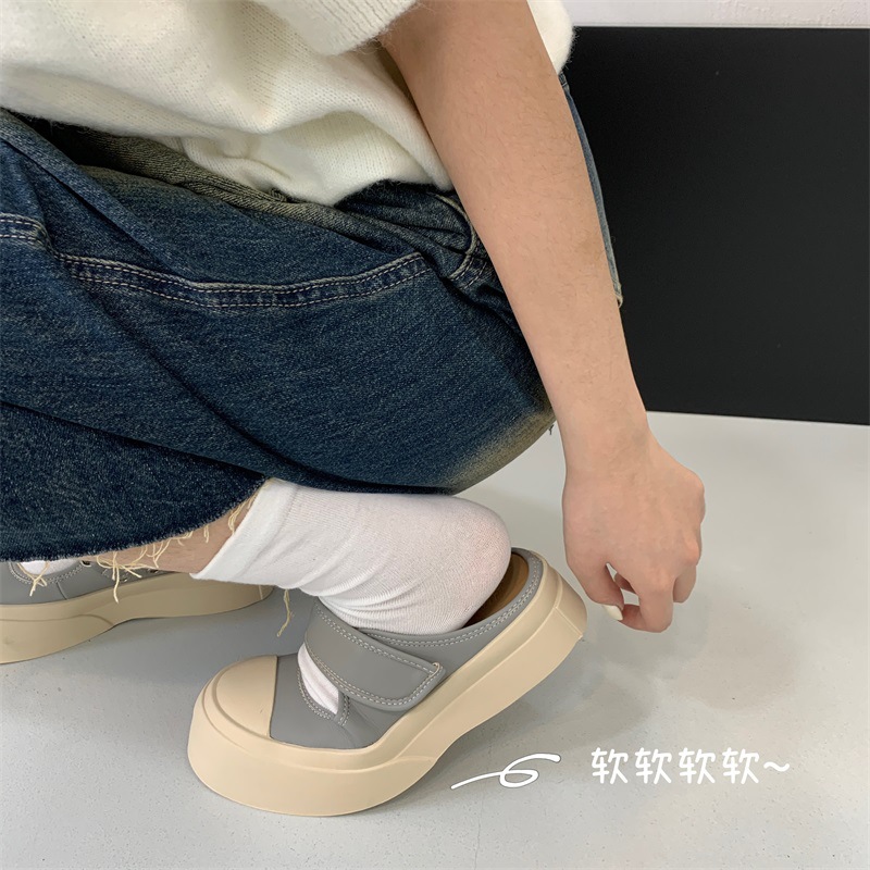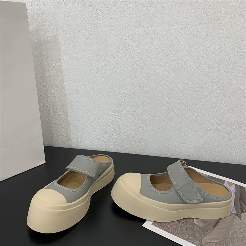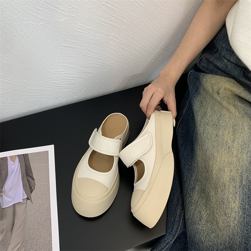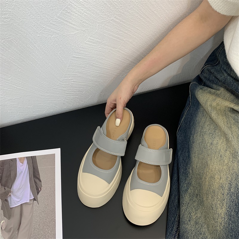 2025 봄 가을 새 의상 게으른 슬립 온 신발 한국 스타일 라운드 발가락 벨크로 두꺼운 하단 반 슬리퍼