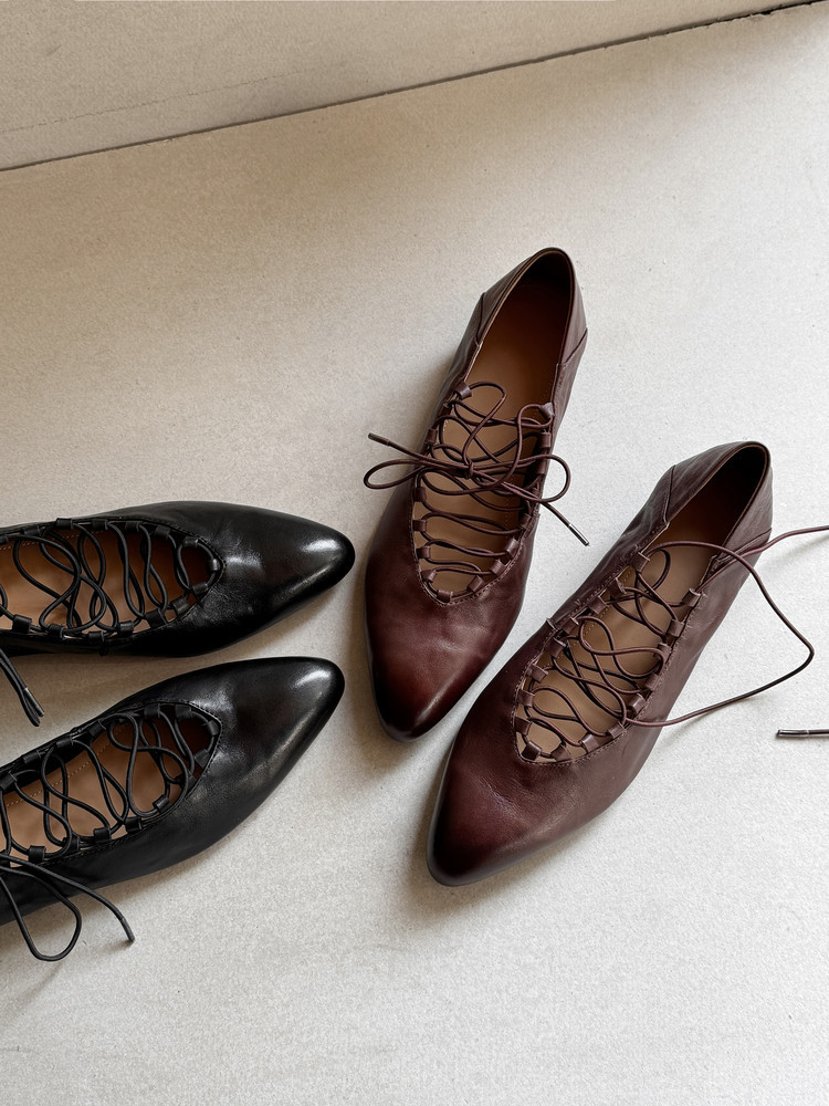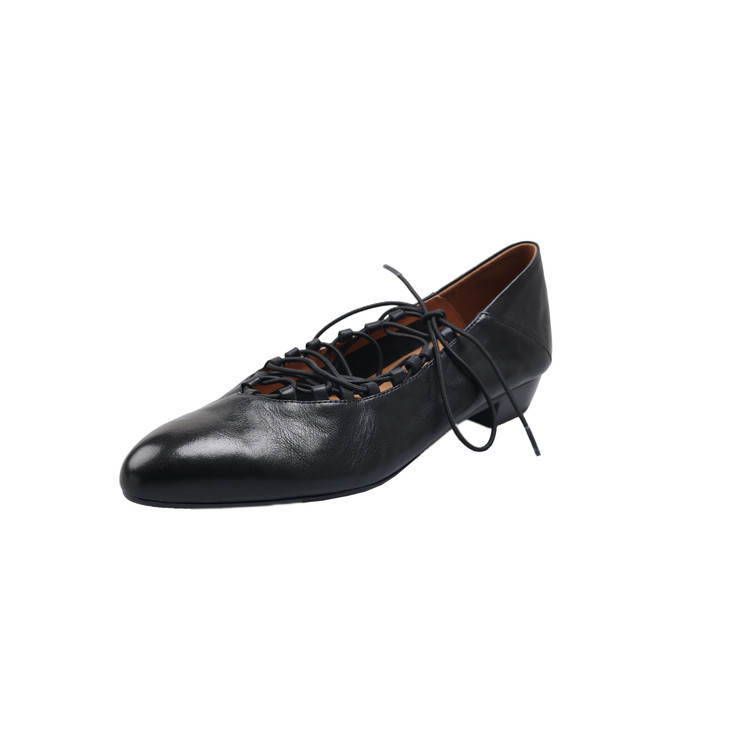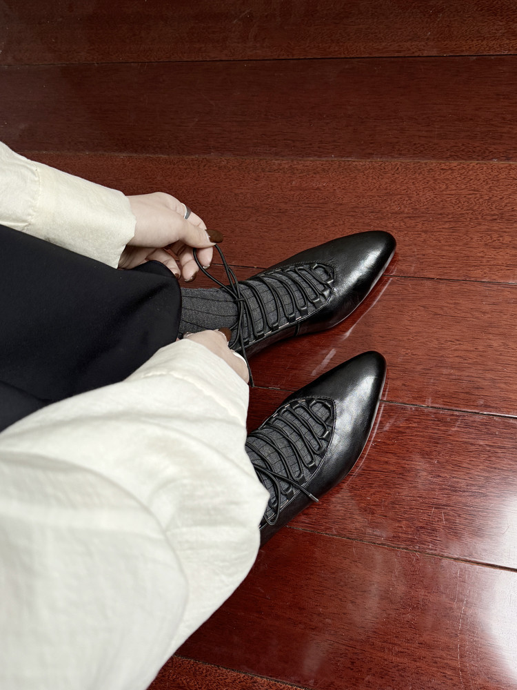 가죽 로마 스트랩 신발의 첫 번째 레이어 여성의 얕은 입 신발 2025 이른 봄 새 가죽 내부 및 외부 플랫 힐 여성 신발스토어 가기