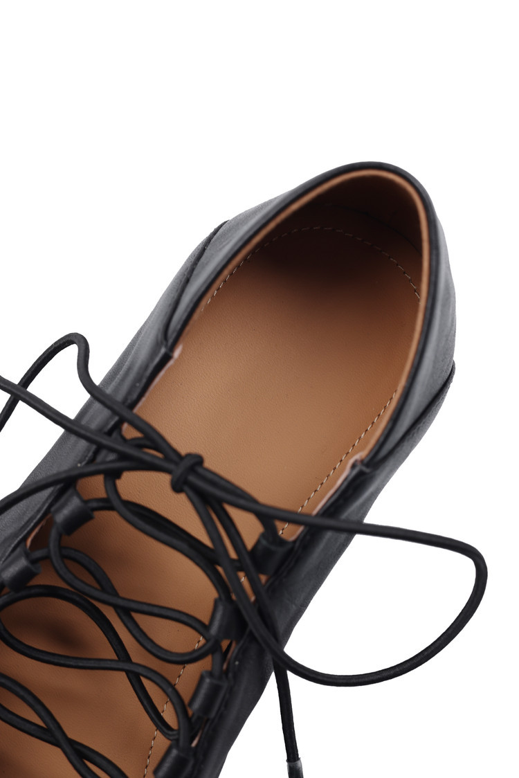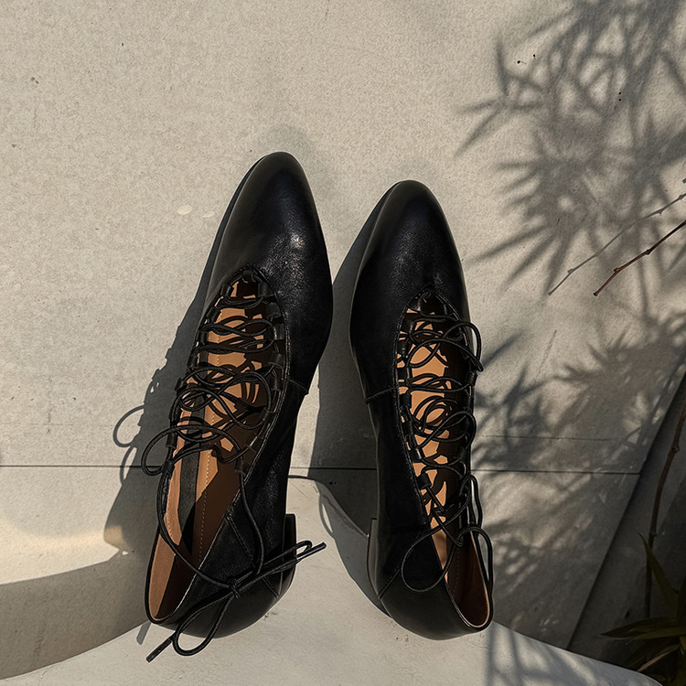 가죽 로마 스트랩 신발의 첫 번째 레이어 여성의 얕은 입 신발 2025 이른 봄 새 가죽 내부 및 외부 플랫 힐 여성 신발