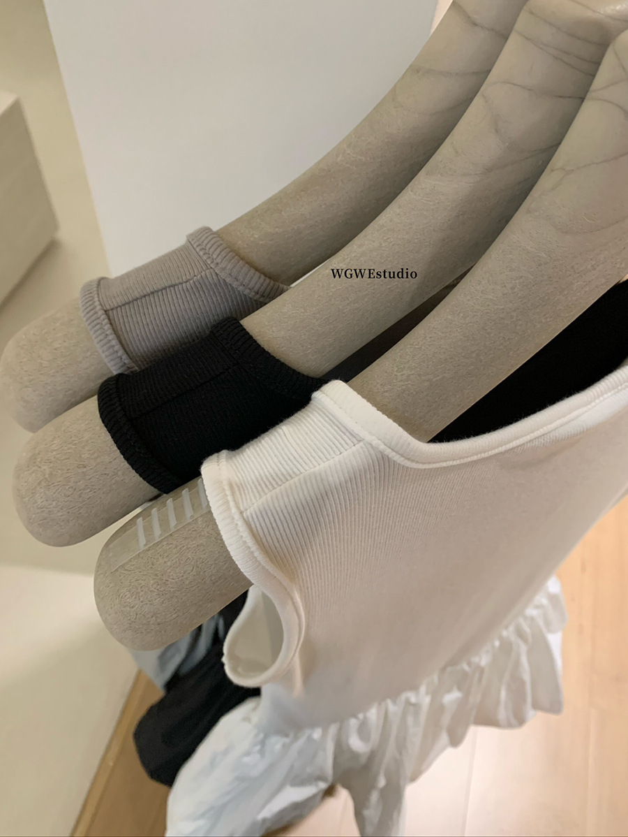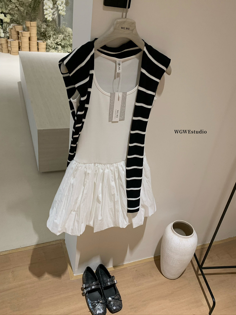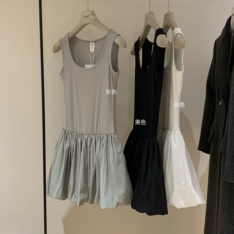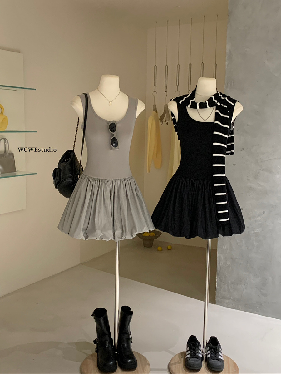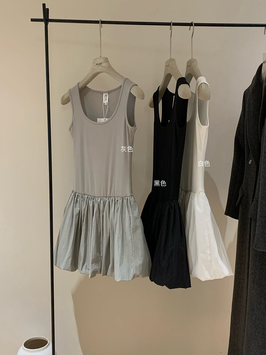 WGWE3332 발레 소녀 꽃봉오리 드레스 여름 슬림핏 U넥 민소매 원피스 상큼하고 달콤한 단색