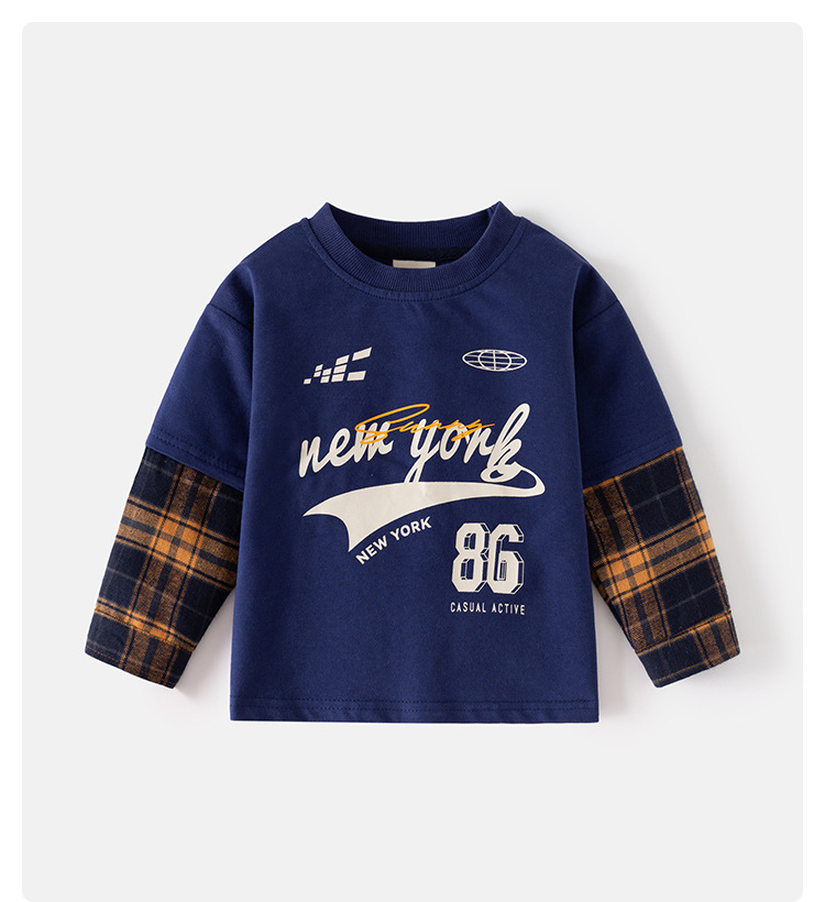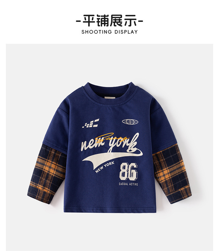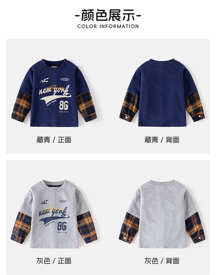봄과 가을 소년 서양식 면 2 피스 티셔츠 2025 한국 스타일 새로운 어린 시절 시원한 긴 소매베이스 셔츠스토어 가기