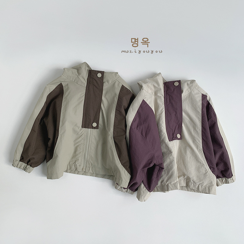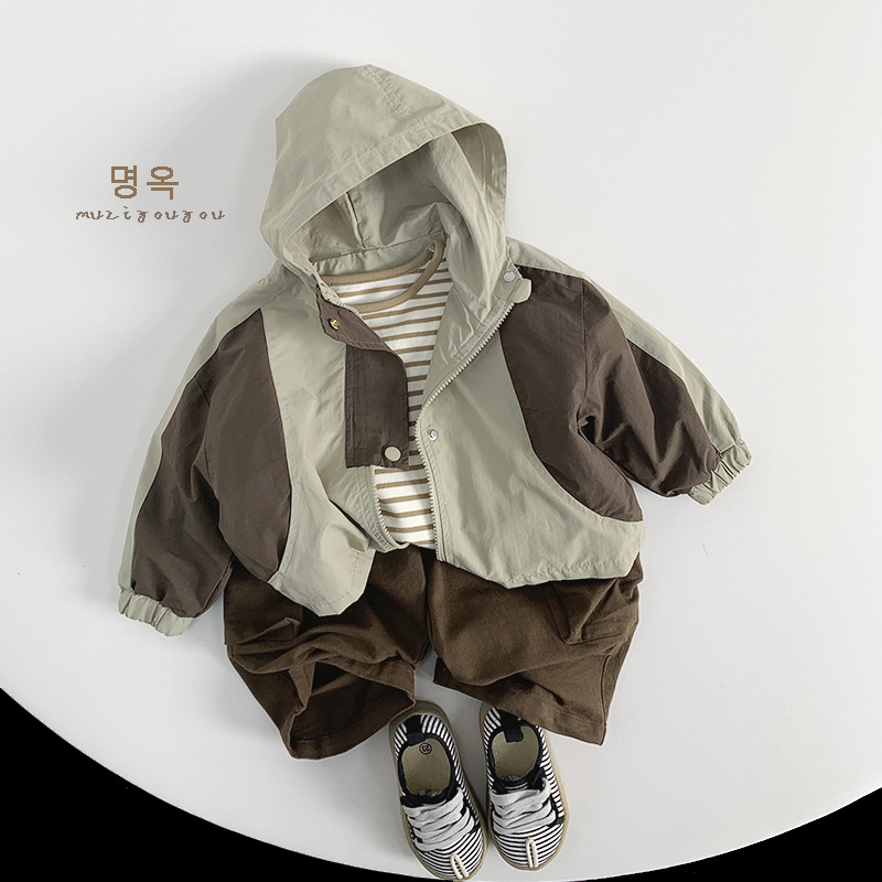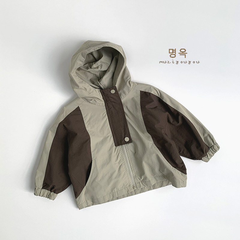 어린이 콘트라스트 코트 2025 봄 새 소년 소녀 후드 탑 중소형 어린이 아기의 맞춤형 야외 아동복