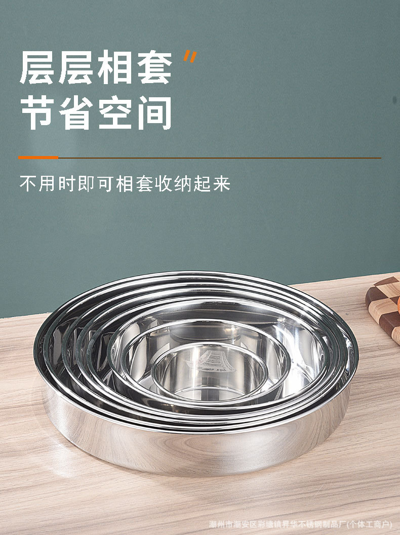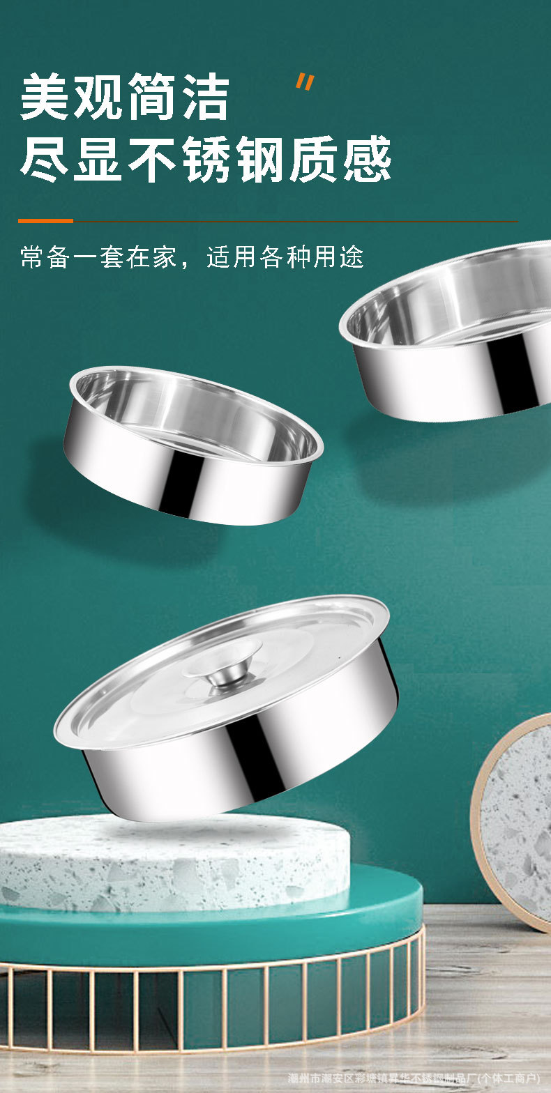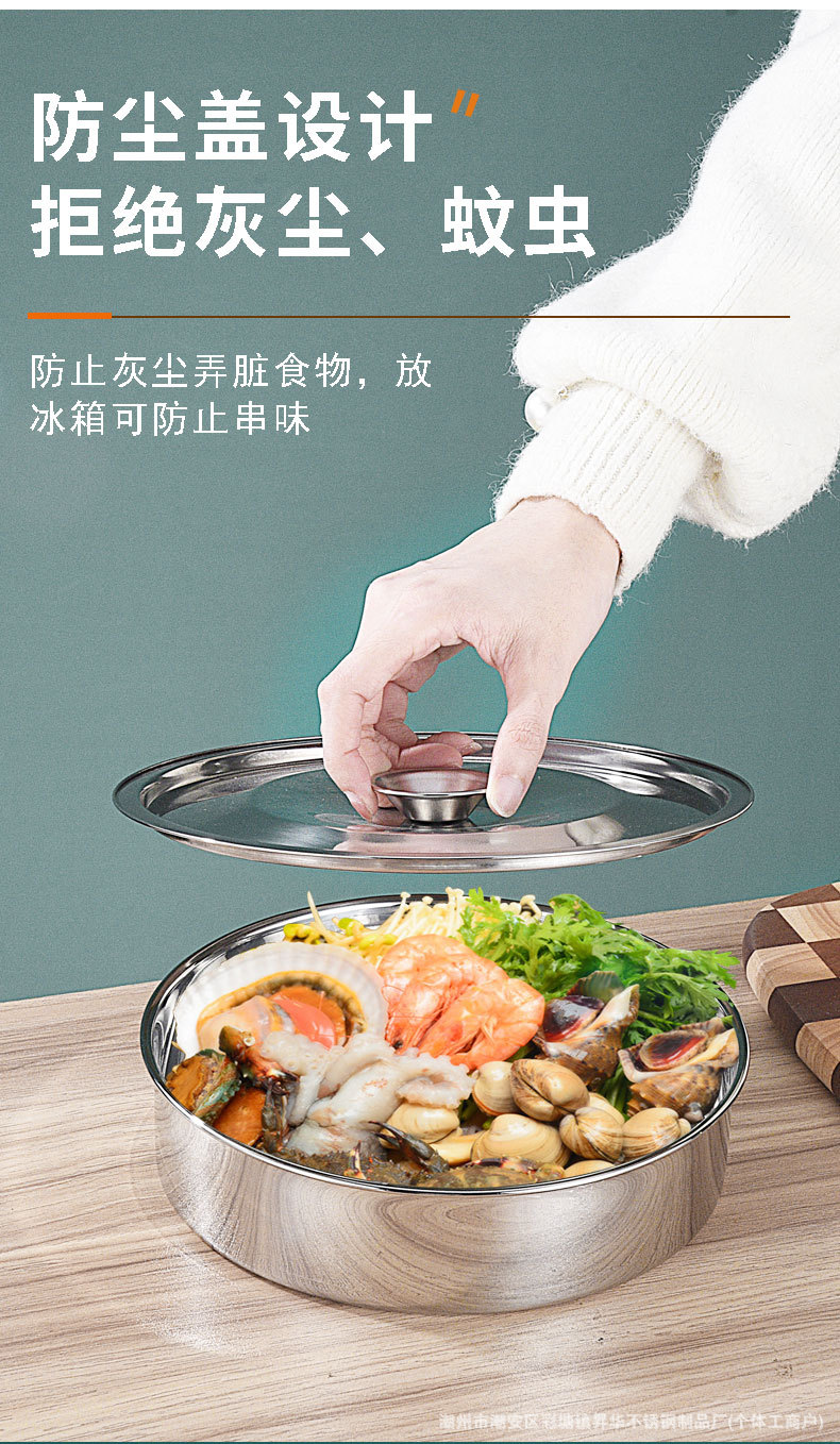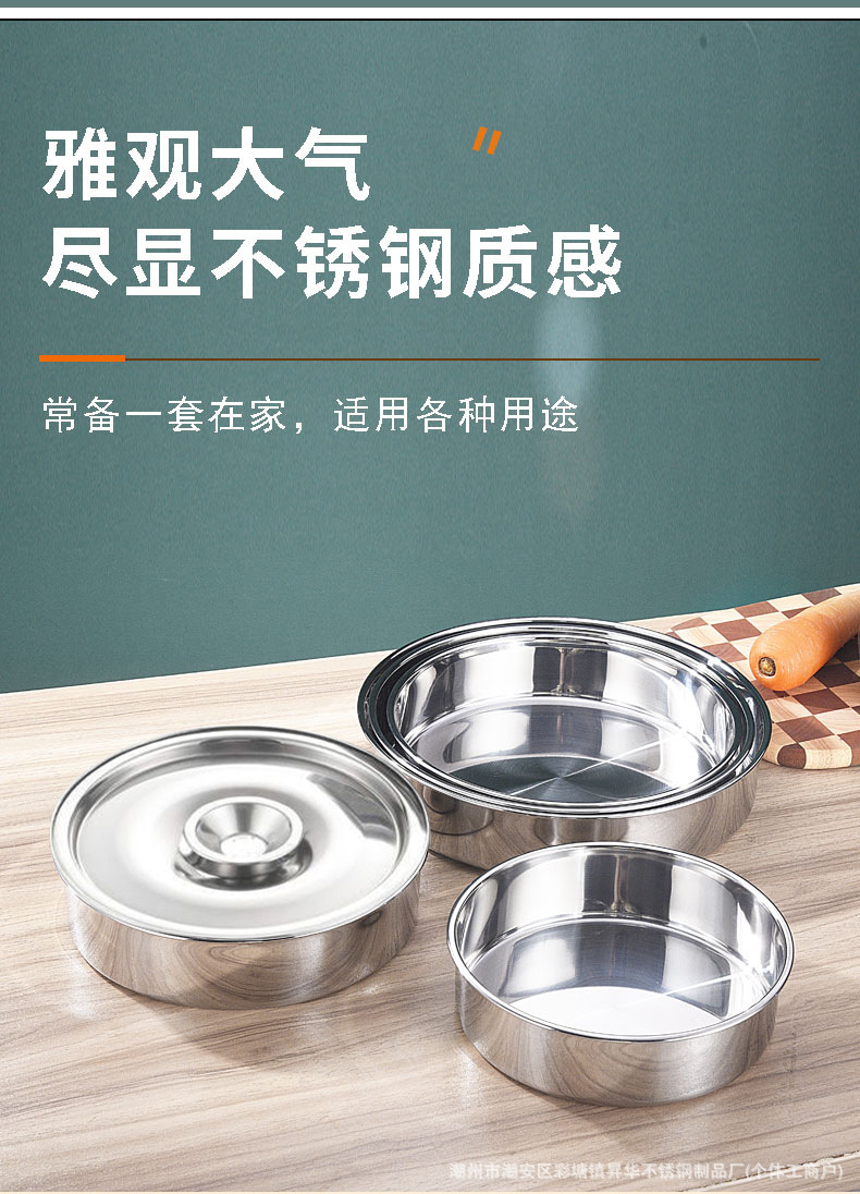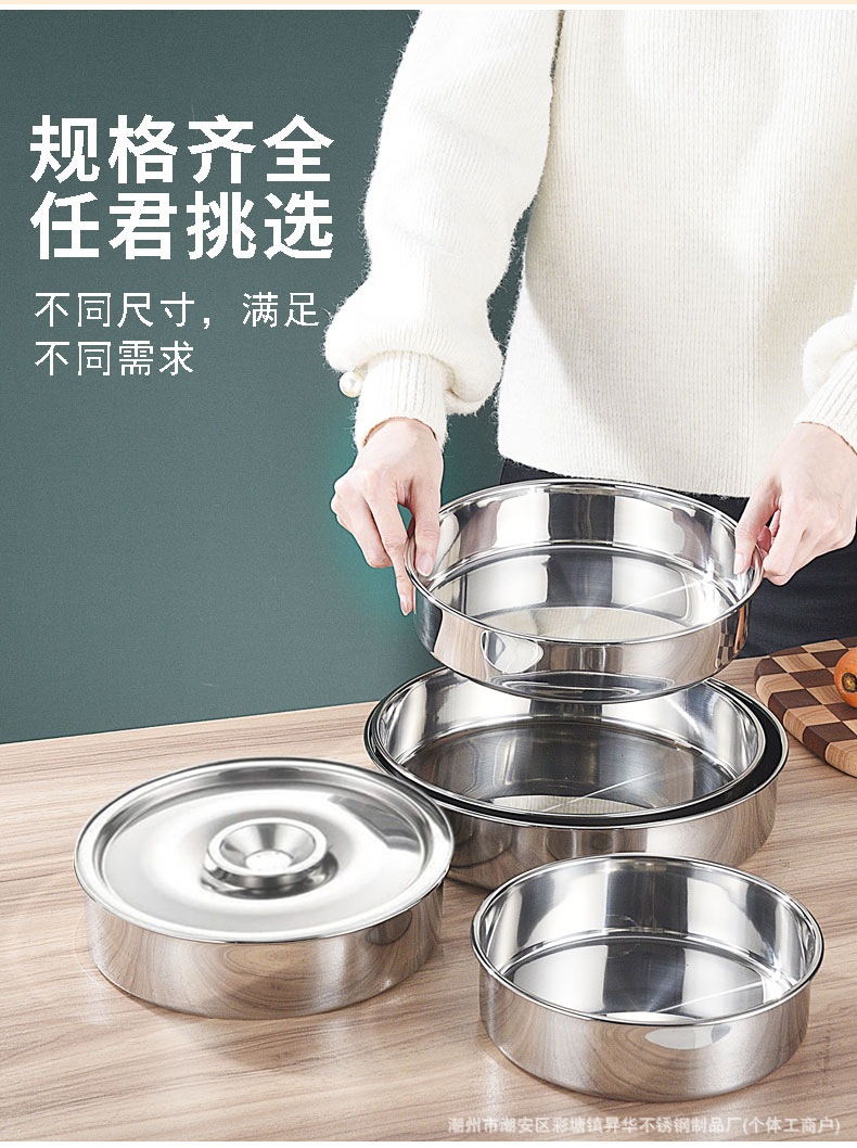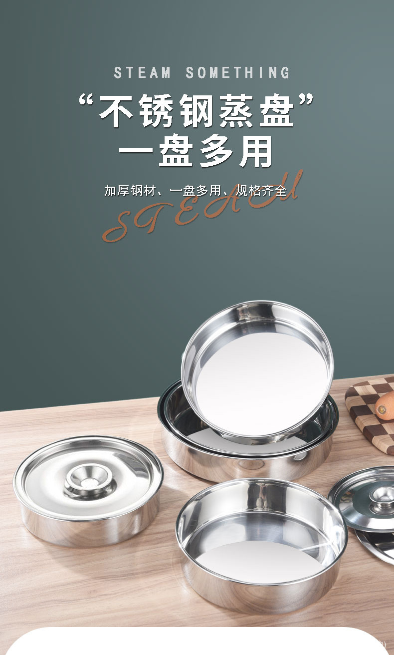뚜껑이있는 김이 나는 트레이 스테인레스 스틸 찐 케이크 차가운 가죽 상업용 대형 플레이트 스트레이트 플랫 바닥 트레이 딥 플레이트 라운드 찐 쌀 디스크스토어 가기