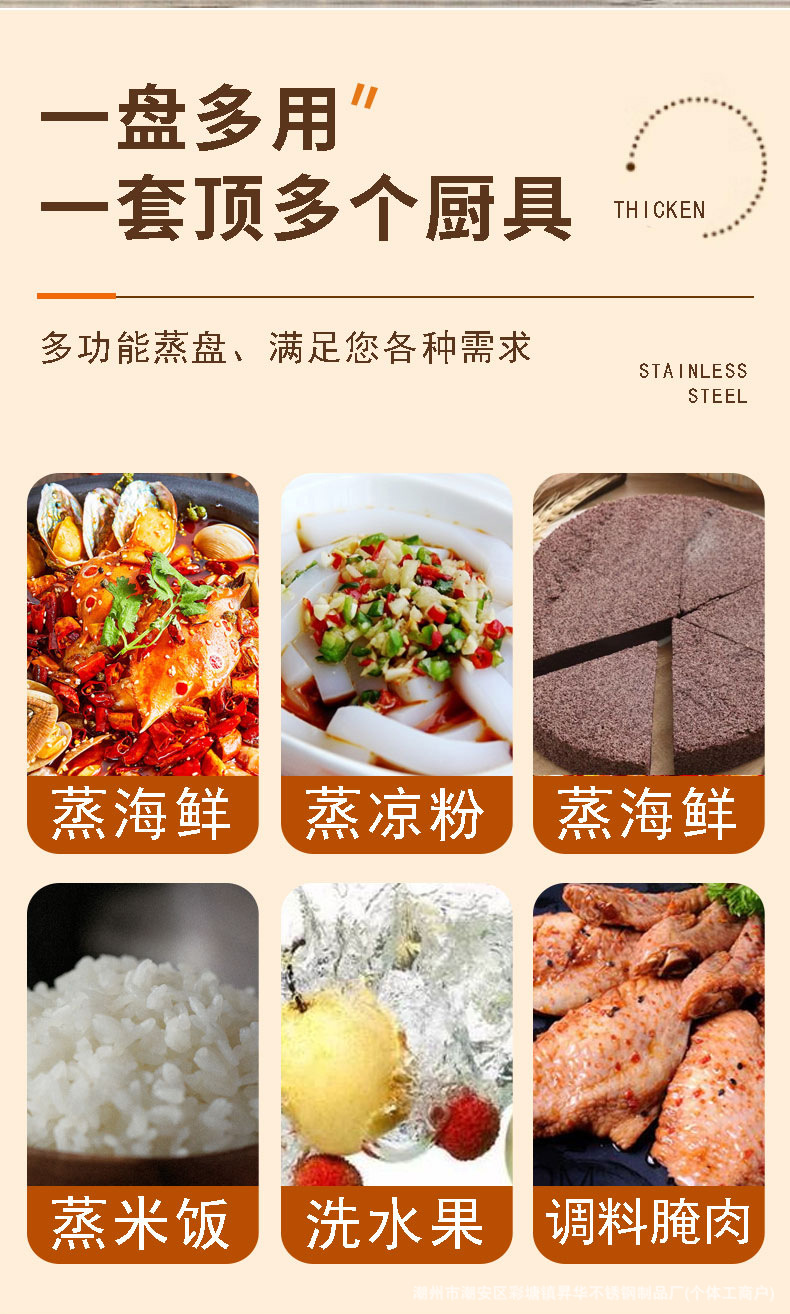 뚜껑이있는 김이 나는 트레이 스테인레스 스틸 찐 케이크 차가운 가죽 상업용 대형 플레이트 스트레이트 플랫 바닥 트레이 딥 플레이트 라운드 찐 쌀 디스크