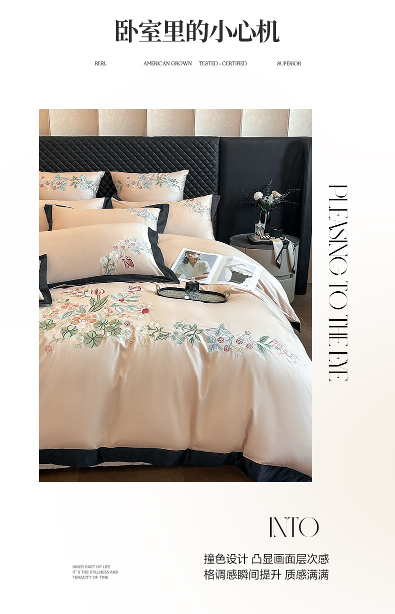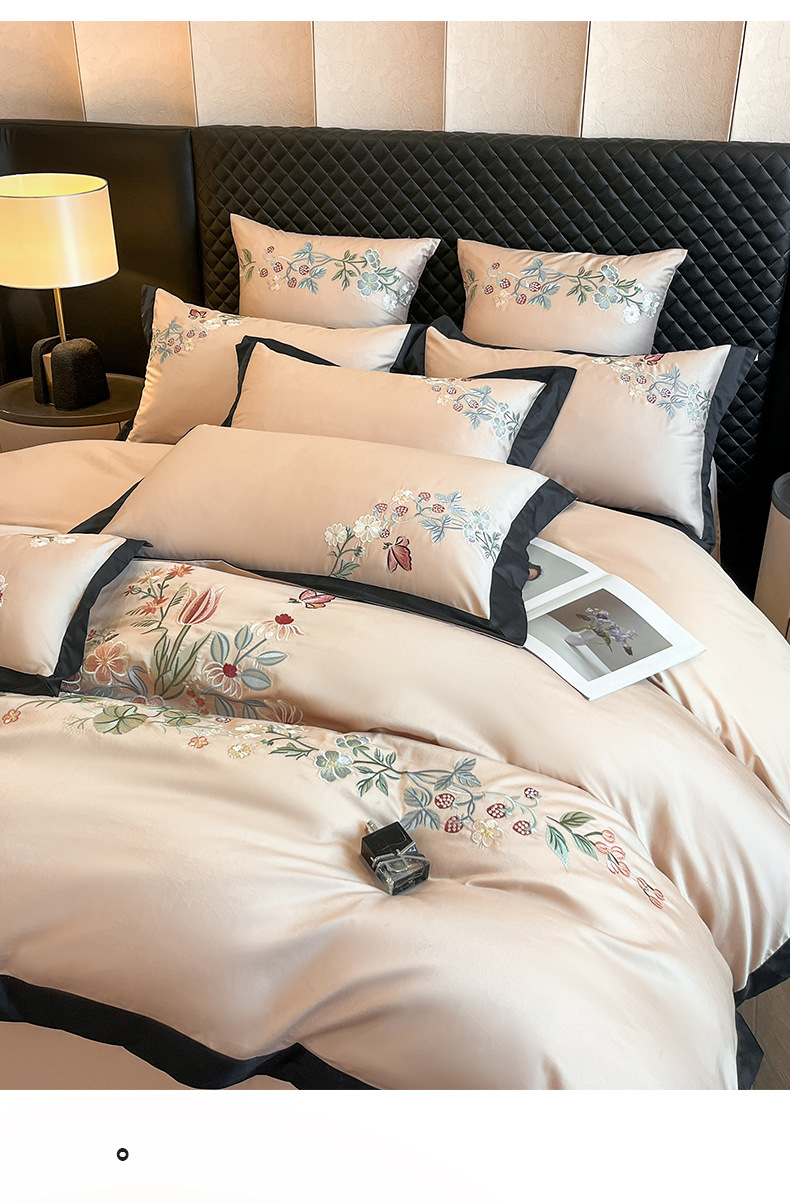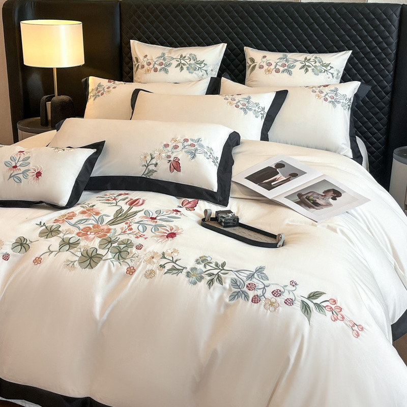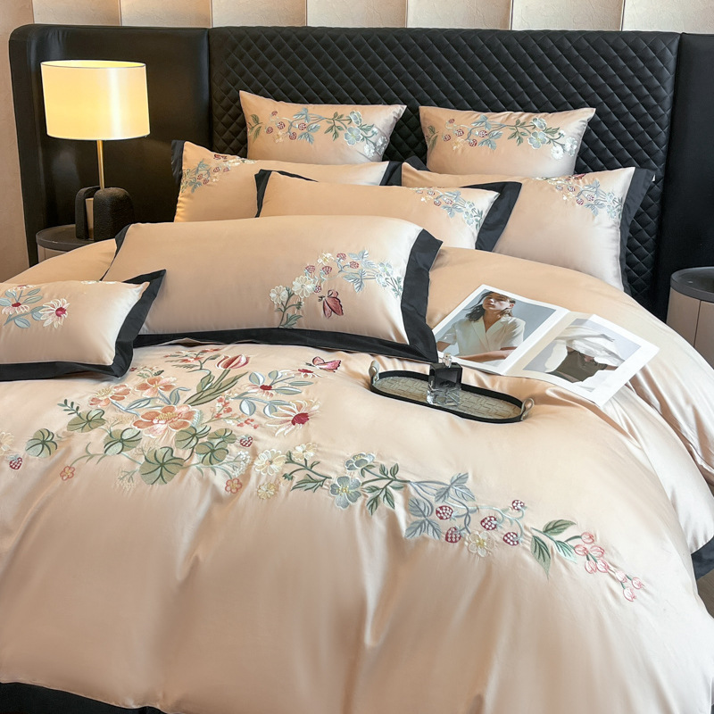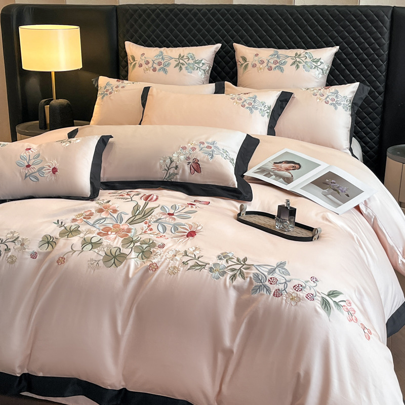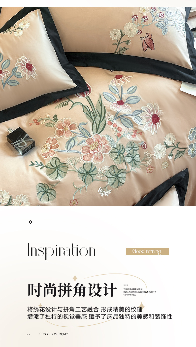 새로운 피부 친화적 인 코튼 4 피스 세트 대조 컬러 피부 친화적 인 통기성 퀼트 커버 침대 뚱뚱한 4 피스 자수 코너 침대 세트