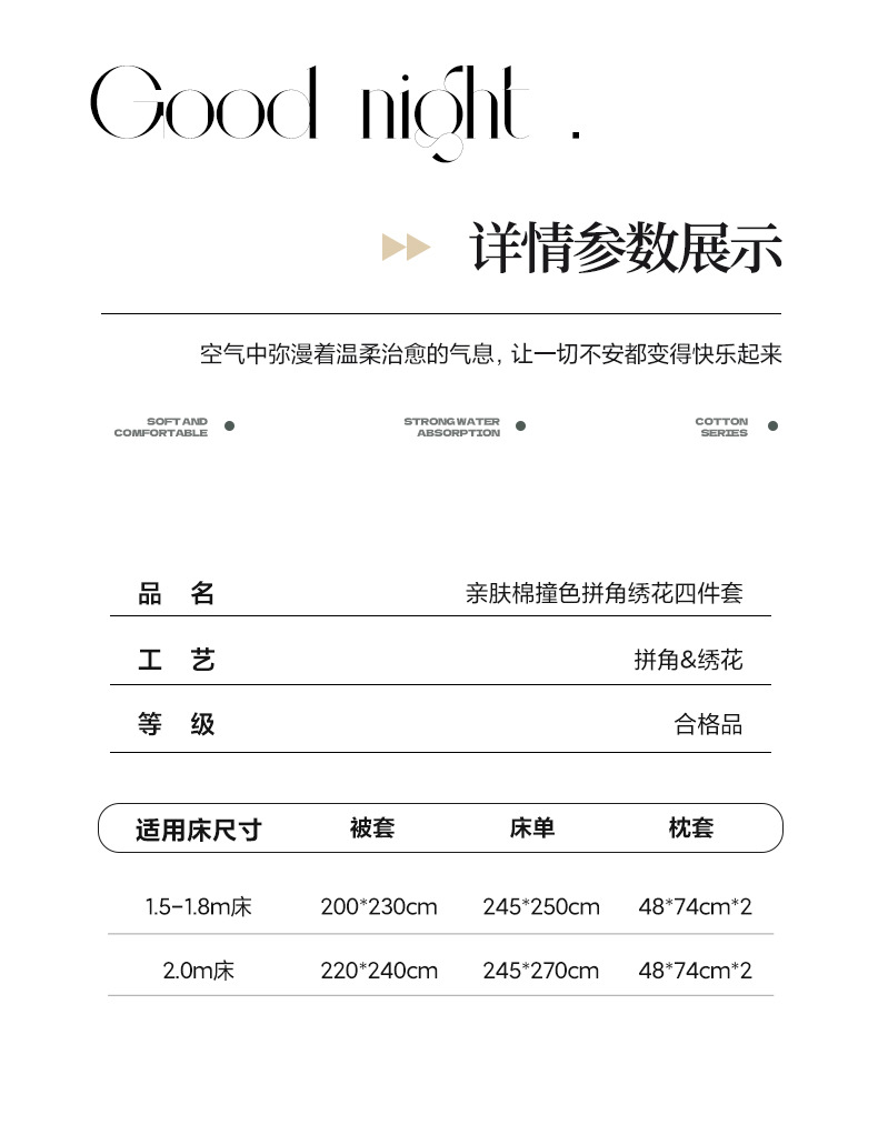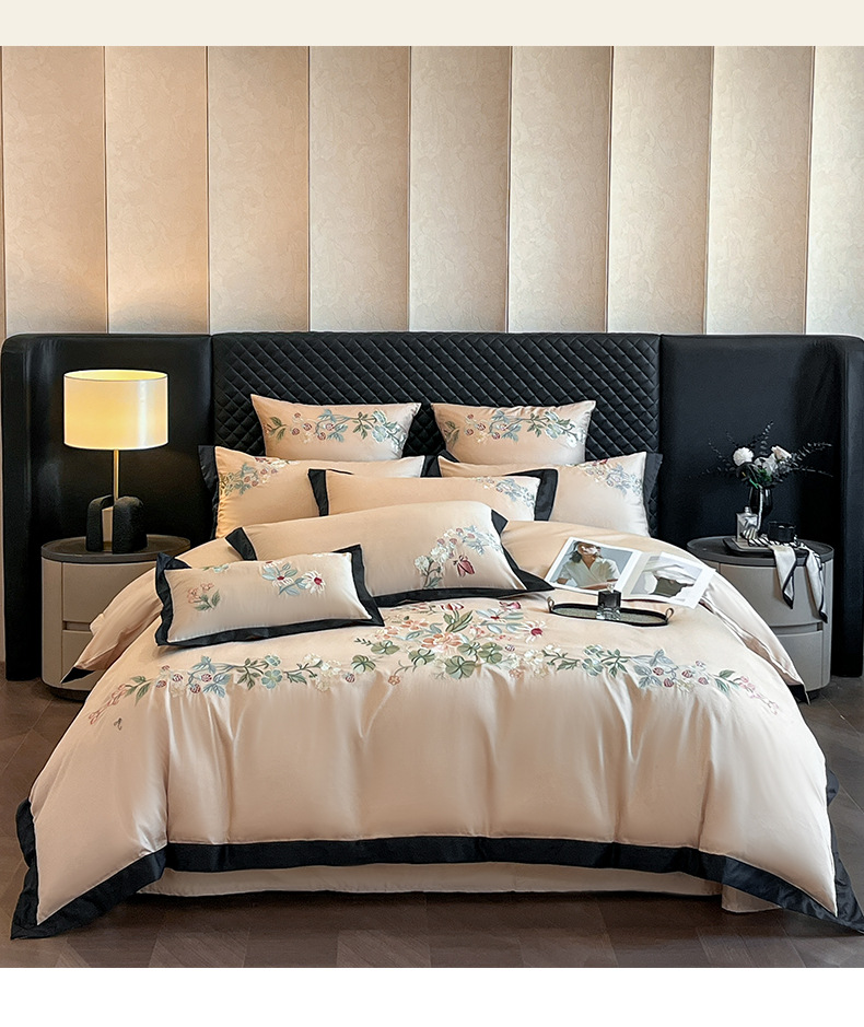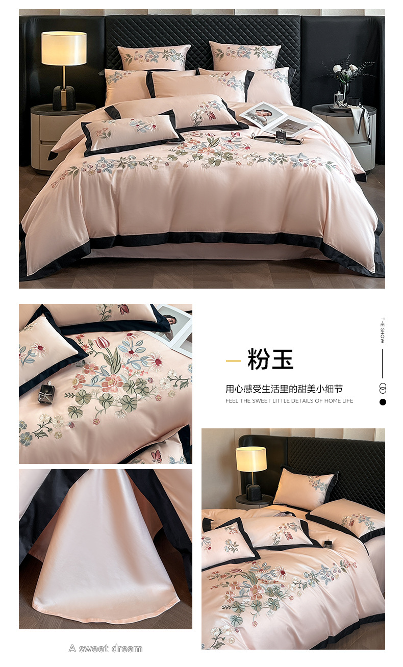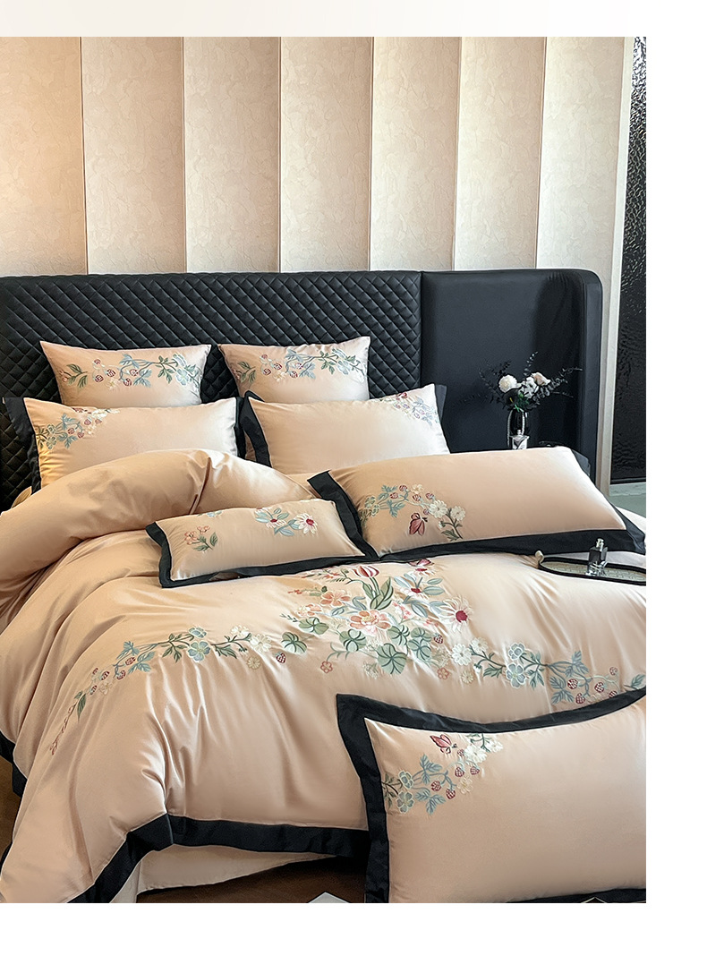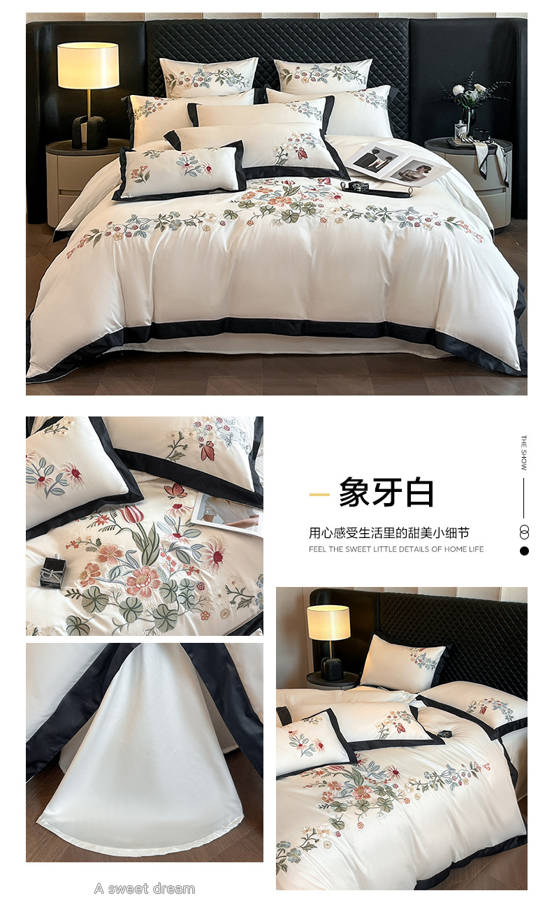 새로운 피부 친화적 인 코튼 4 피스 세트 대조 컬러 피부 친화적 인 통기성 퀼트 커버 침대 뚱뚱한 4 피스 자수 코너 침대 세트