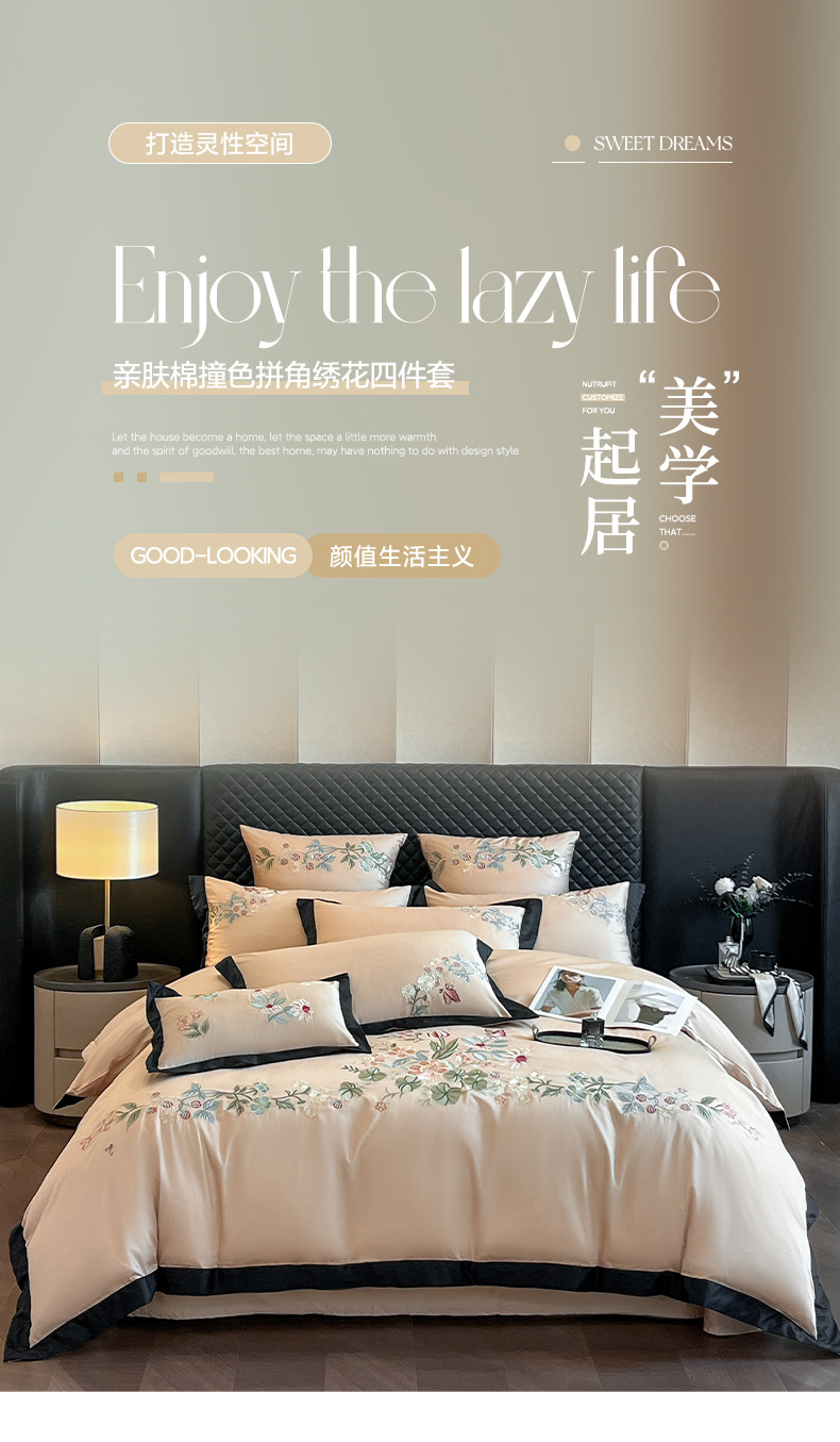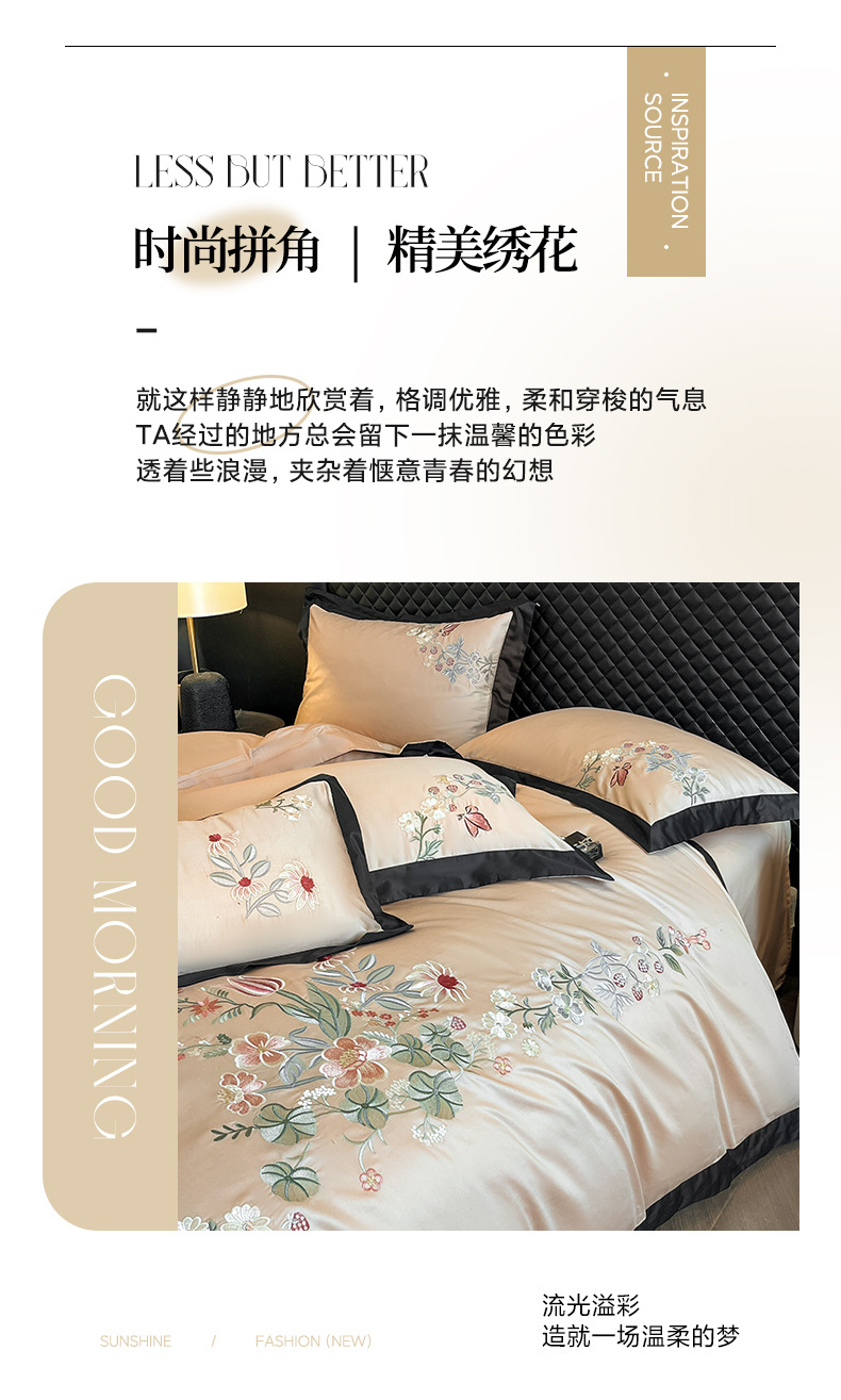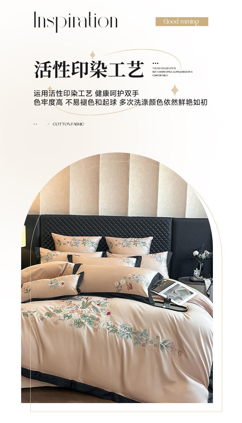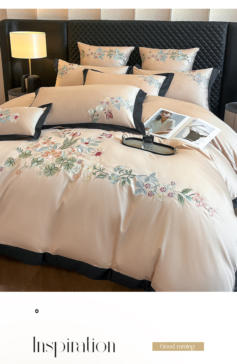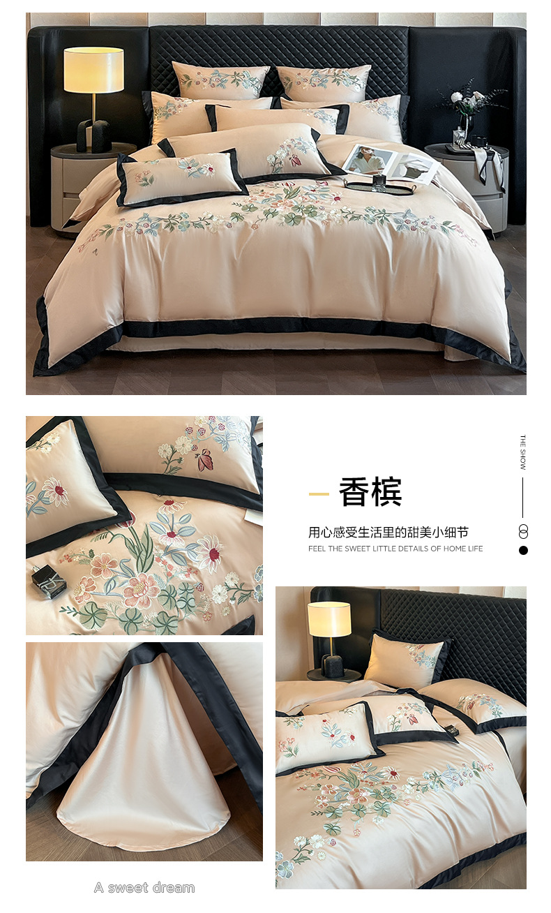 새로운 피부 친화적 인 코튼 4 피스 세트 대조 컬러 피부 친화적 인 통기성 퀼트 커버 침대 뚱뚱한 4 피스 자수 코너 침대 세트