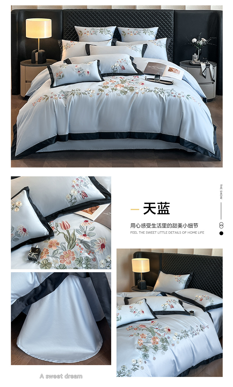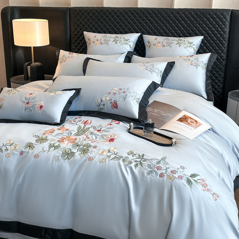 새로운 피부 친화적 인 코튼 4 피스 세트 대조 컬러 피부 친화적 인 통기성 퀼트 커버 침대 뚱뚱한 4 피스 자수 코너 침대 세트스토어 가기