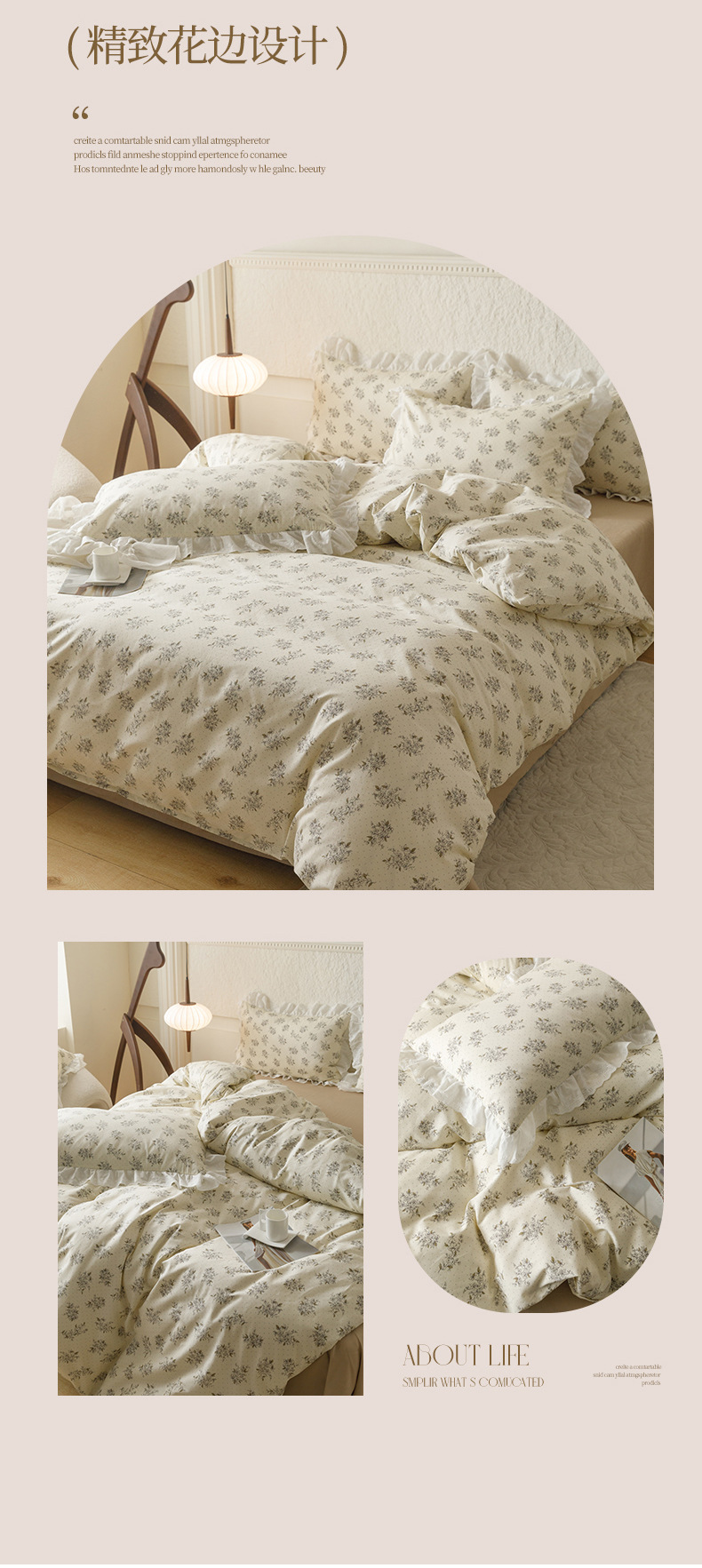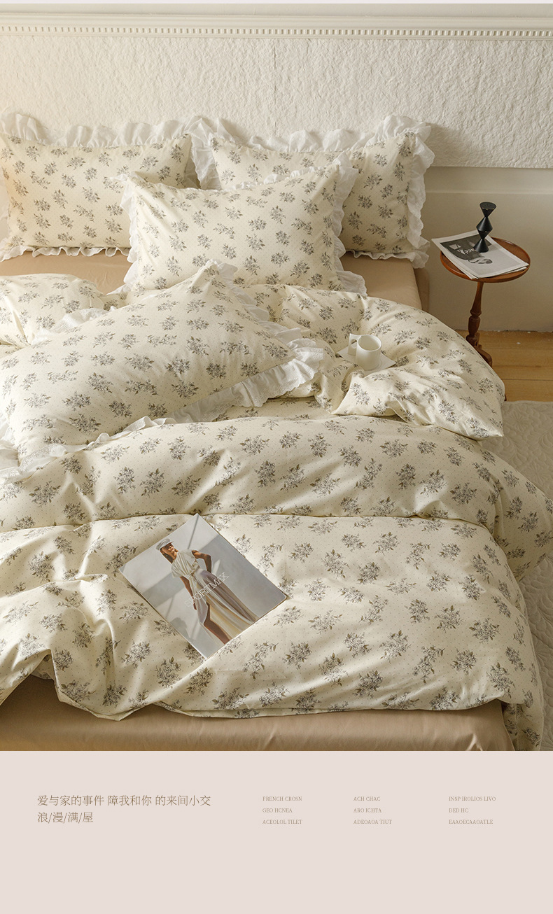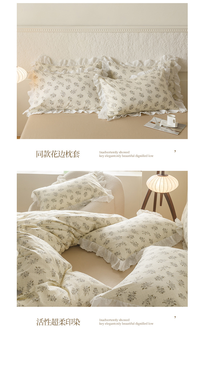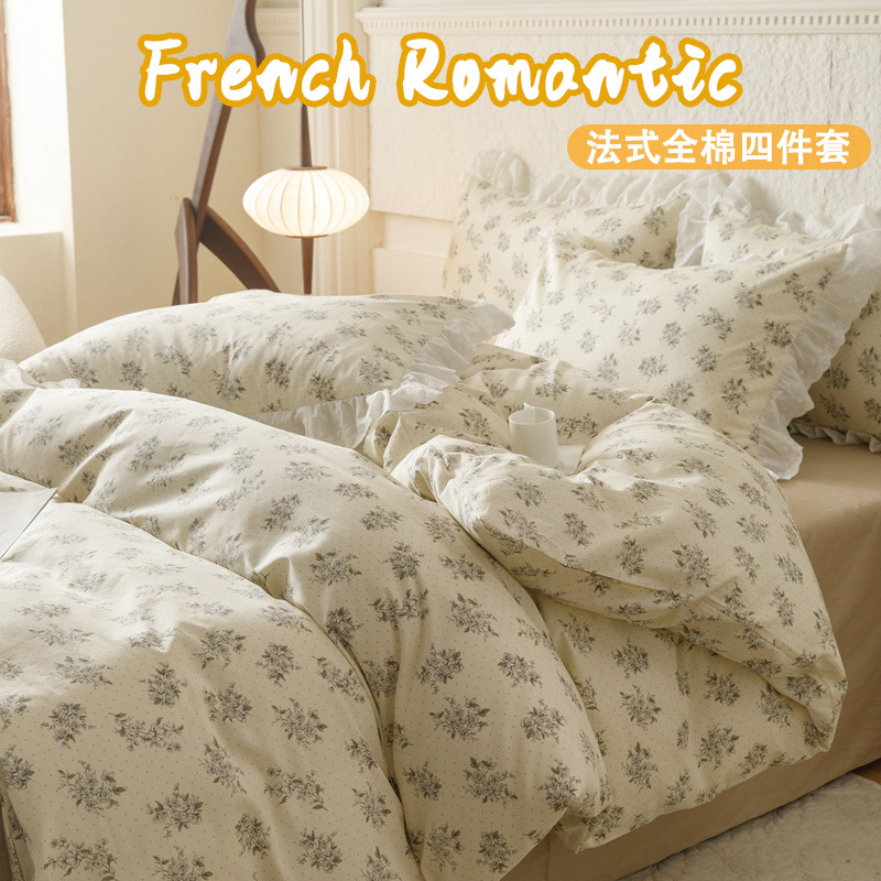 한국 스타일 면 4 조각 세트 면 신선한 스타일 레이스 공주 스타일 침대 시트 퀼트 커버 싱글 및 더블 침대 탑 용품스토어 가기
