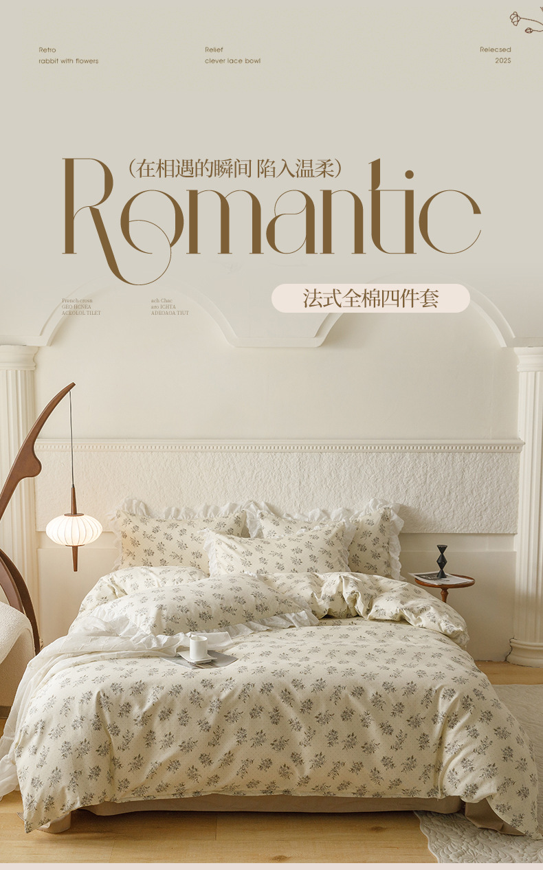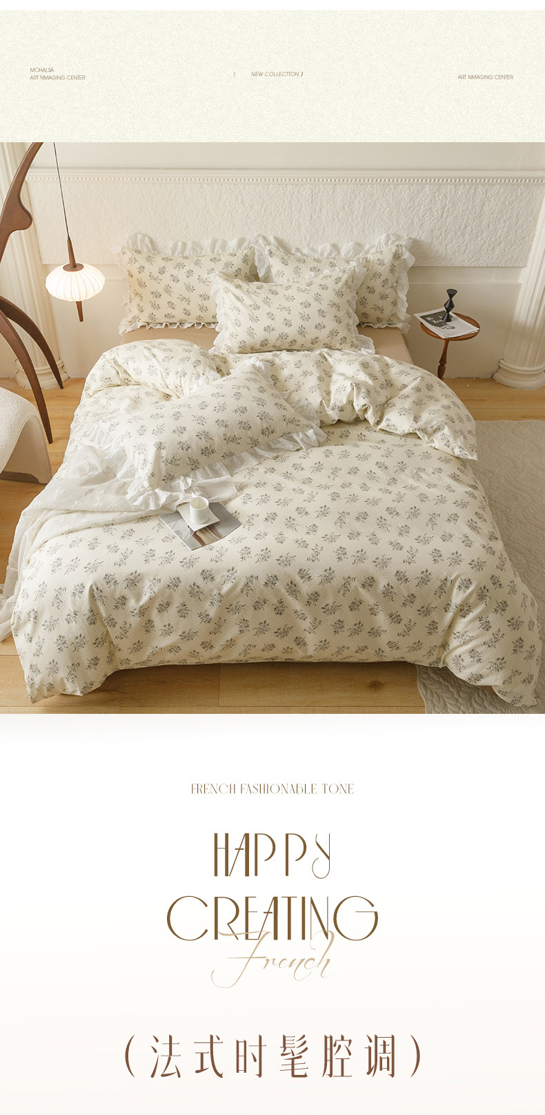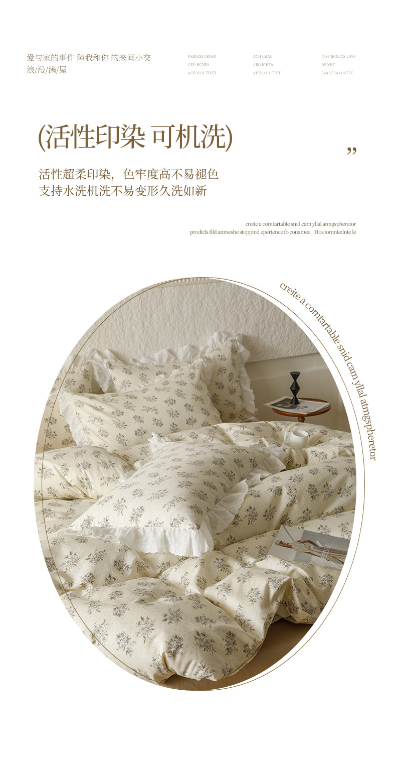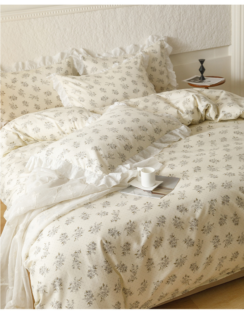 한국 스타일 면 4 조각 세트 면 신선한 스타일 레이스 공주 스타일 침대 시트 퀼트 커버 싱글 및 더블 침대 탑 용품스토어 가기