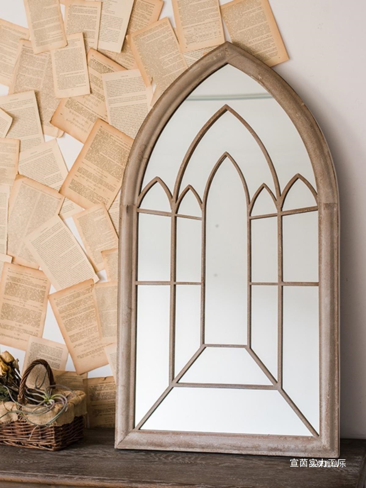 Juhan 복고풍 가짜 창 장식 프랑스 벽걸이 거울 바닥에서 옷을 입는 현관 거실 벽난로 거울 B&B 미국 스타일