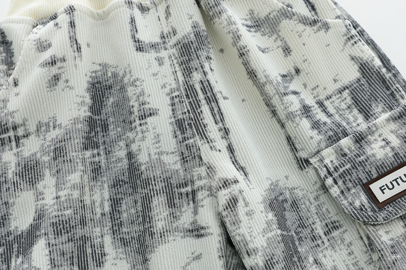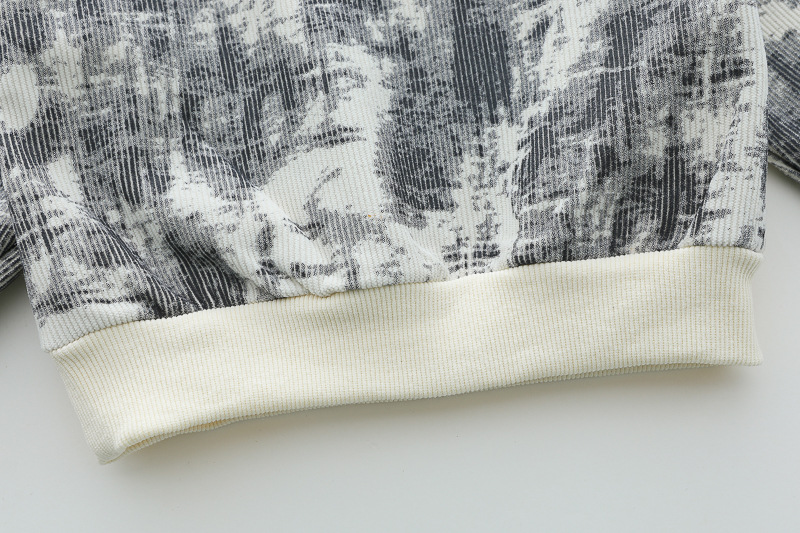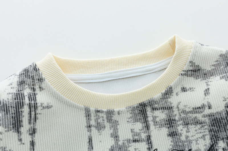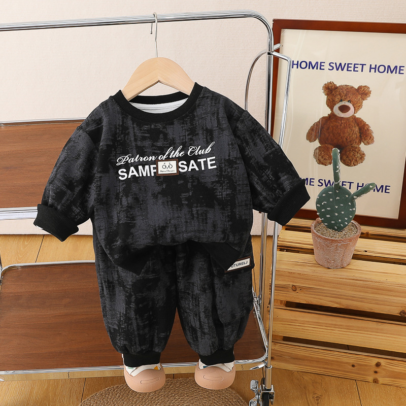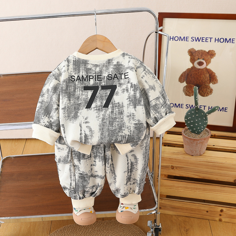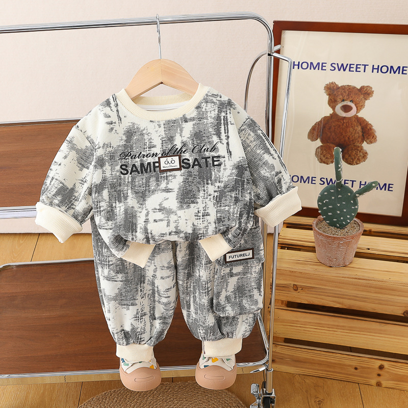 봄 2025 새로운 소년 위장 크루 넥 스웨트 셔츠 긴 소매 세트 소년 스포츠 바지 2 피스 세트
