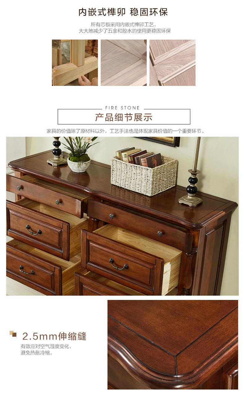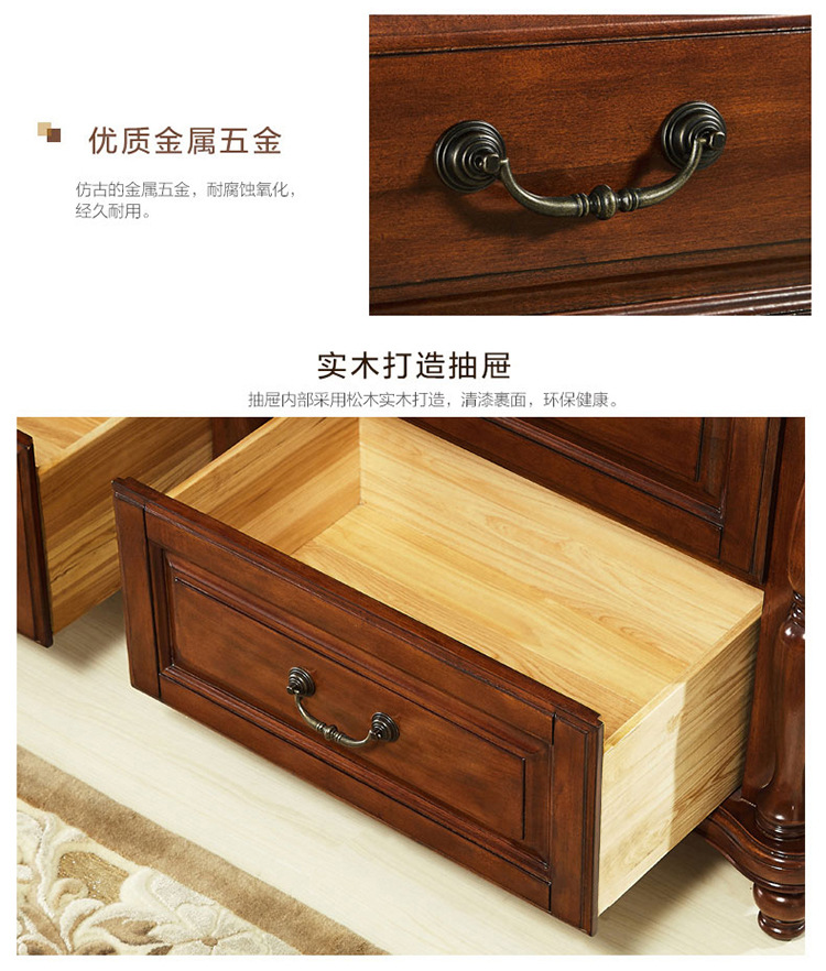 미국 스타일 풀 솔리드 우드 서랍 가슴 유럽 스타일 서랍 가슴 빈티지 거실 침실 복도 저장 캐비닛 대형 침대 옆 테이블