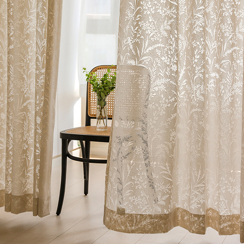 문 브랜치 그림자 프랑스 로맨틱 공주 스타일 거즈 커튼 거실 침실 목가적 인 스타일 식물 패턴 중공 질감 창 화면스토어 가기