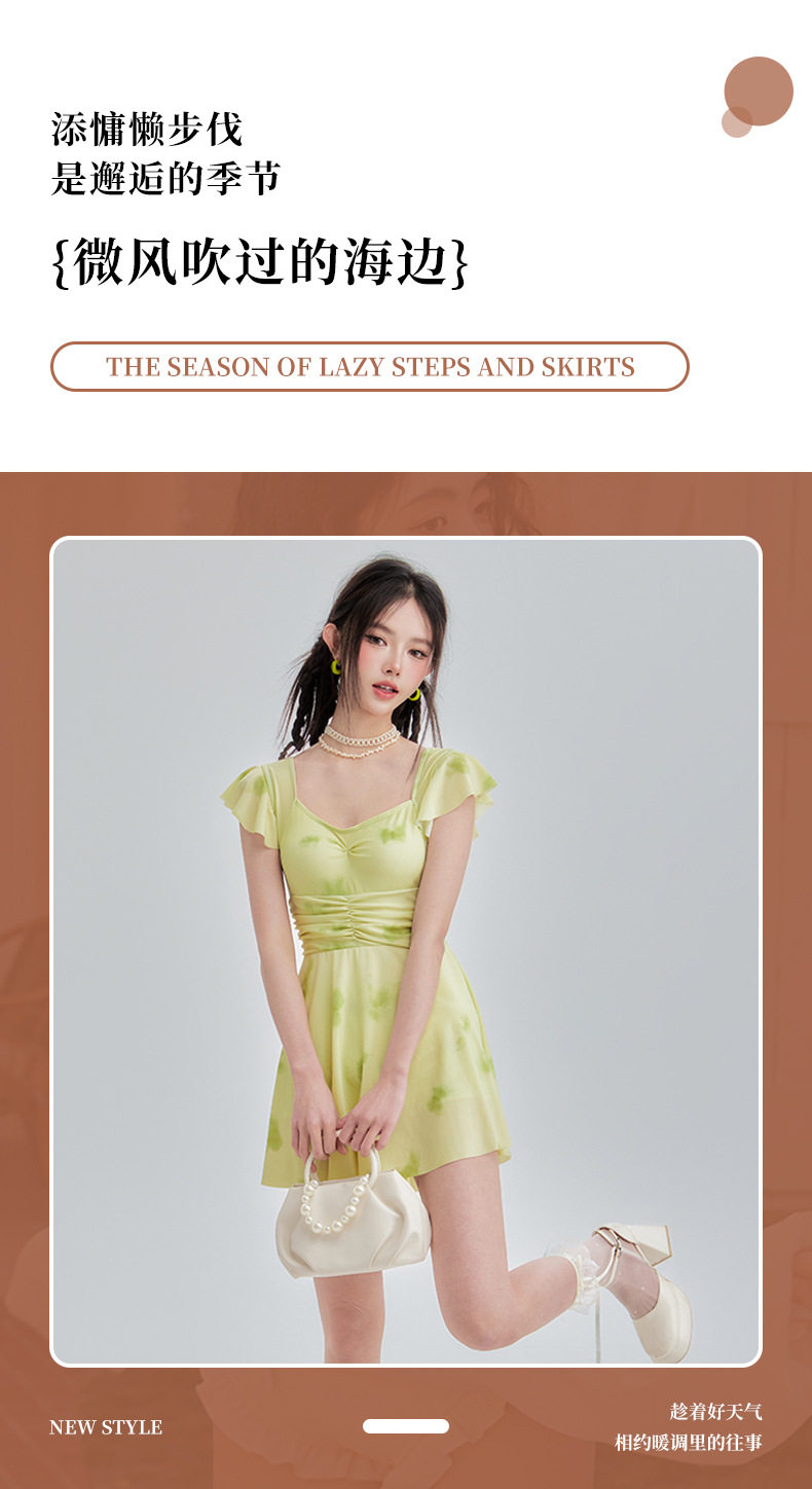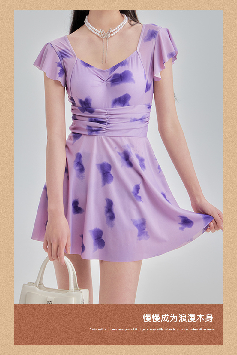 2025 새로운 스타일 보수적 인 꽃 원피스 수영복 여성 학생 휴가 수영복 벨리 커버 슬리밍 비치 해변 온천스토어 가기