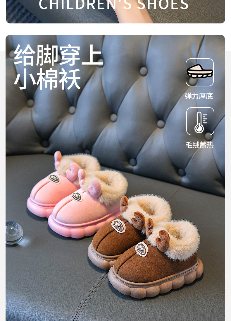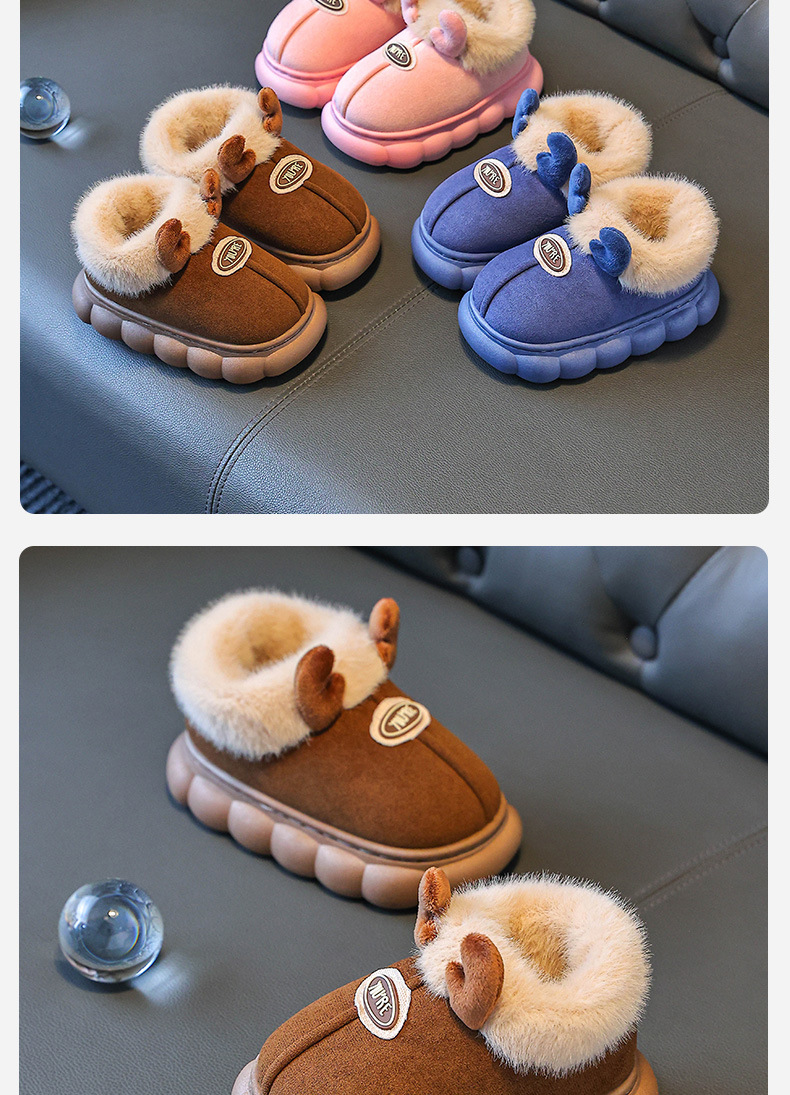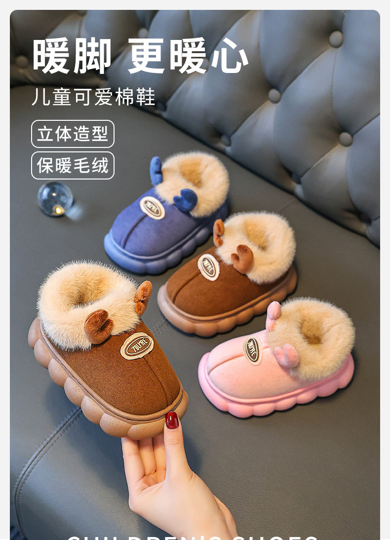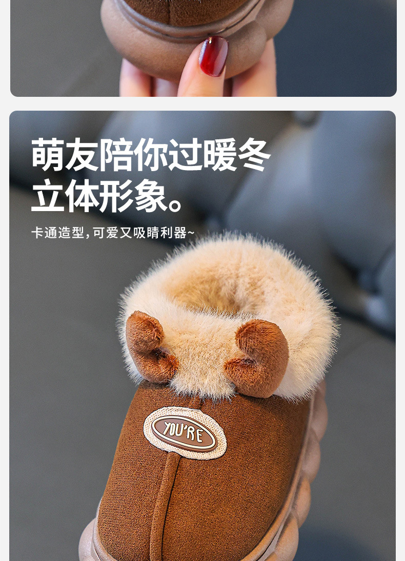 겨울 어린이 면화 신발 2025 새로운 만화 따뜻하고 미끄럼 방지 소년과 소녀 홈 야외 아기 모피 면화 신발 유행스토어 가기
