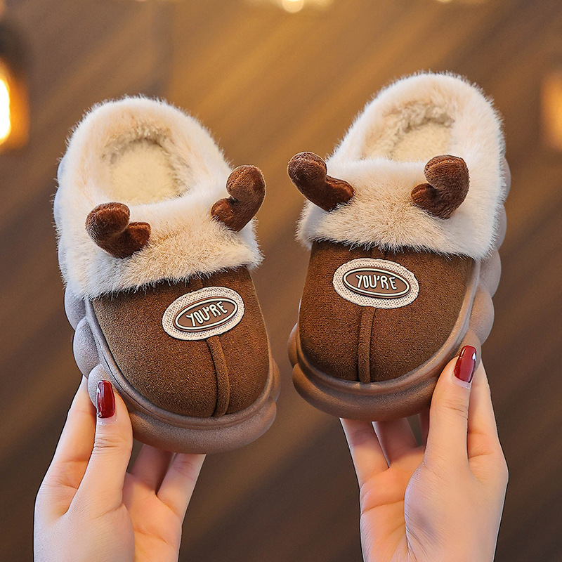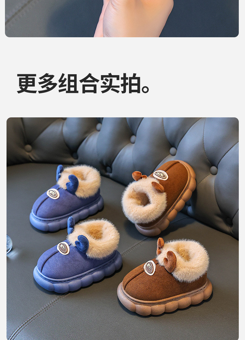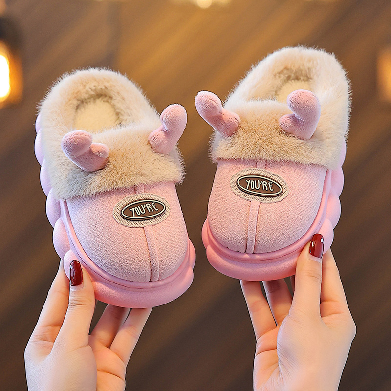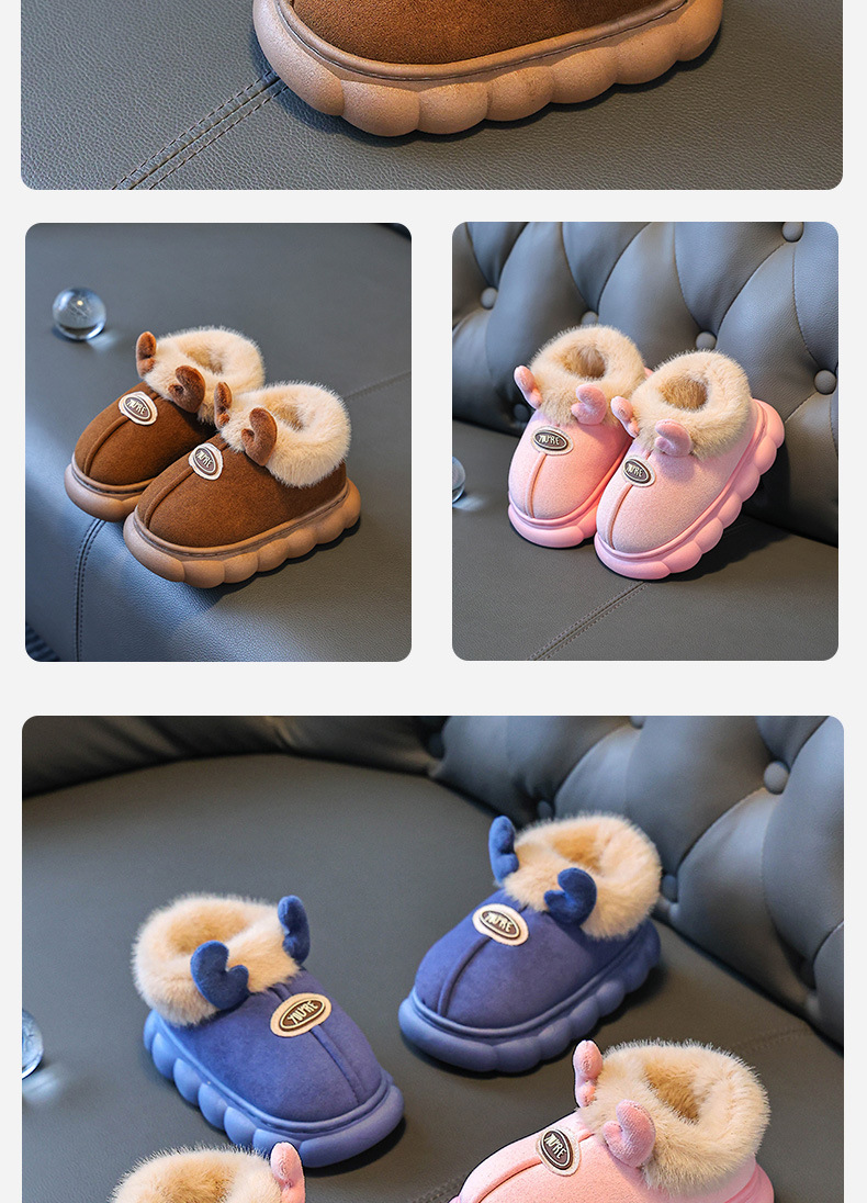 겨울 어린이 면화 신발 2025 새로운 만화 따뜻하고 미끄럼 방지 소년과 소녀 홈 야외 아기 모피 면화 신발 유행스토어 가기