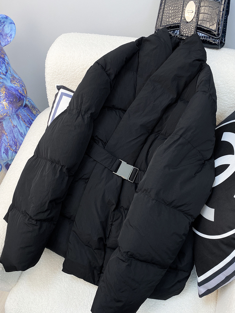 고급 검은 색 허리면 패딩 재킷 여성의 2024 년 겨울 새로운 기질 왕실 자매 팬이 고기 슬림 올 매치면 패딩 재킷 조수를 덮었습니다.스토어 가기