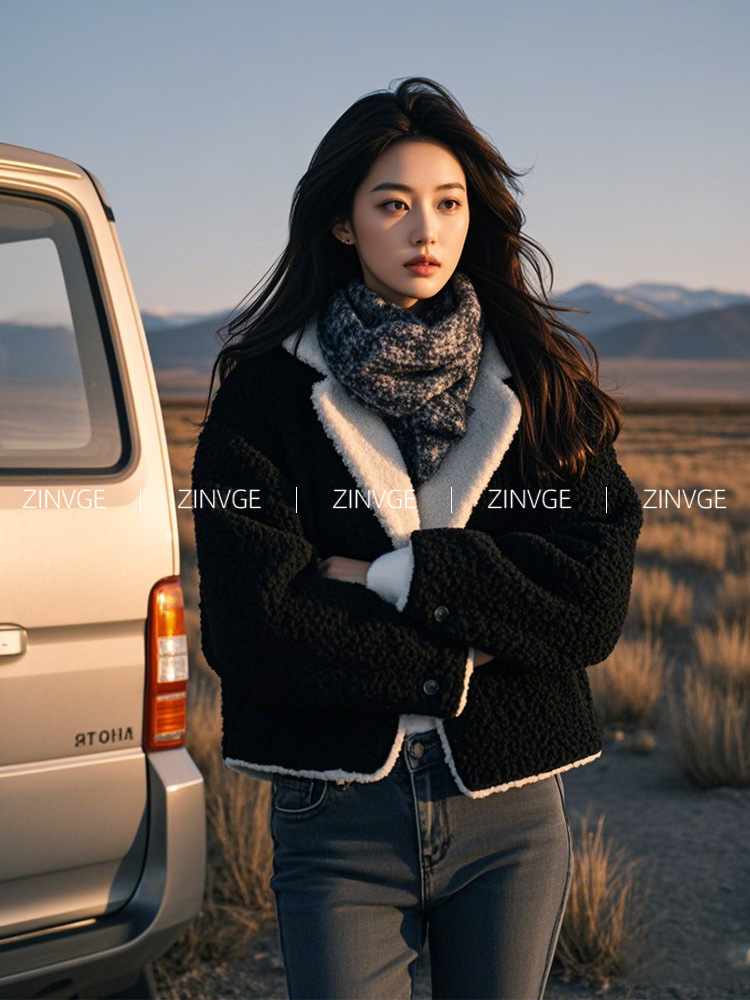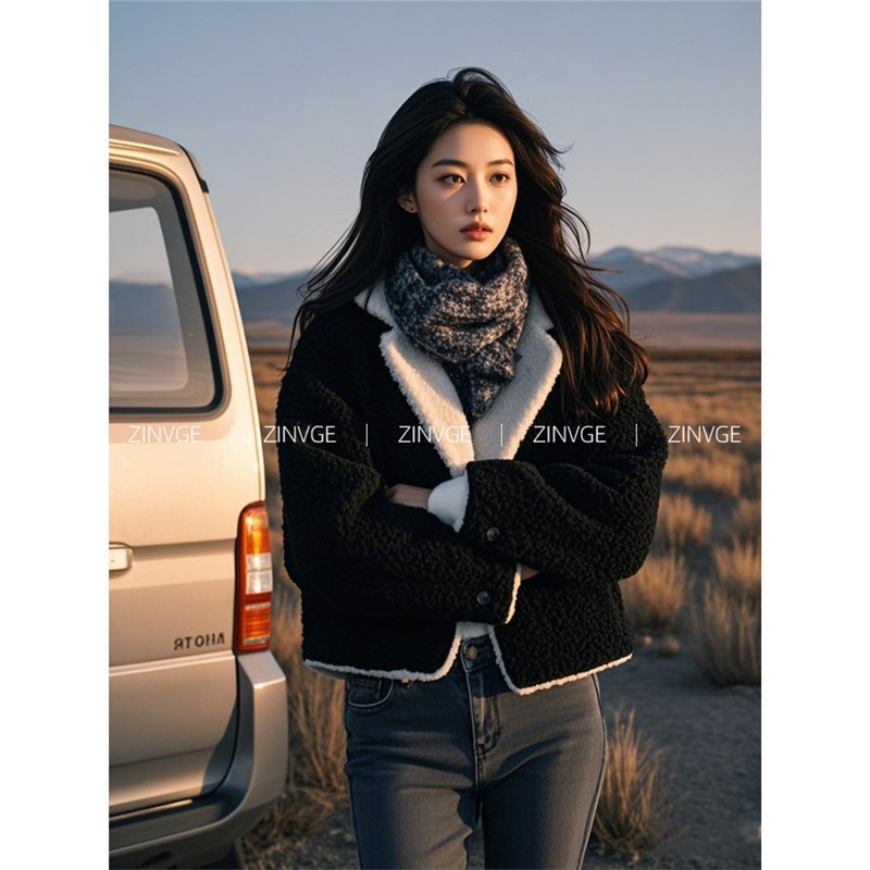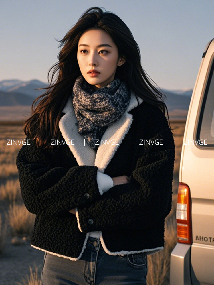 YT394599 올해 인기있는 늦은 가을과 초겨울 검은 옷깃 작은 향수 짧은 양모 두꺼운 코트 여성스토어 가기