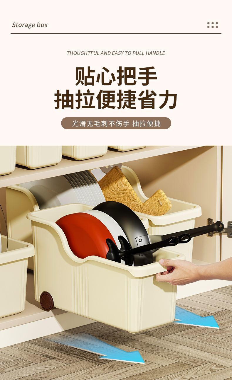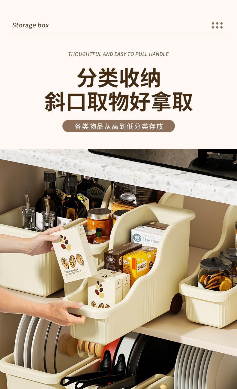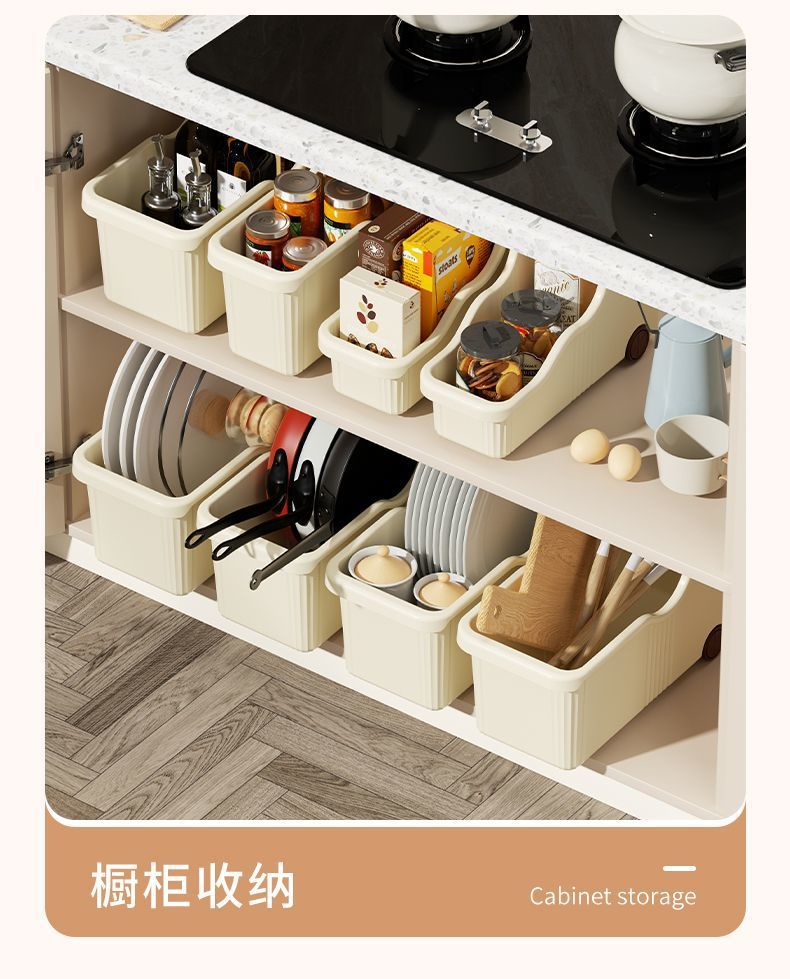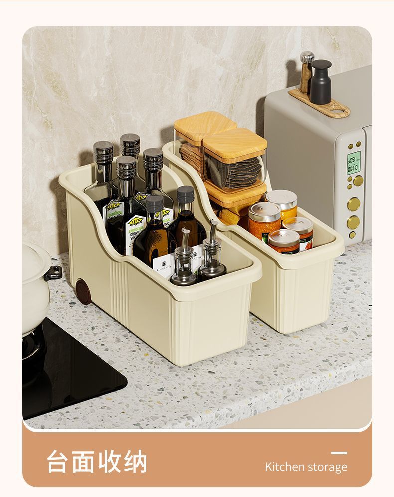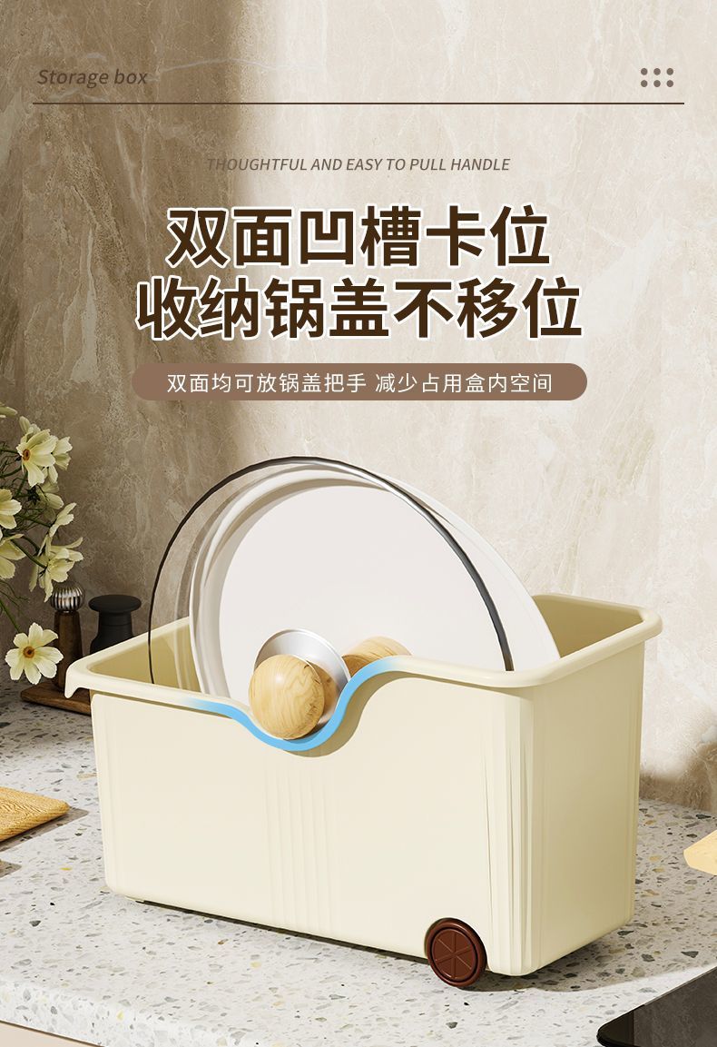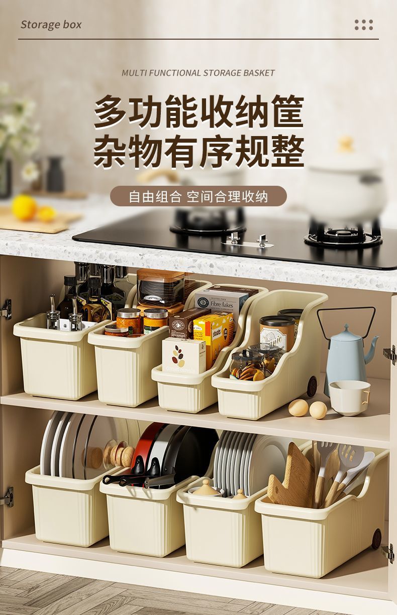 풀리 플라스틱 보관 바구니 냄비 뚜껑 조미료 보관 랙을 갖춘 주방 보관 상자 캐비닛 옷장 데스크탑 보관