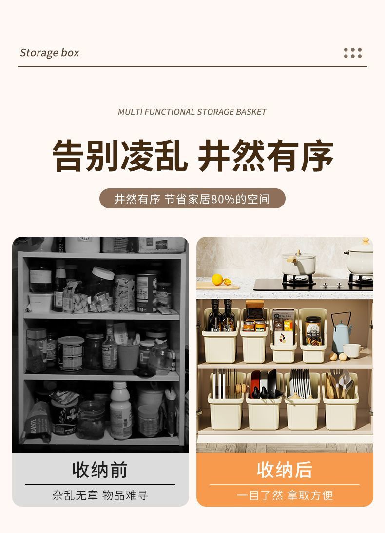 풀리 플라스틱 보관 바구니 냄비 뚜껑 조미료 보관 랙을 갖춘 주방 보관 상자 캐비닛 옷장 데스크탑 보관스토어 가기