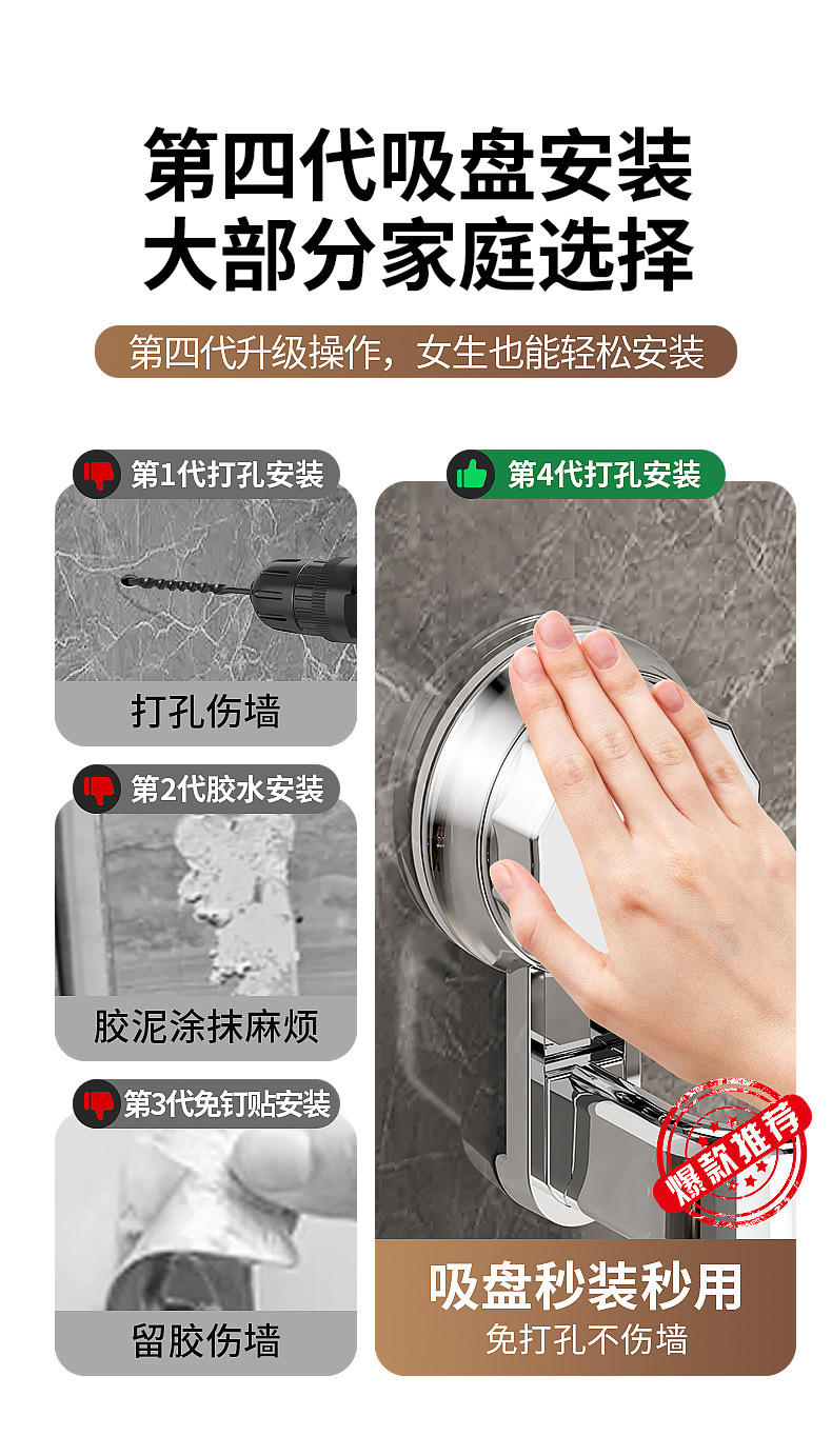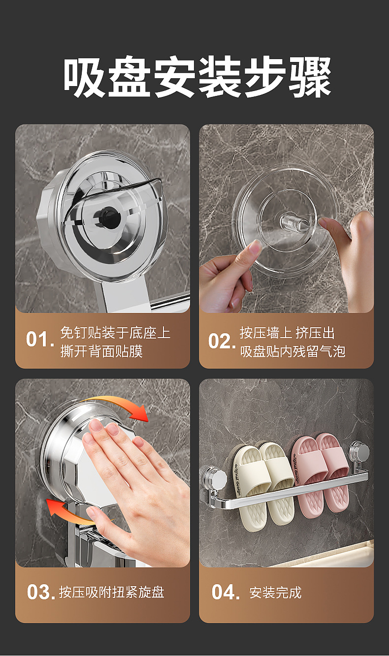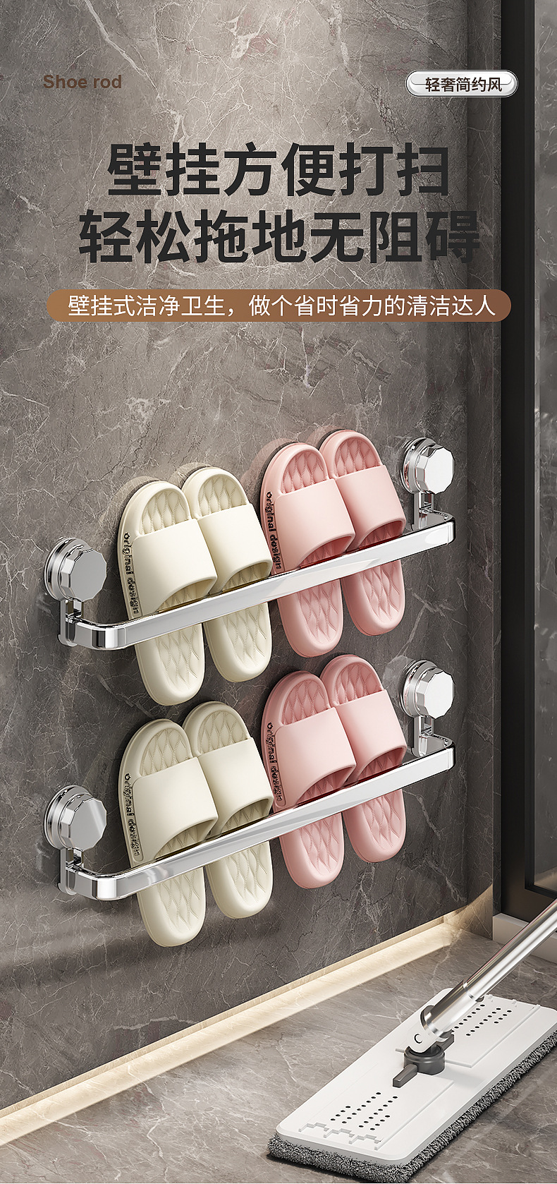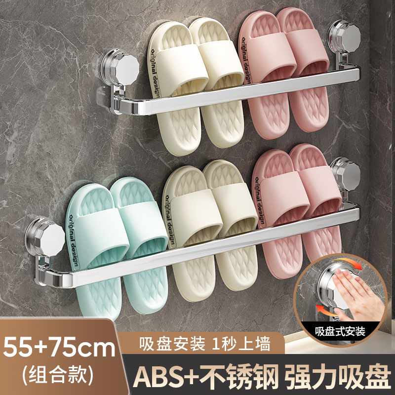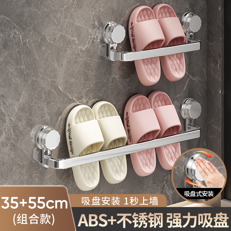 맞춤형 무타공 흡착식 슬리퍼 걸이 벽걸이 욕실 수납 선반 화장실 공간 절약 배수 선반