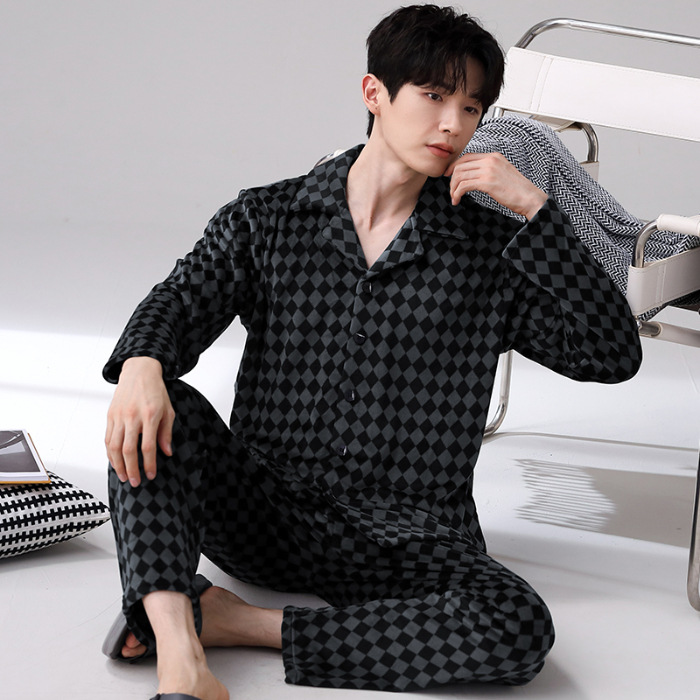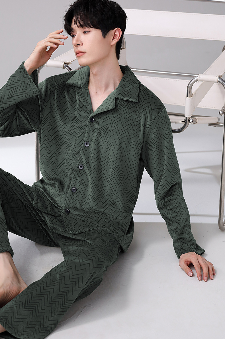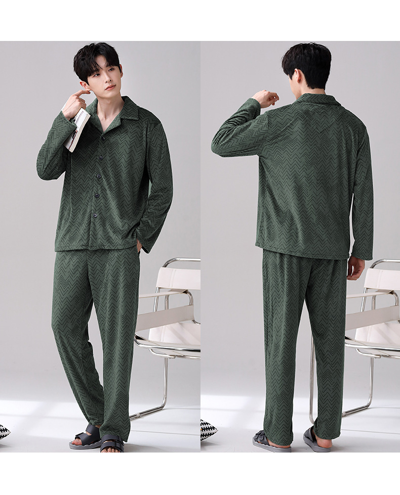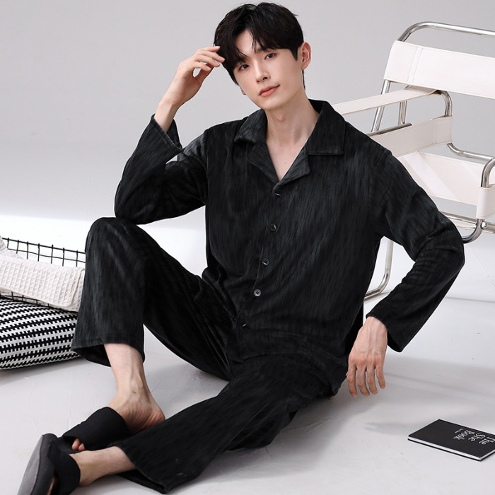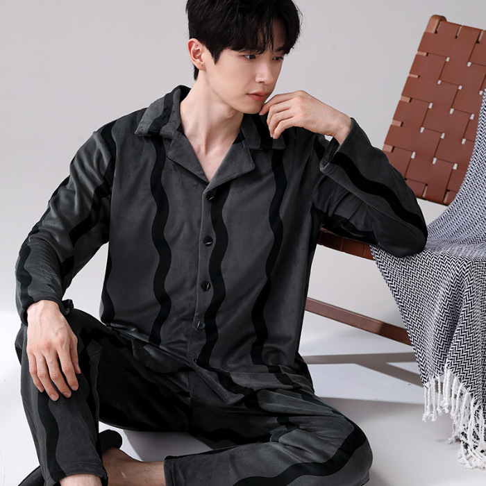 아일랜드 벨벳 파자마 남성용 카디건 가을 및 겨울 옷깃 긴 소매 바지 홈 의류 외부 세트 TikTok 착용