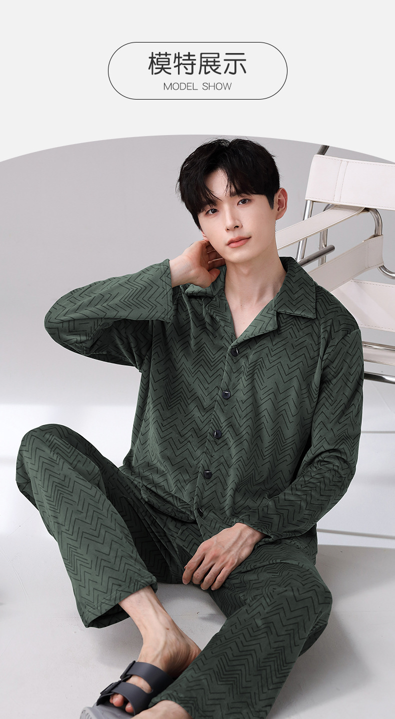아일랜드 벨벳 파자마 남성용 카디건 가을 및 겨울 옷깃 긴 소매 바지 홈 의류 외부 세트 TikTok 착용스토어 가기
