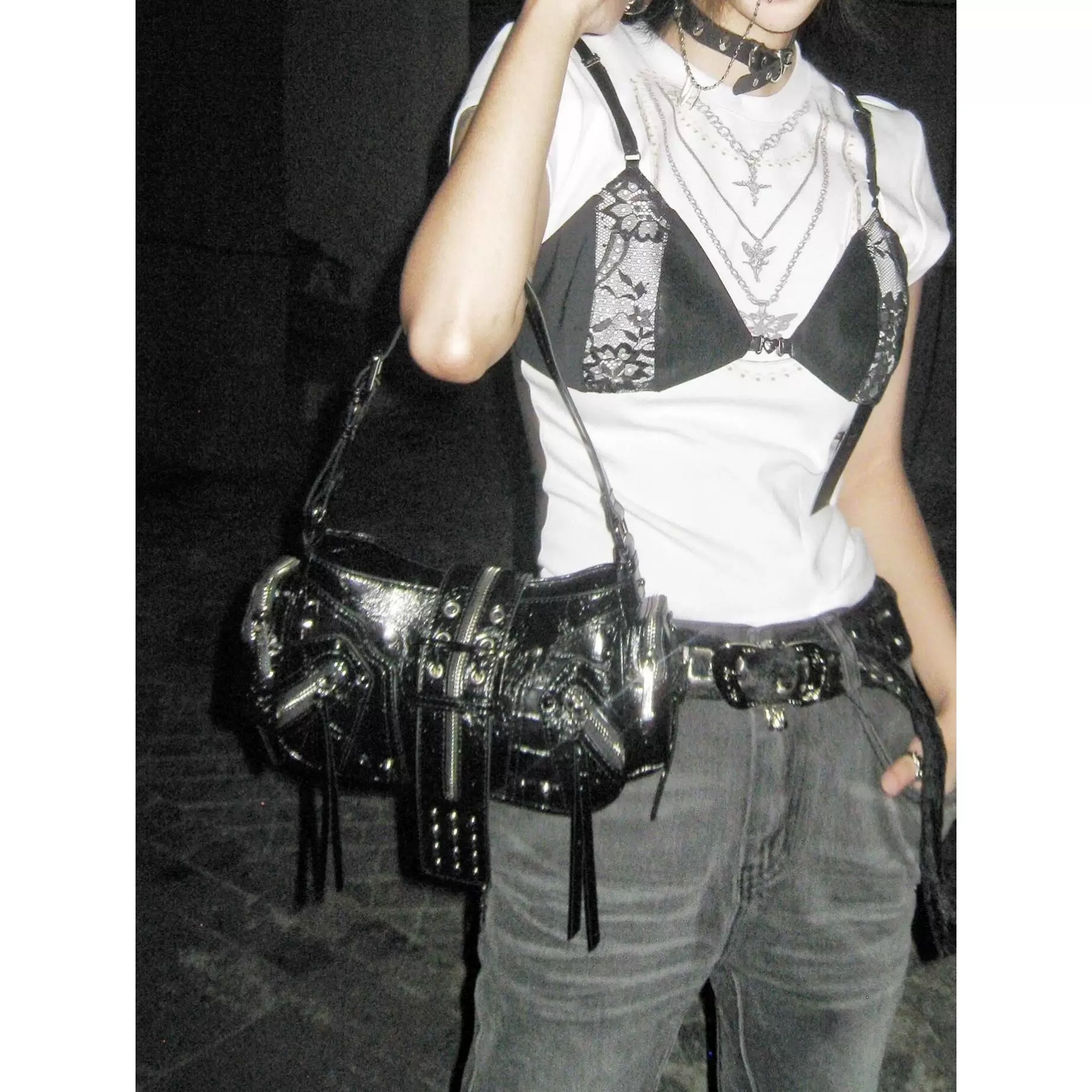 CDIWRI & KARI 스파이스 걸스 언더암 가방 가을과 겨울 고급 센스 중공업 오토바이 가방 통근 올 매치 숄더 핸드백스토어 가기