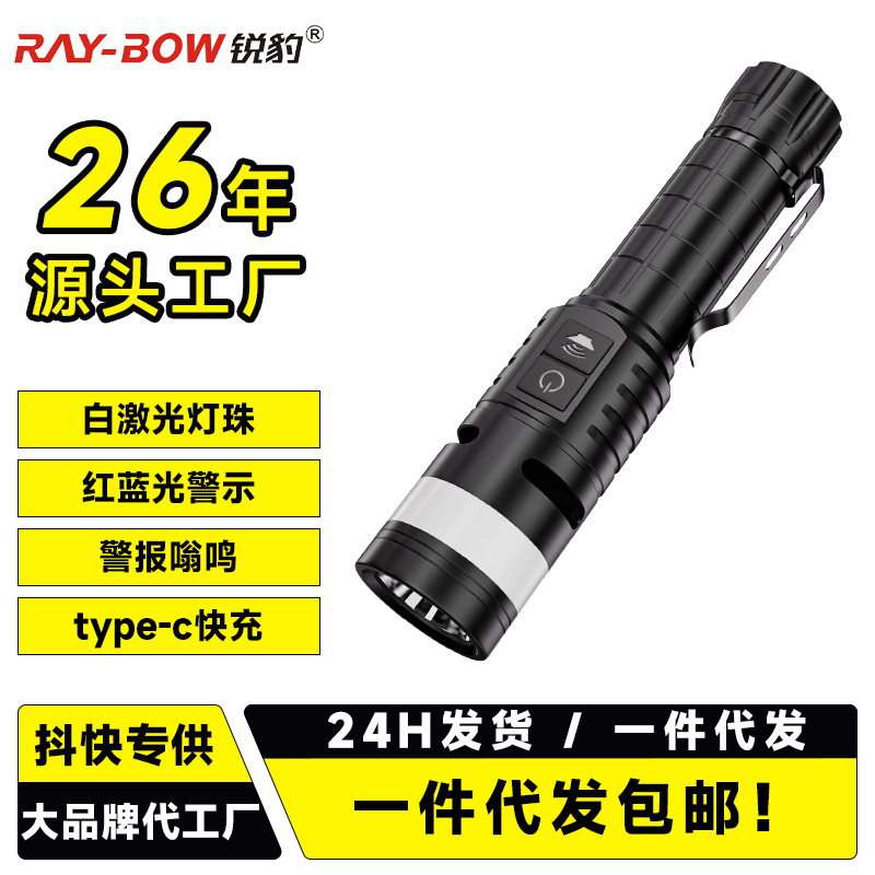 Ruibao 강한 빛 버스트 손전등 다기능 측면 충전식 빨간색과 파란색 경고등 작업 조명 야외 손전등스토어 가기