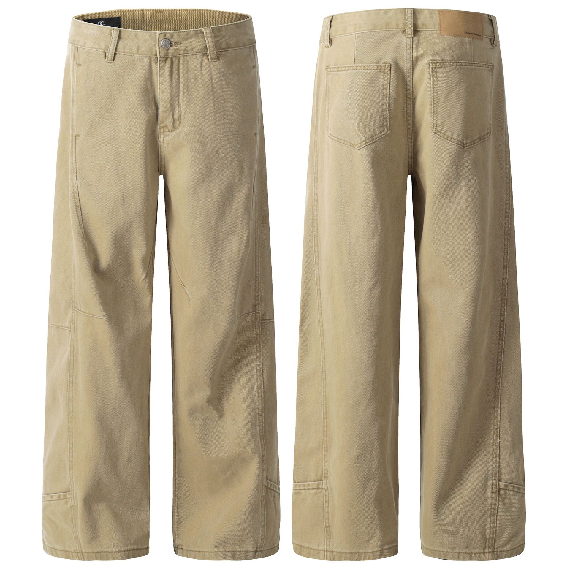 Eon Modish 2025 봄 새로운 실제 샷 미국 복고풍 중공업 느슨한 세척 물 바지