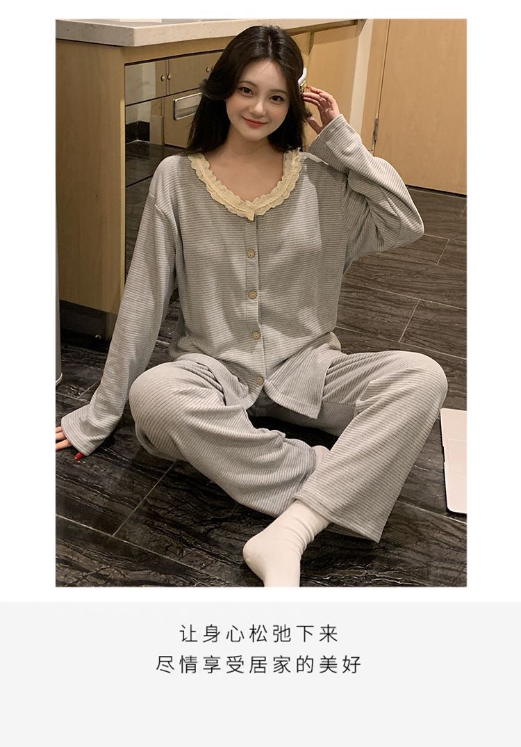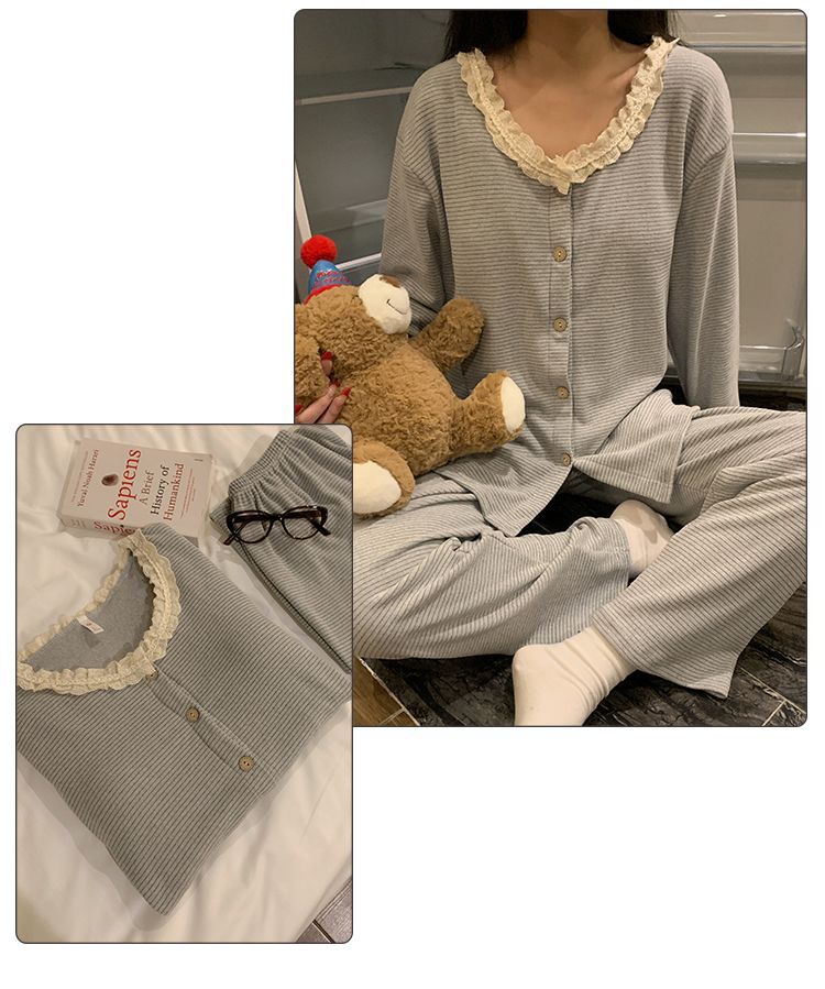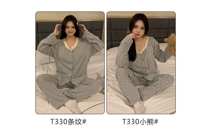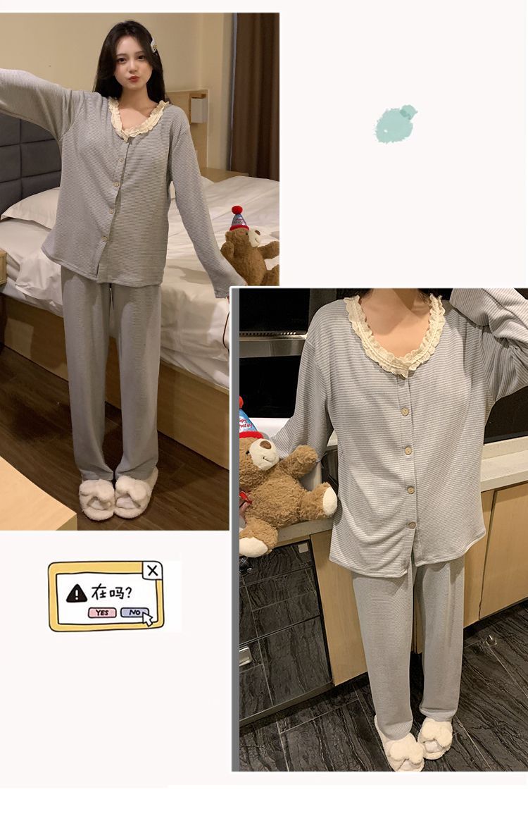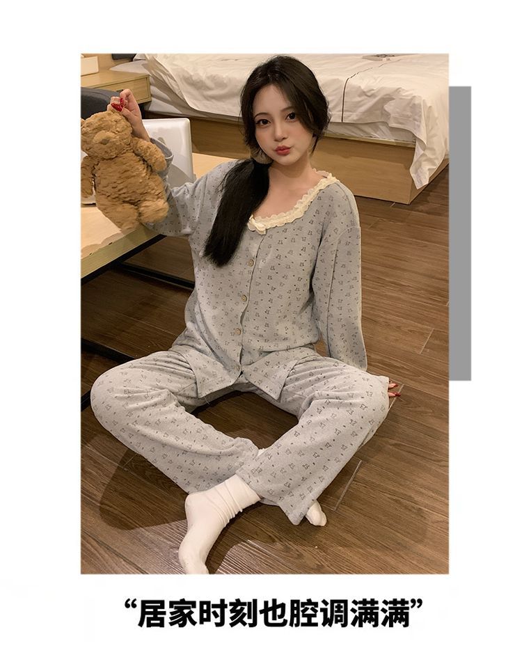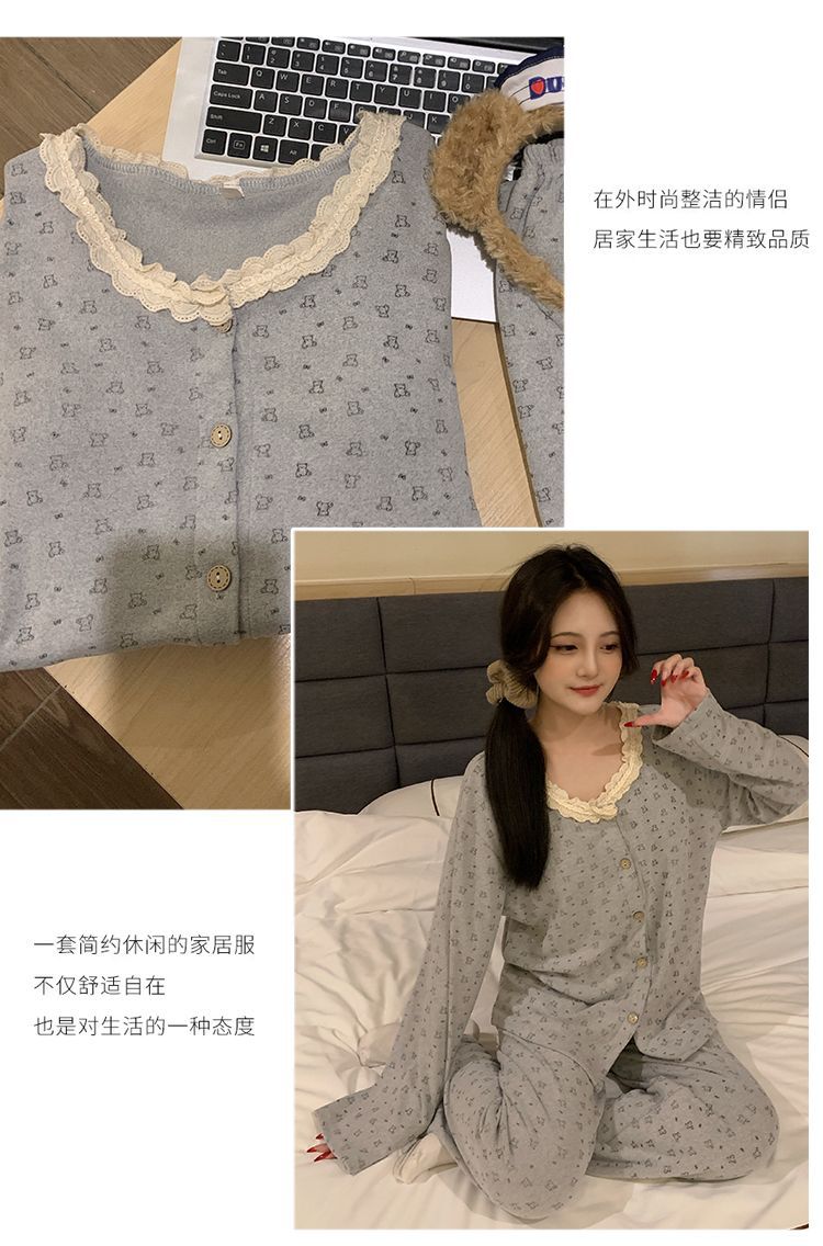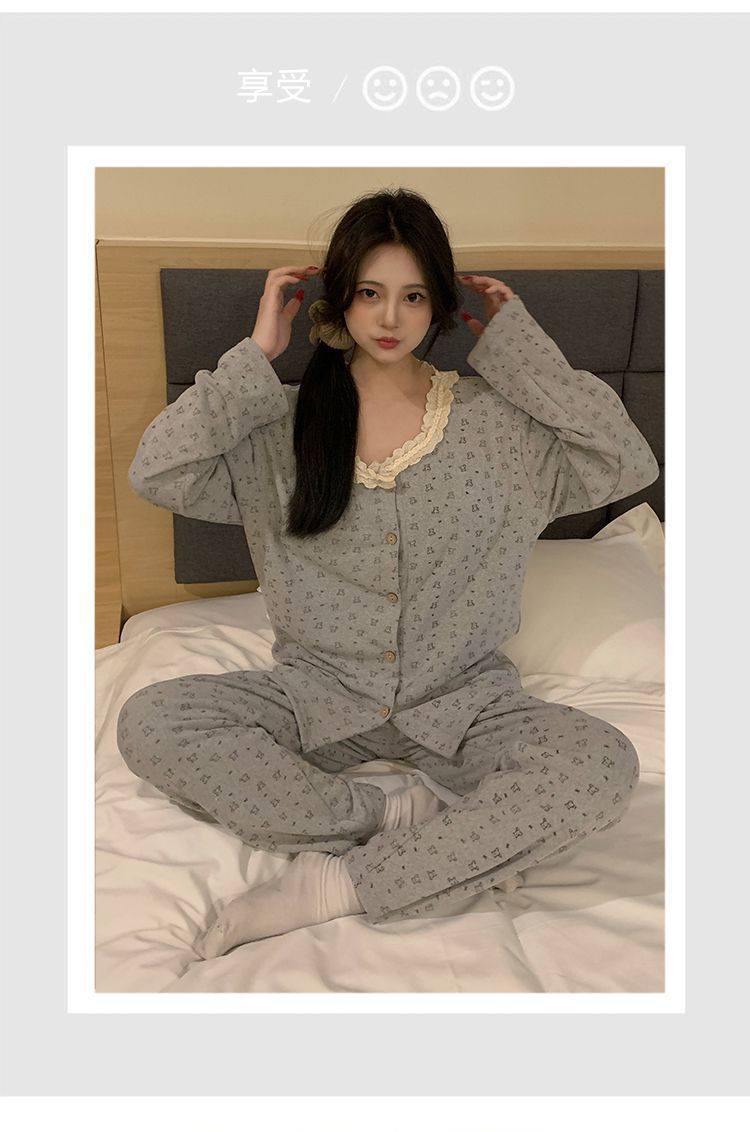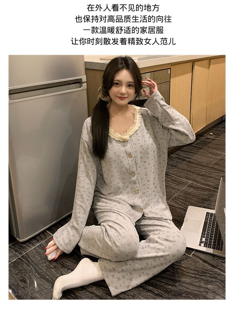 잠옷 여성 벨벳 벨트 가슴 패드 가을과 겨울 새로운 한국 스타일 달콤한 카디건 긴 소매 인터넷 인기있는 봄과 가을 홈 의류 세트스토어 가기