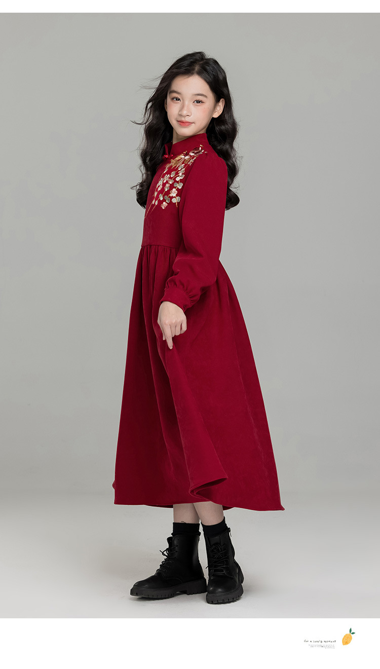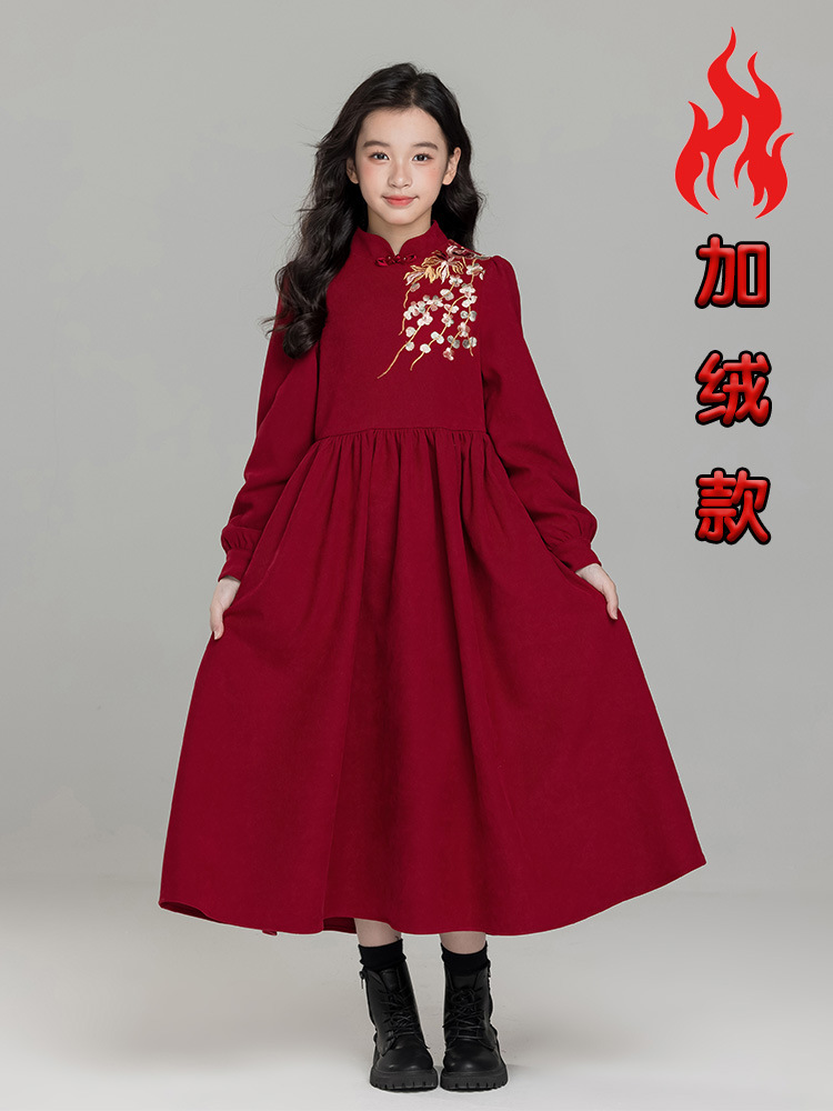 加绒款套了加绒内里(选用高密丽丝绒,软软糯糯很亲肤)整件裙子很有份量感,品质赞,新年穿新衣首选款,建议穿亲子装