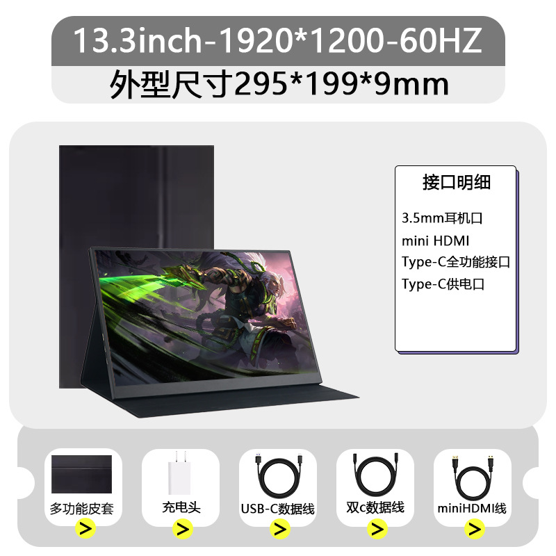 휴대용 디스플레이 13.3/14/15.6/16 인치 터치 2.5K 울트라 클리어 144HZ 전기 경쟁 확장 서브 스크린