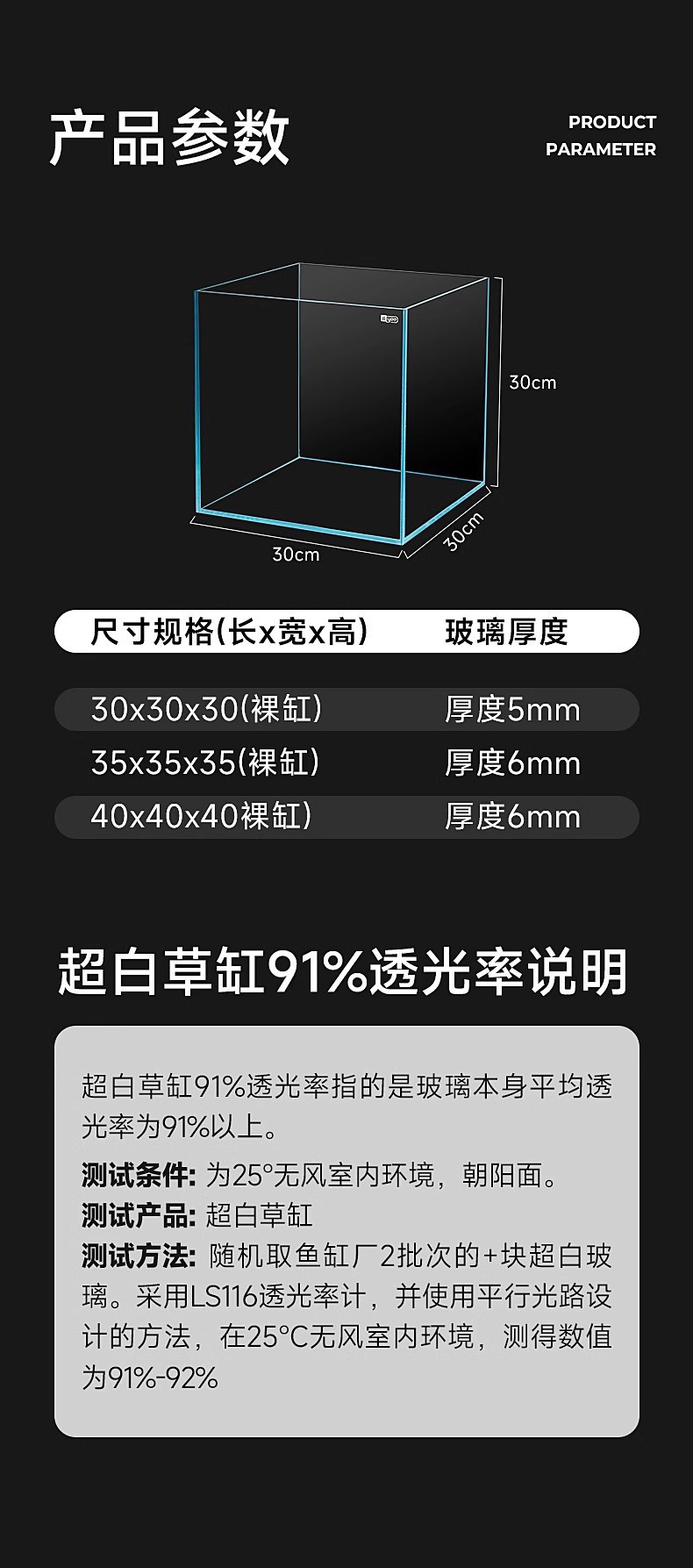 • [강화 및 두꺼워짐] 5MM 초백색 유리 30*30*30cm