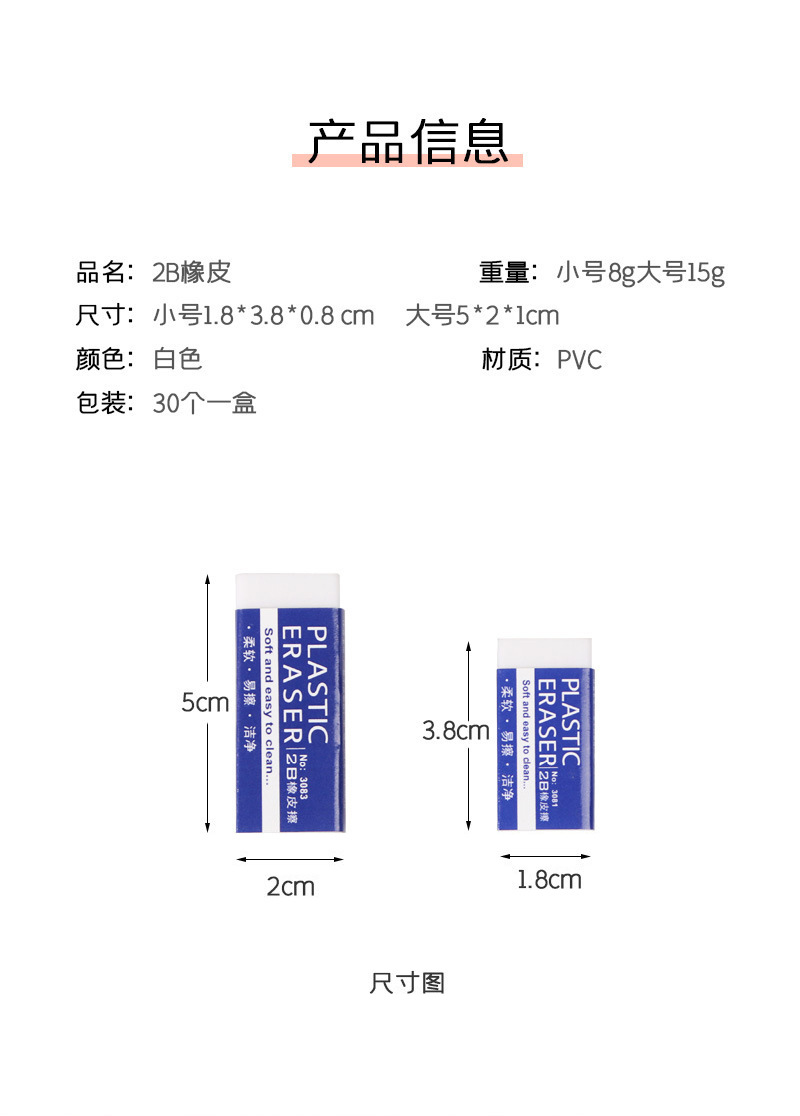 2b 지우개 깨끗하고 흔적이 없는 학생 드로잉 시험 특수 흰색 지우개 공장 직접 도매스토어 가기