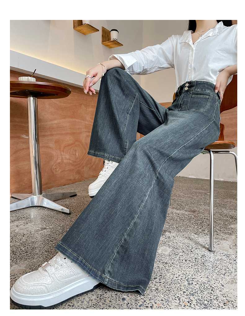 높은 허리 넓은 다리 기모 청바지 여성의 가을과 겨울 2025 새로운 슬리밍 Microla Loose Straight Pants스토어 가기