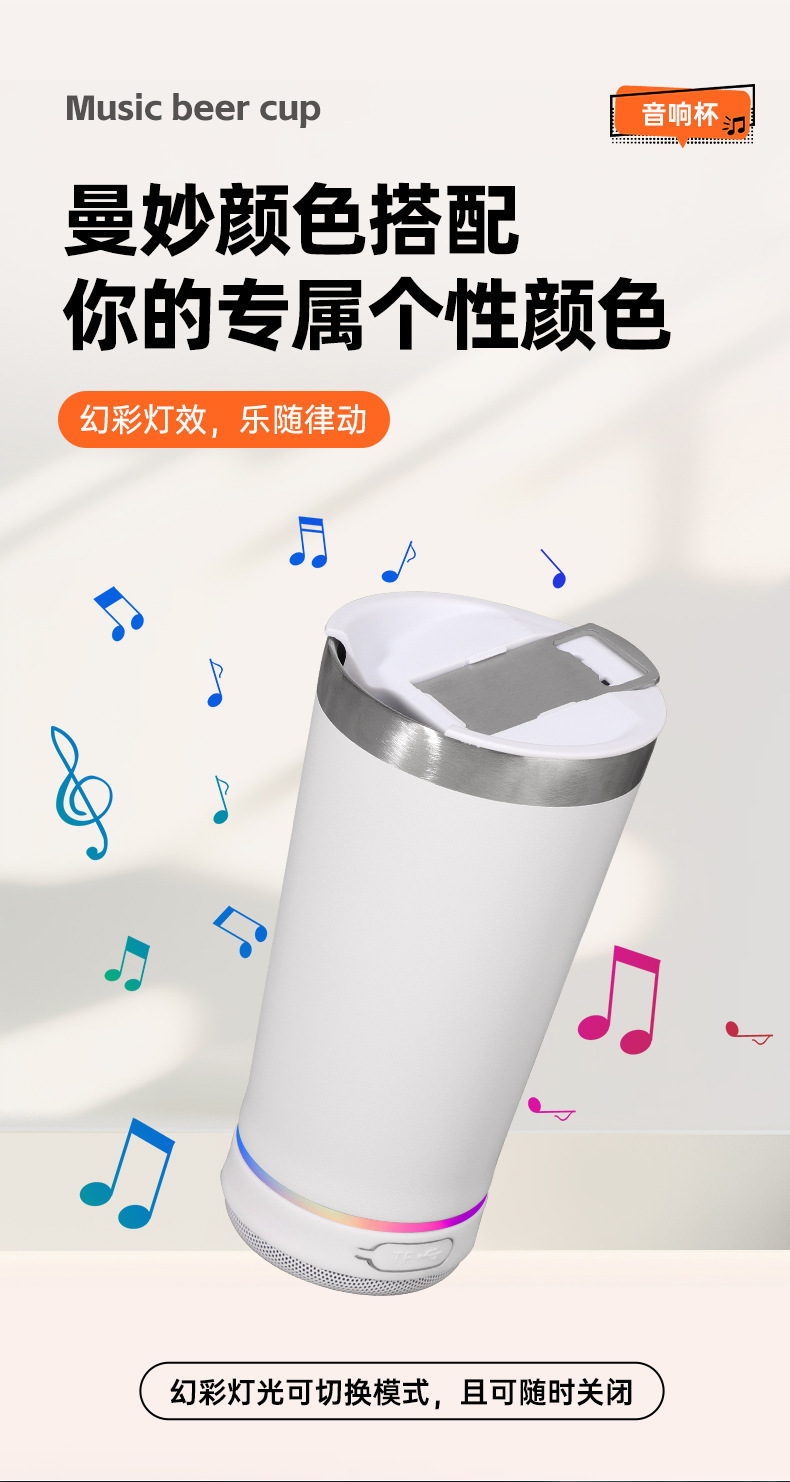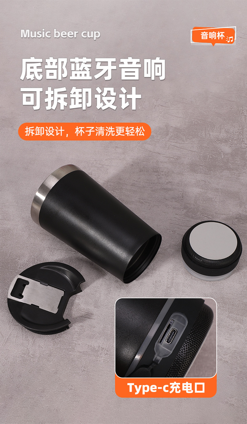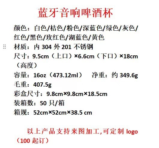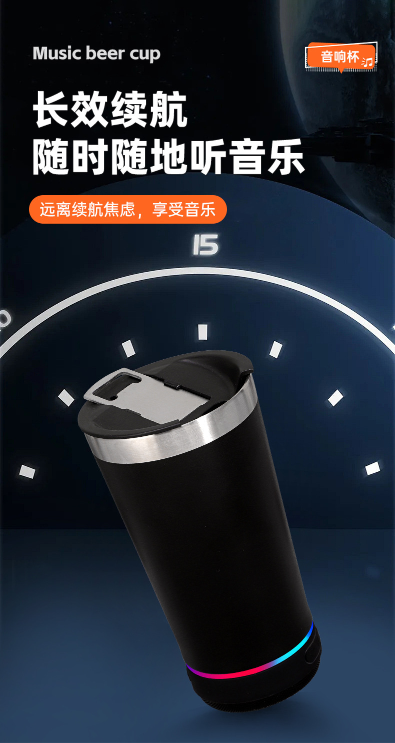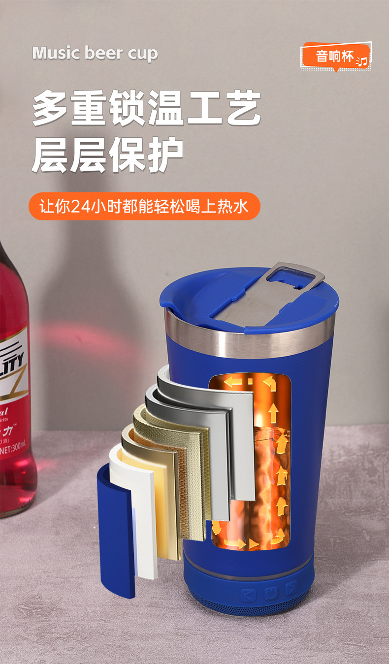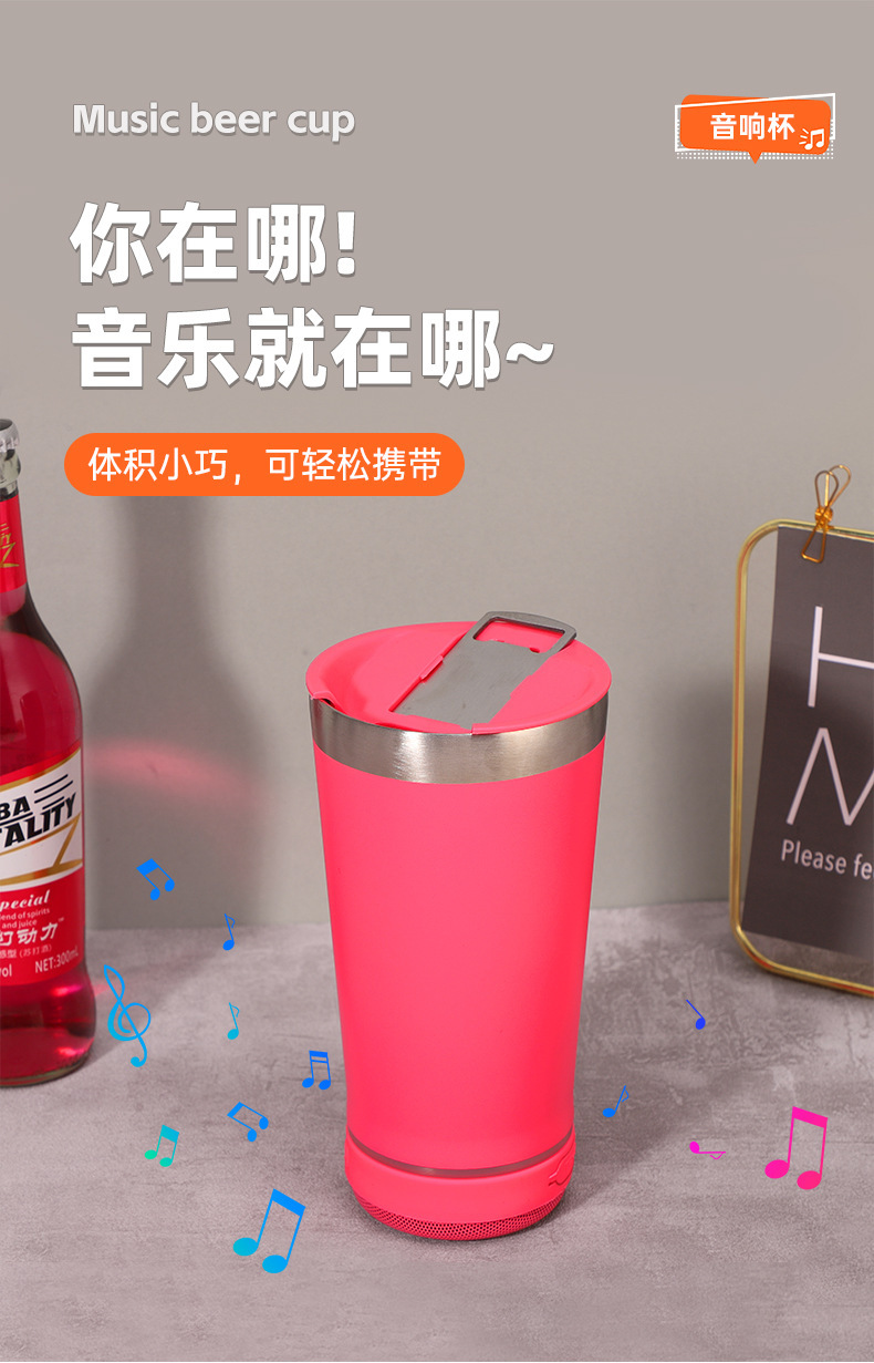 블루투스 스피커 아이스컵 16oz 304 스테인리스 보온컵 맥주컵 진공 물컵 야외 자동차 컵