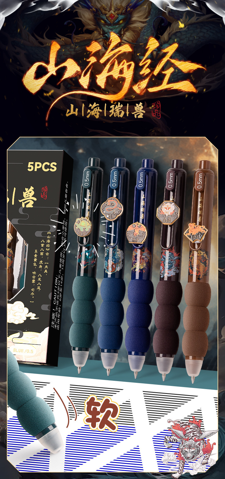• 뜨겁게 지울 수 있는 뚱뚱한 펜 - 산과 바다의 상서로운 짐승(검은색)