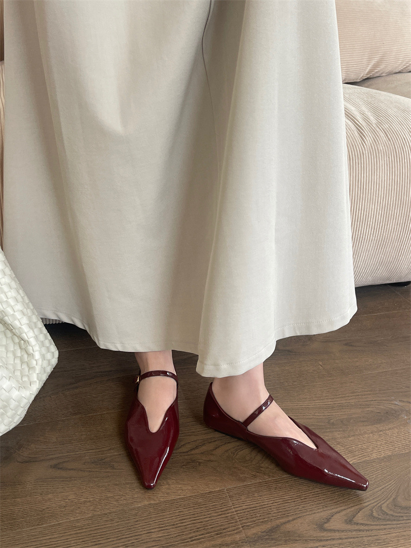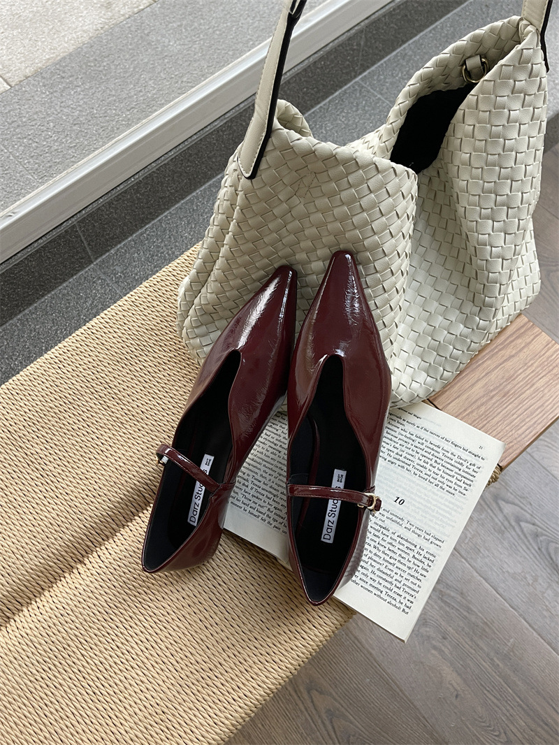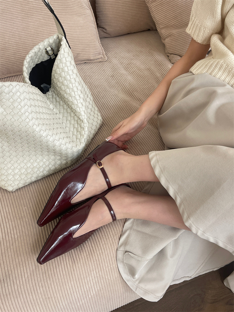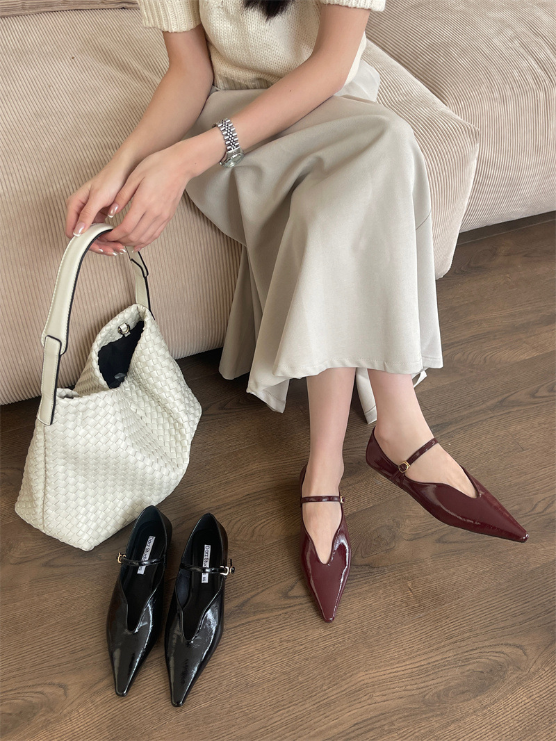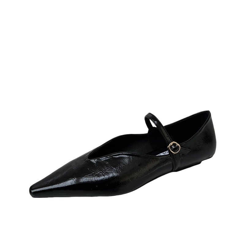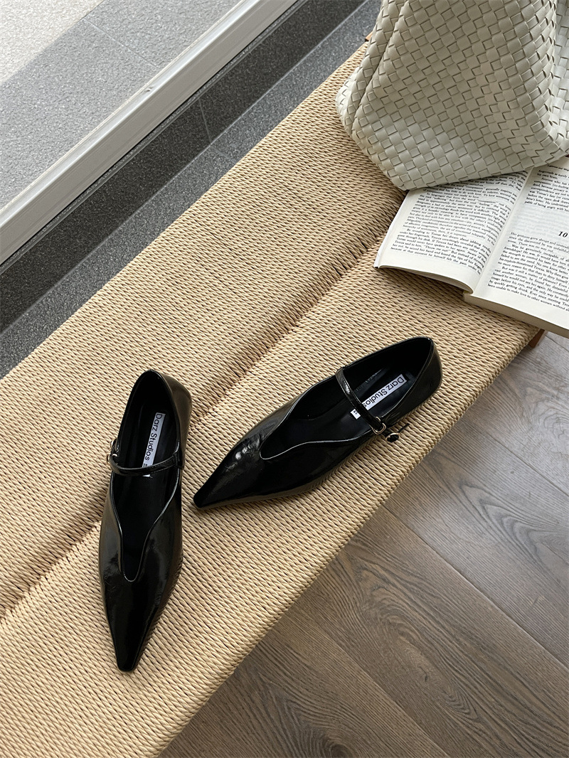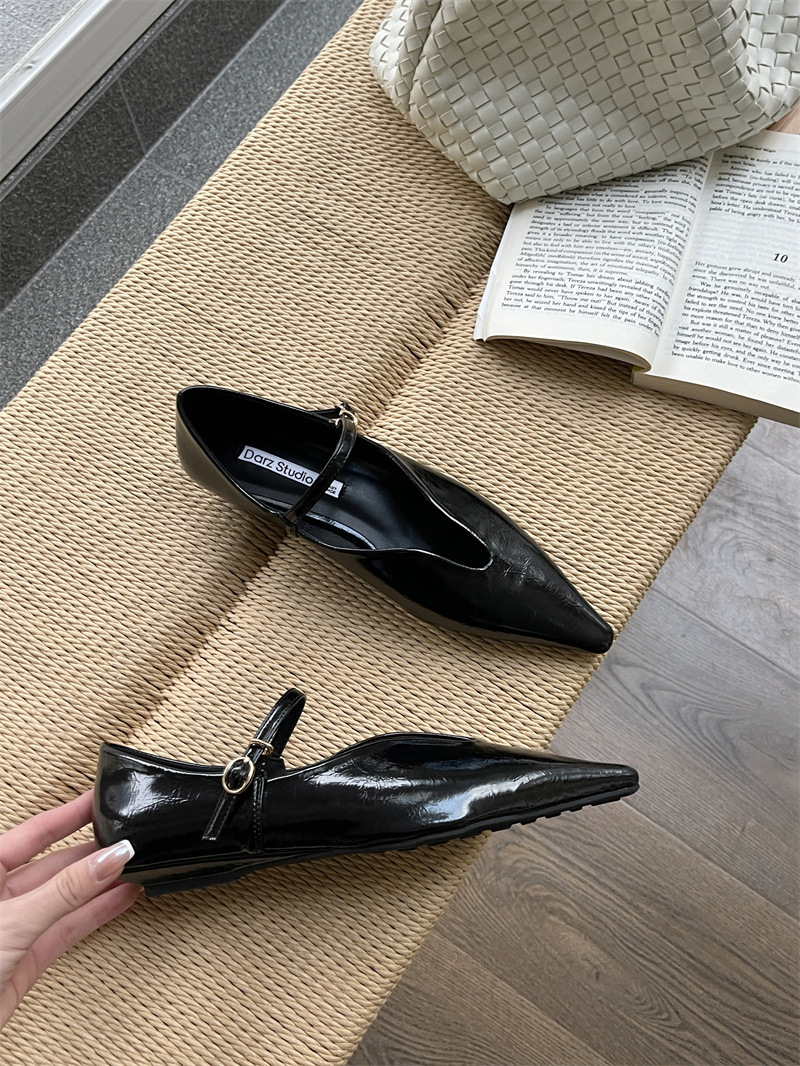2025 봄 새로운 한국 스타일 유행 올매치 포인팅 로우 힐 싱글 레이어 신발 레트로 여성용 플랫 신발 버클