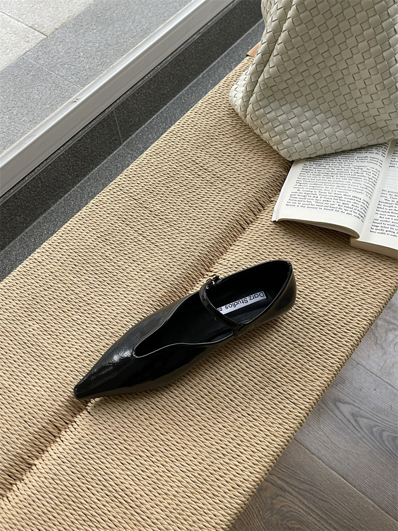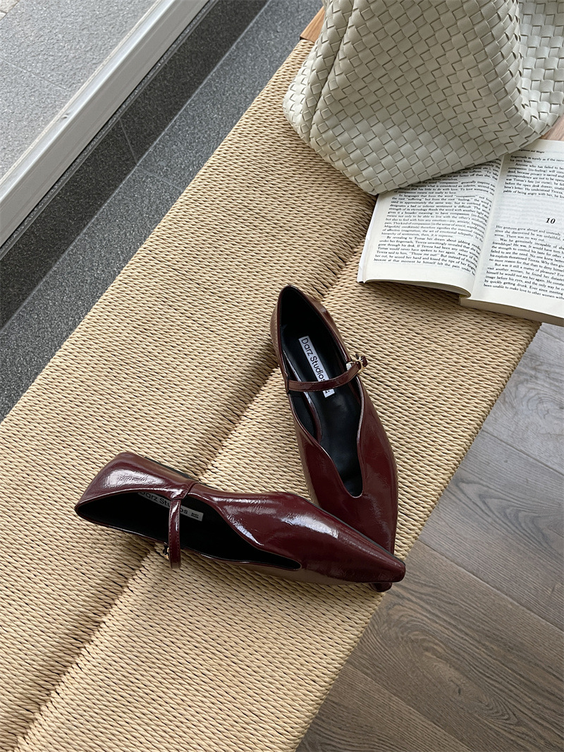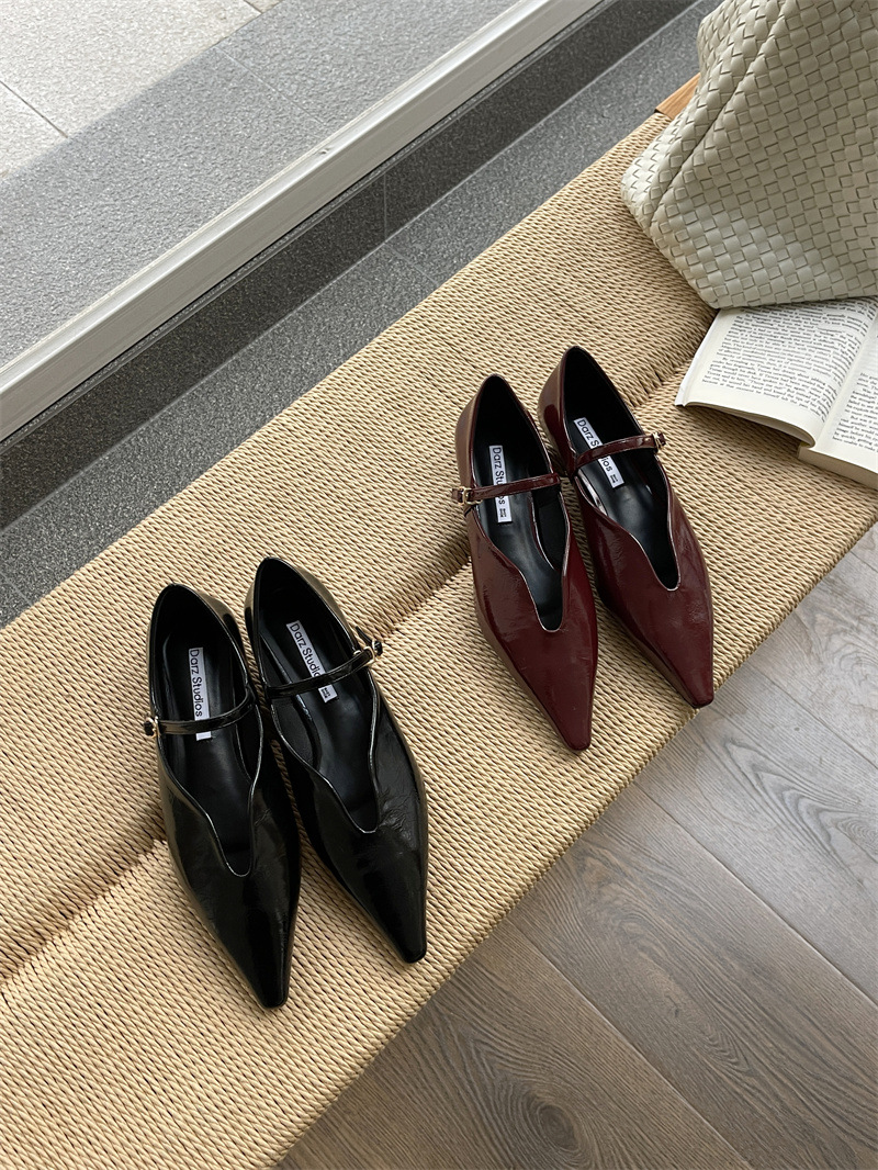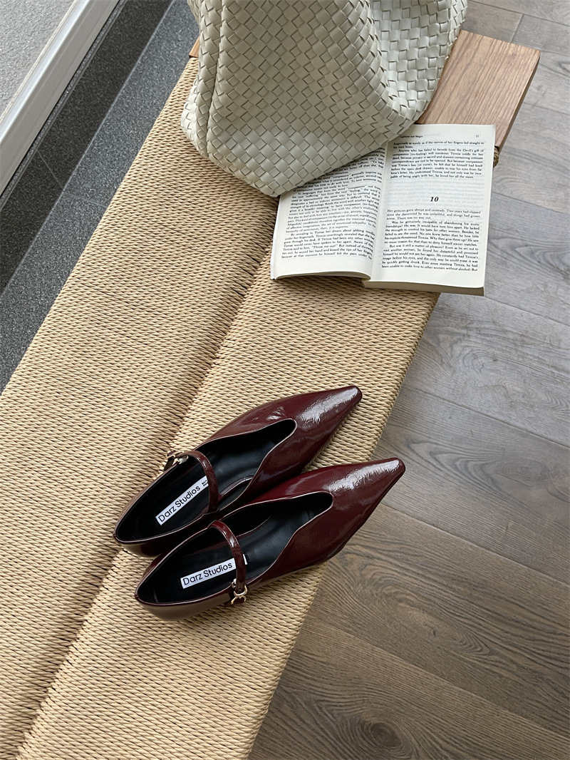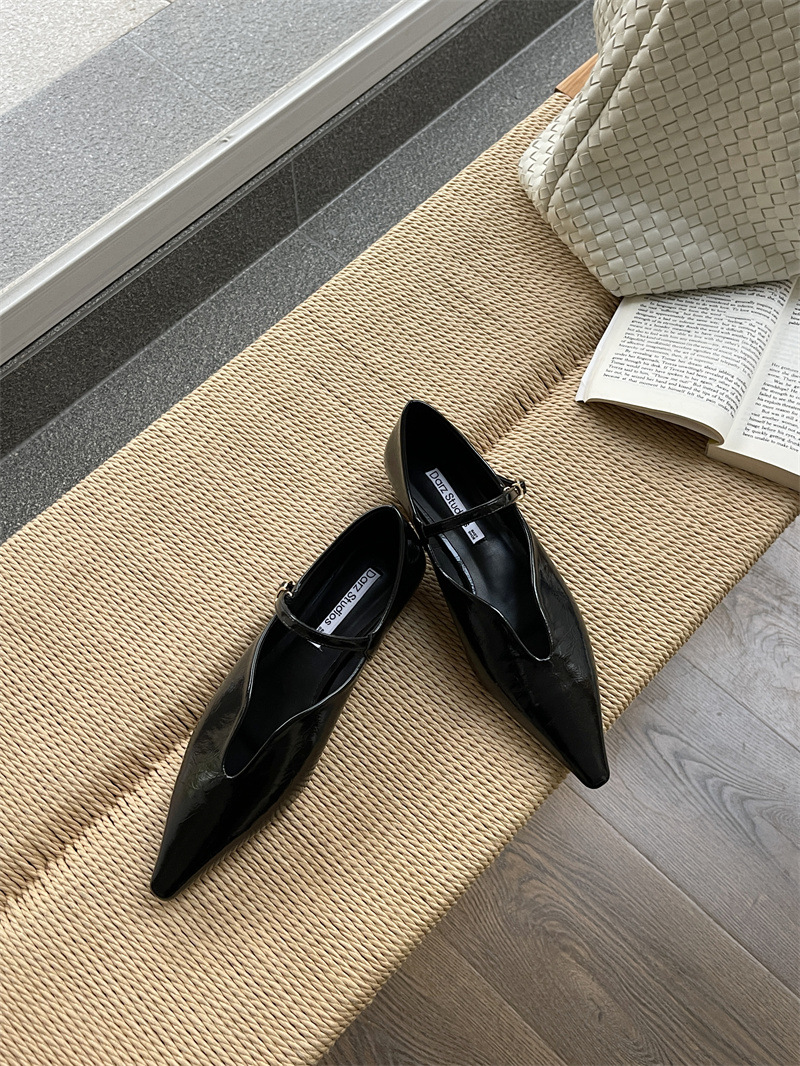2025 봄 새로운 한국 스타일 유행 올매치 포인팅 로우 힐 싱글 레이어 신발 레트로 여성용 플랫 신발 버클스토어 가기