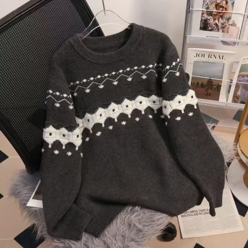 모리 칼리지 스타일 게으른 스웨터 여성의 2025 새로운 가을과 겨울 작은 남자 밀크 스타일 내부 니트 탑 루즈스토어 가기