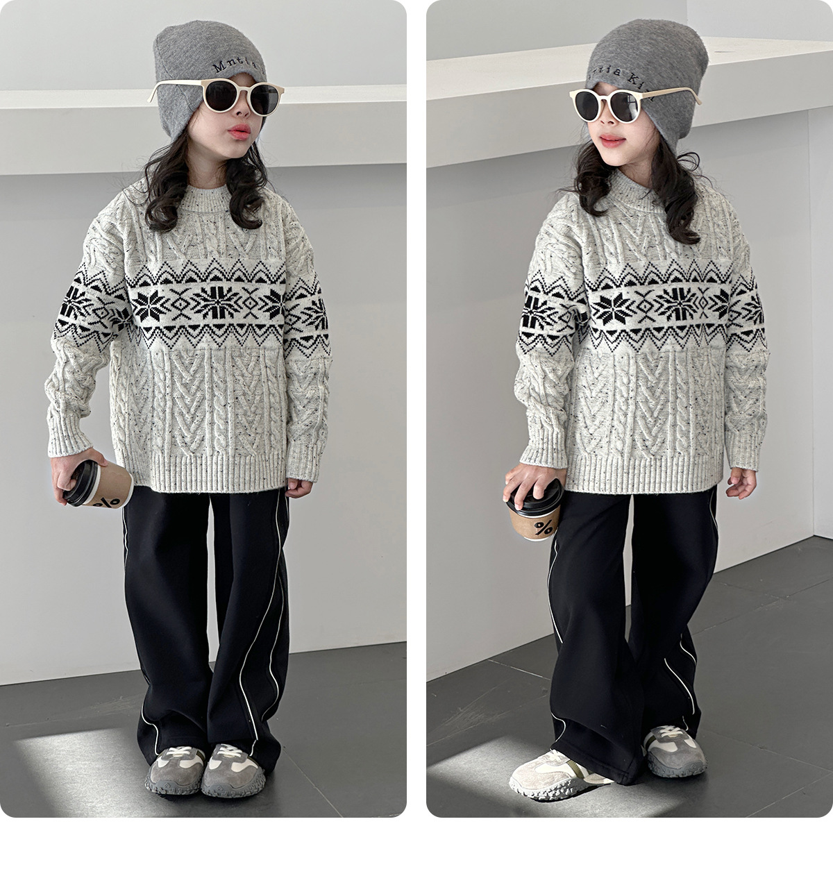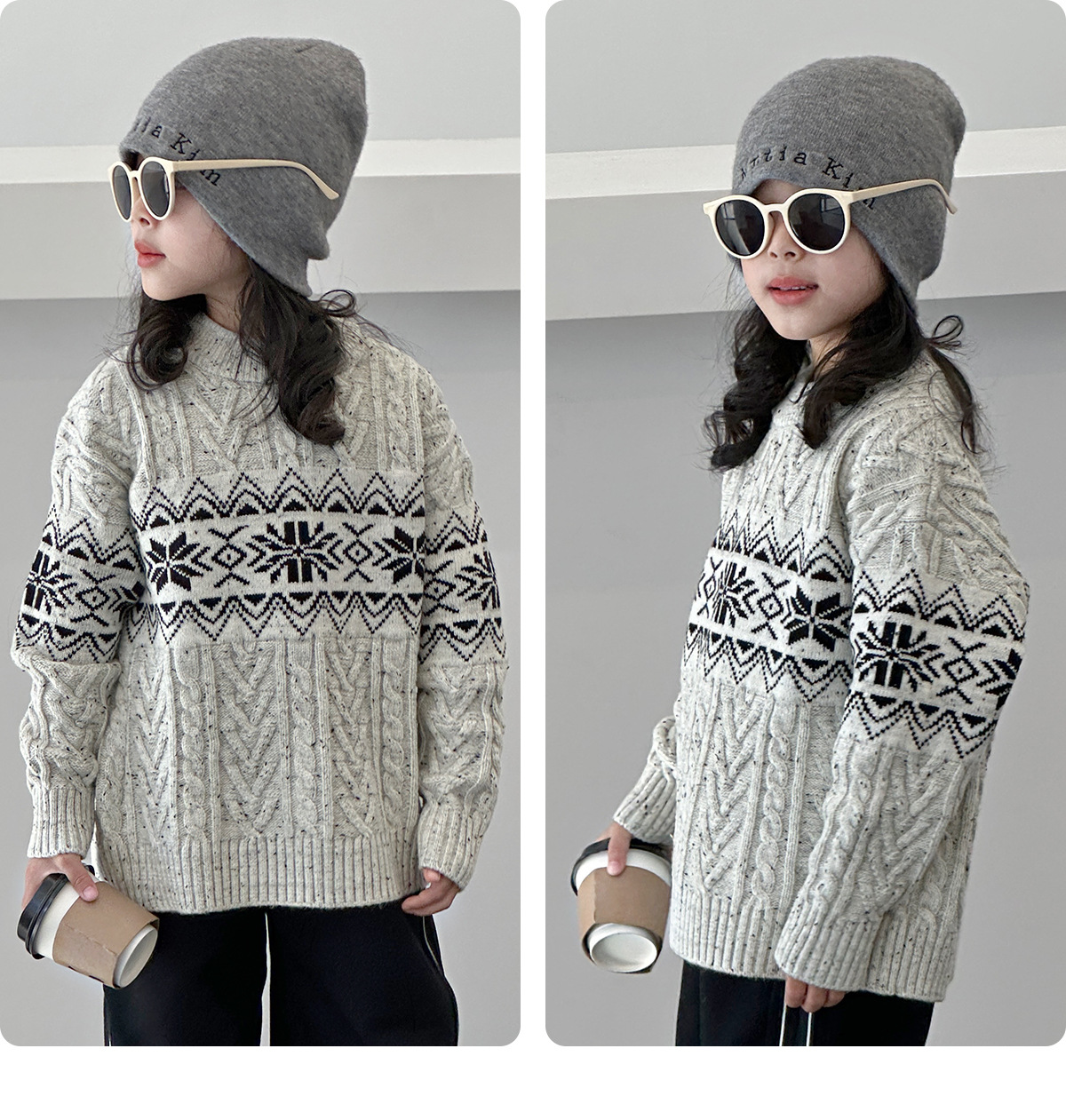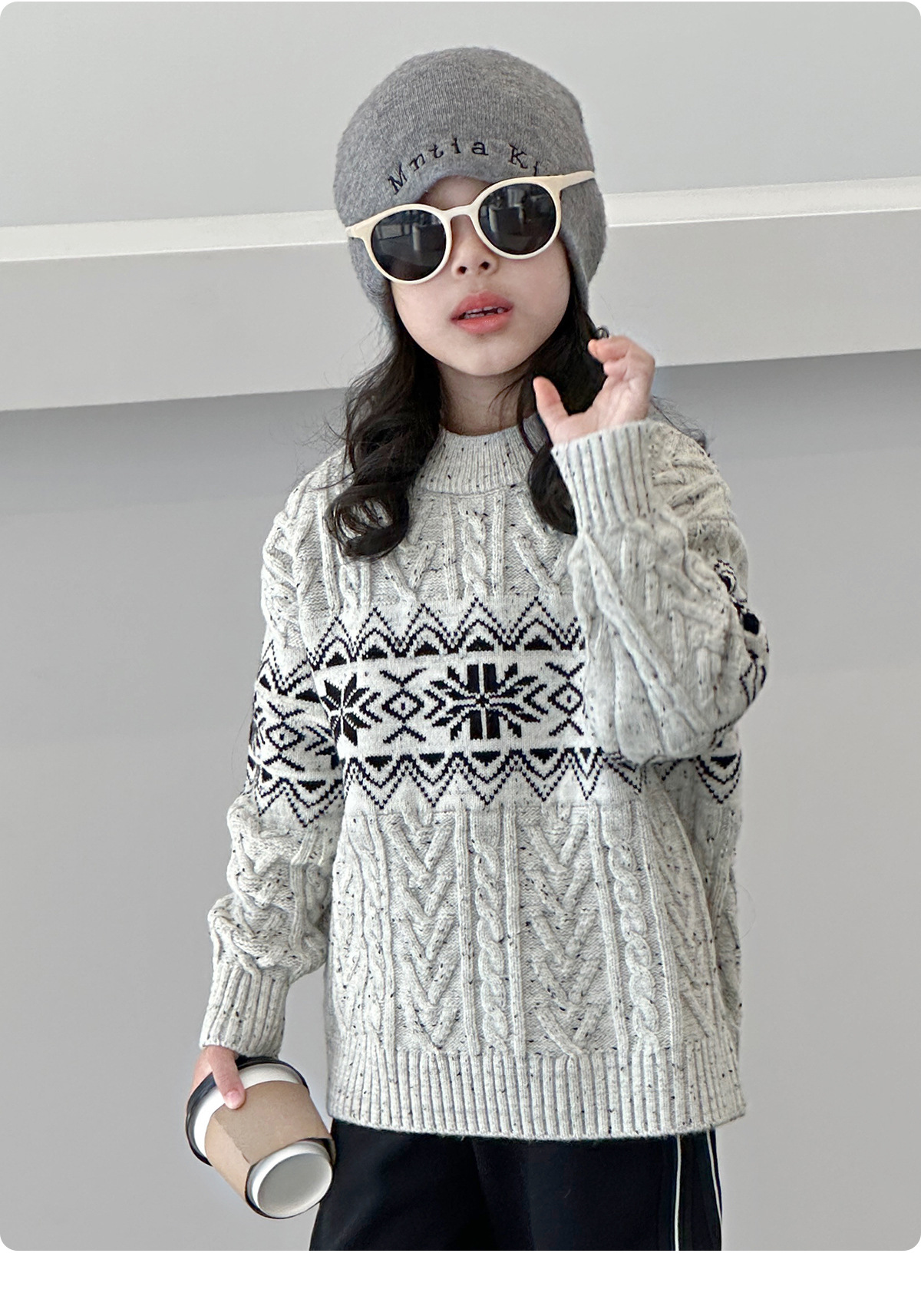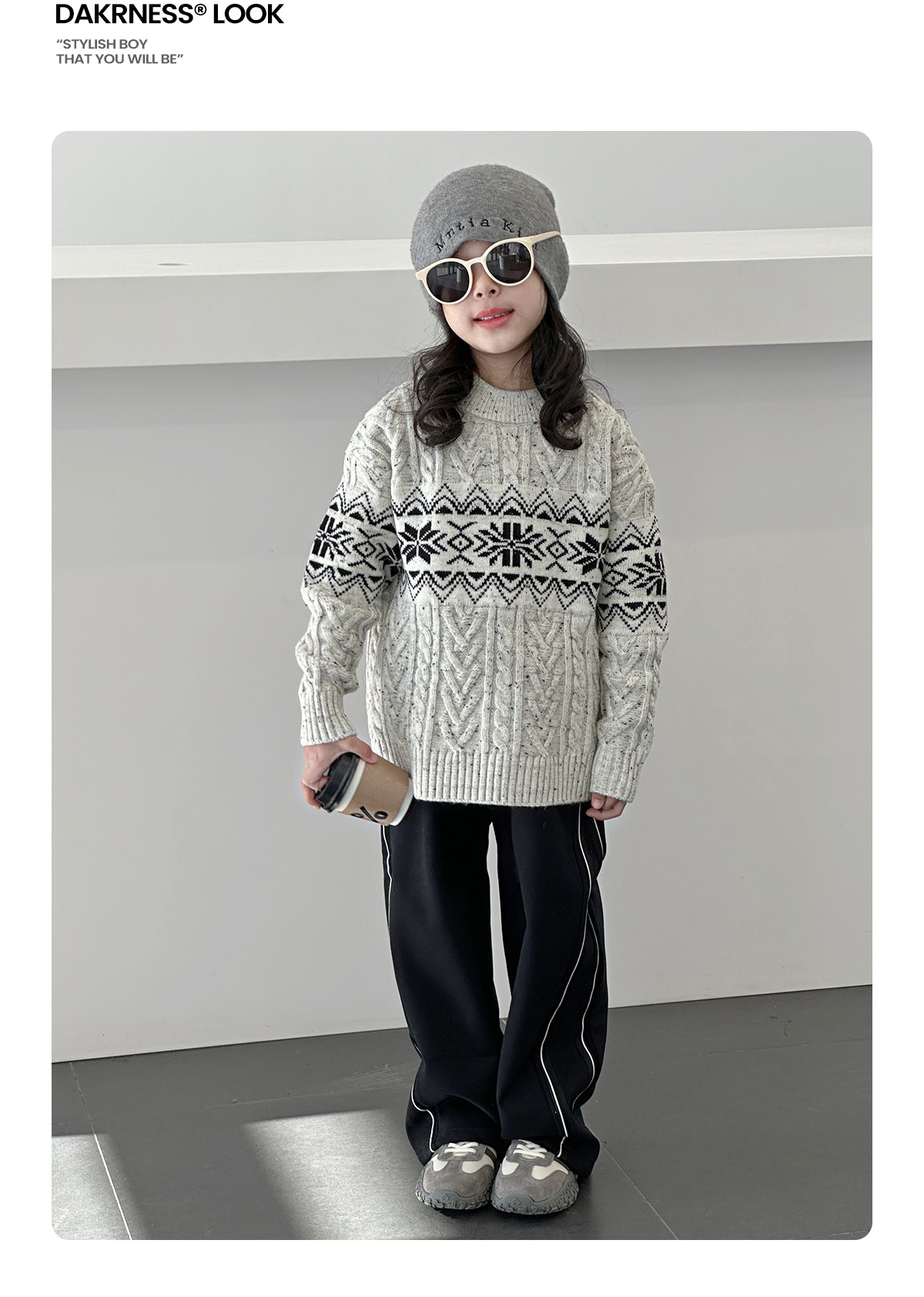 DK 아동복 겨울 레트로 프렌치 스타일 두꺼운 니트 스웨터 어린이 남아 여아 따뜻한 캐주얼 울 니트웨어 트렌디스토어 가기