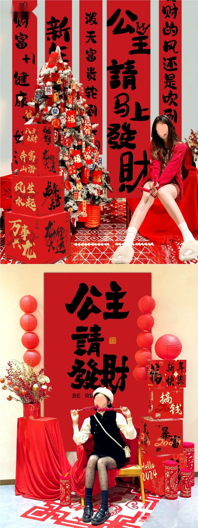 2025 년 뱀의 장식 공주 시계 배경 벽 가게 봄 축제 배너로 빨간색 사진 영역을 장식하십시오.스토어 가기