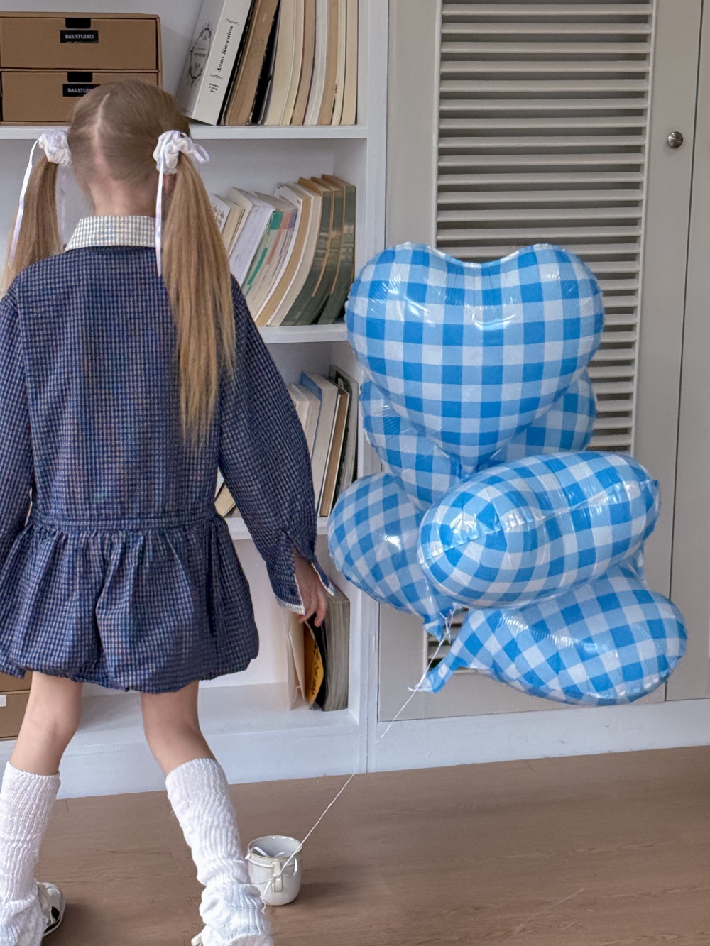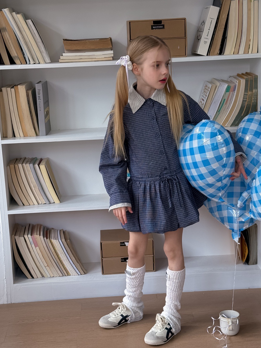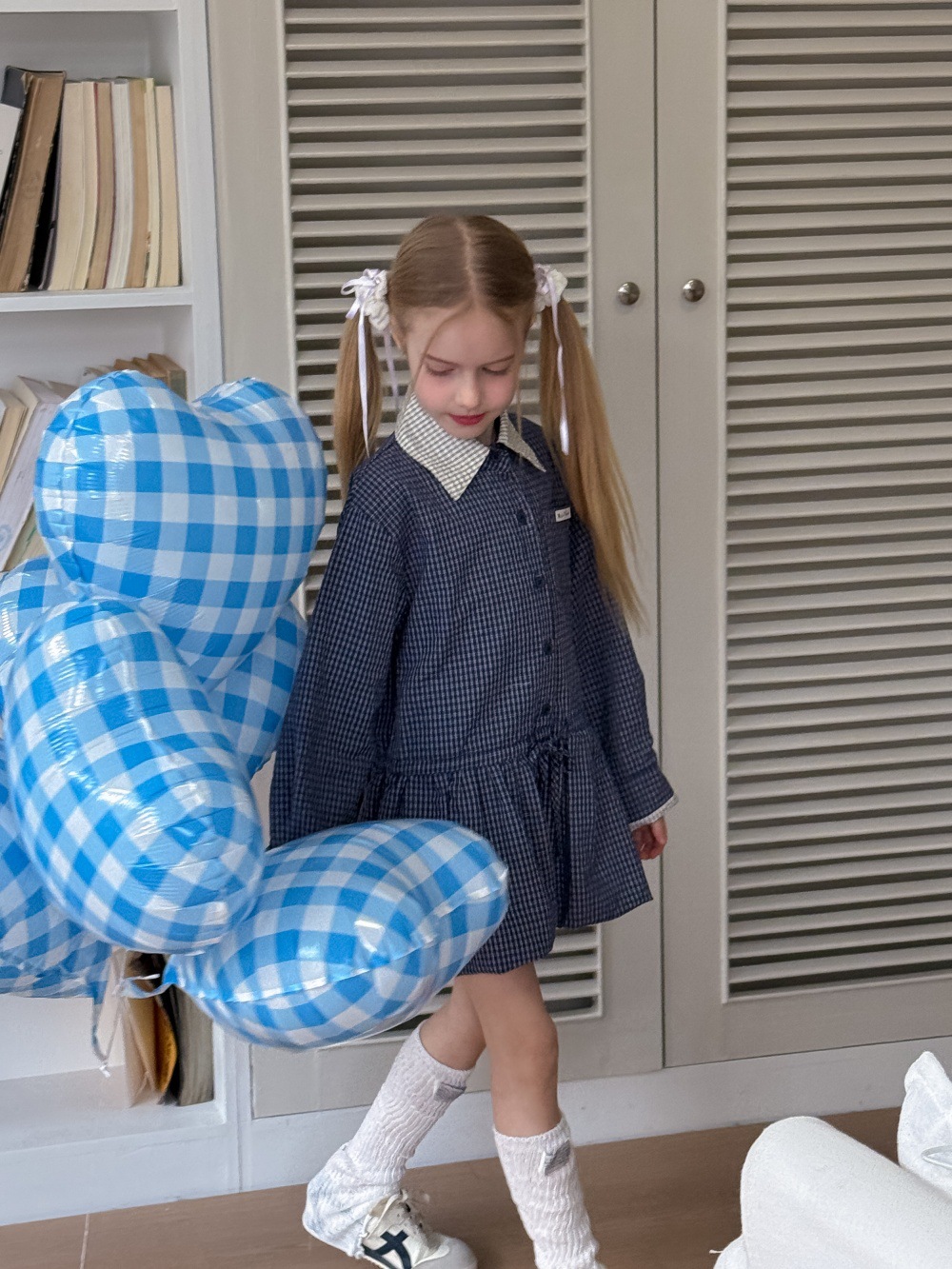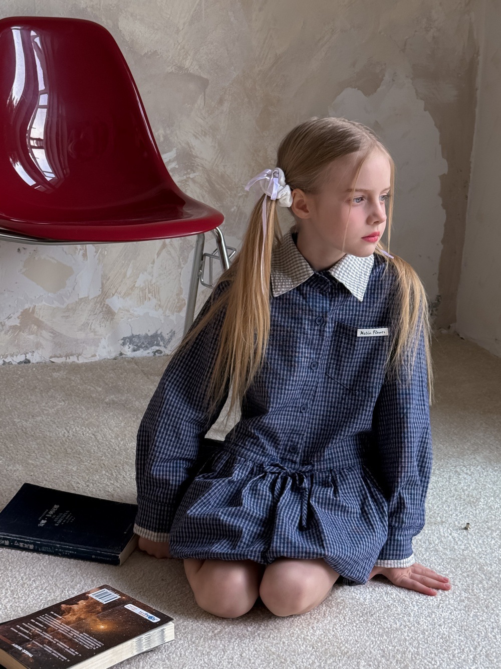 2025 여자 블루 격자 무늬 가을 새로운 한국어 버전 인형 칼라 긴 소매 드레스 어린이 복고풍 격자 무늬 셔츠 드레스스토어 가기