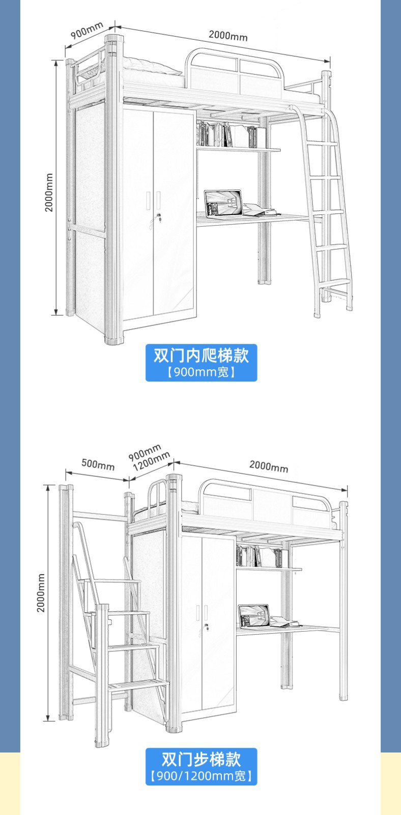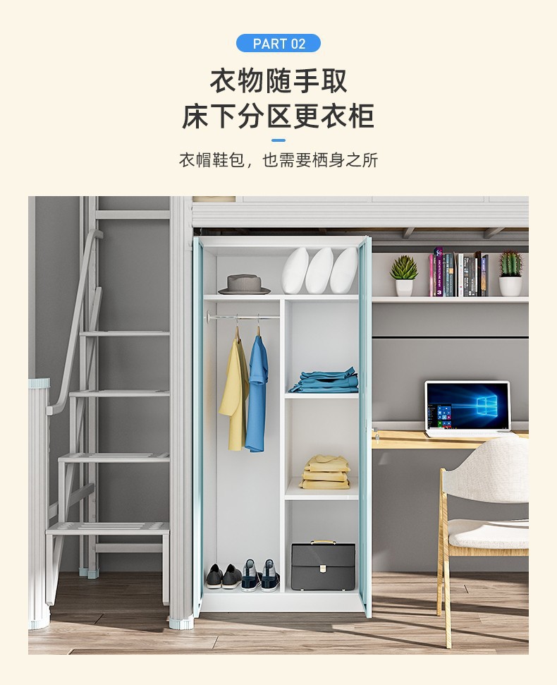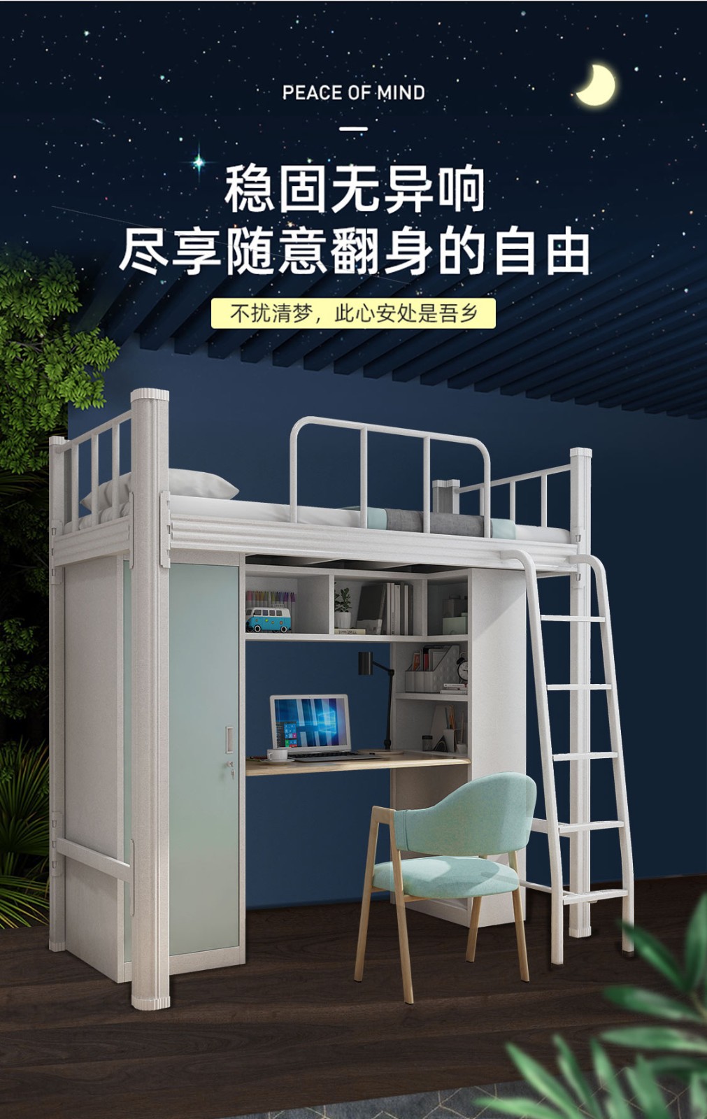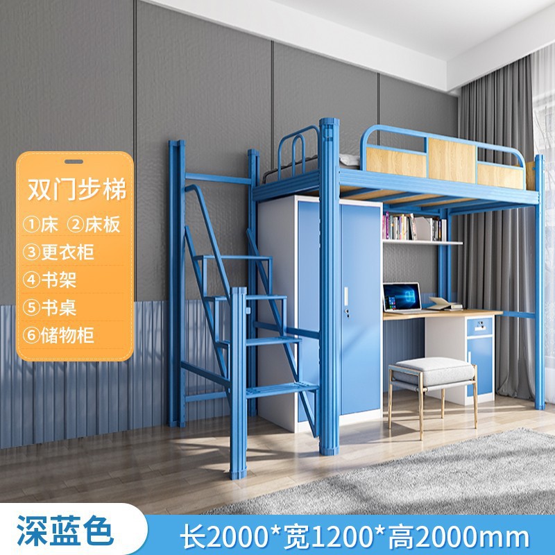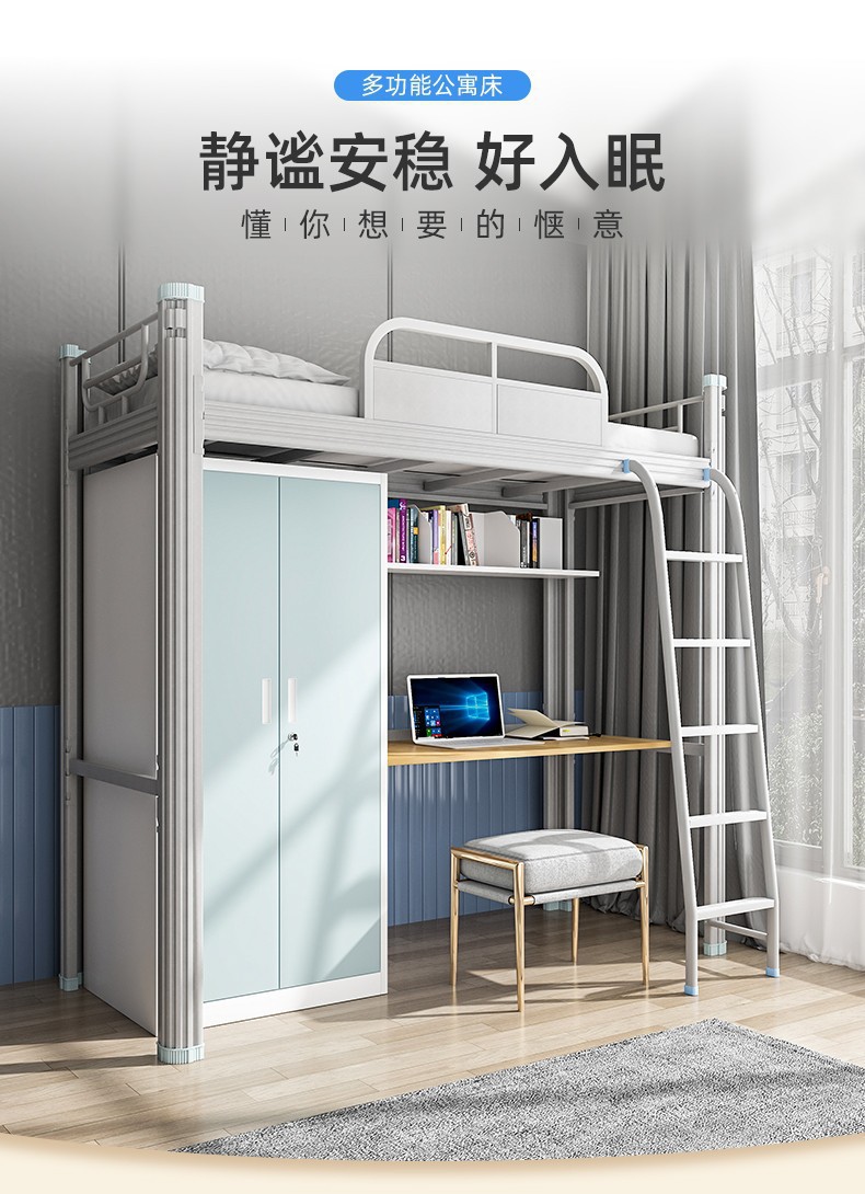 아파트 침대 대학 학생 기숙사 침대 낮은 테이블 강철 목재 조합 벨트 옷장 높고 낮은 침대 철 프레임 침대 기숙사 싱글 침대스토어 가기