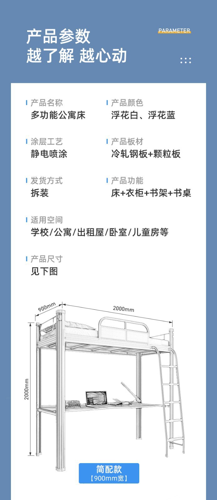 아파트 침대 대학 학생 기숙사 침대 낮은 테이블 강철 목재 조합 벨트 옷장 높고 낮은 침대 철 프레임 침대 기숙사 싱글 침대