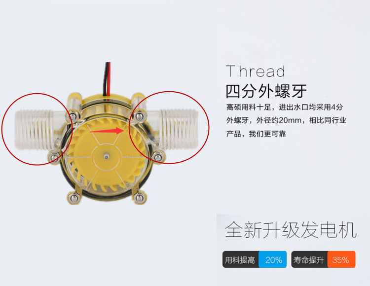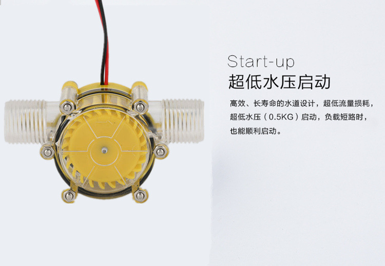 这款水力发电机,要达到一分钟流18升(公斤)水才可以带动。因为是微型水力发电机,发出来的电流按一分钟18升来算在80毫安左右,最大水压可以达到峰值200毫安左右。所以只可以带12伏的灯泡,或者给手机充电,如果水压可以达到峰值可以带12伏的灯泡7W4-5个左右。要带电机只可以带小电流的电机。超过的带不了的!!!
