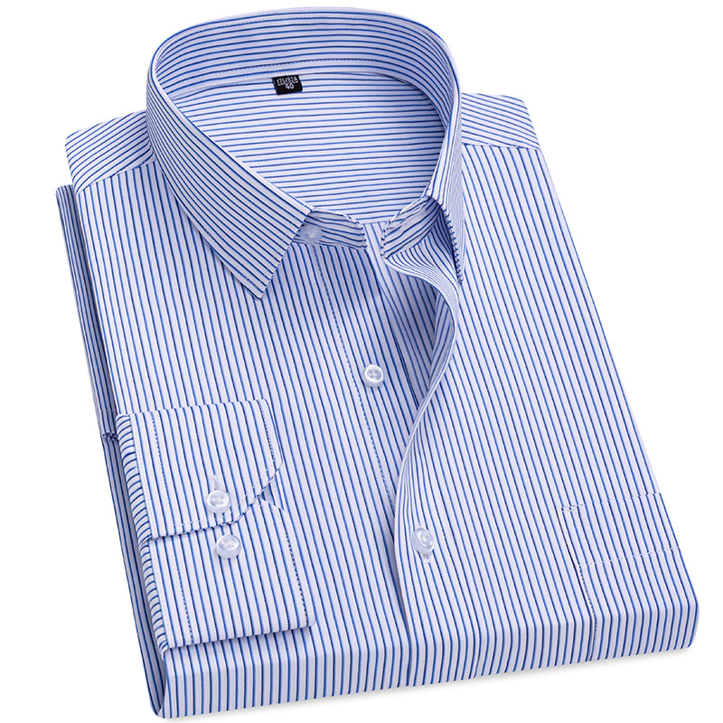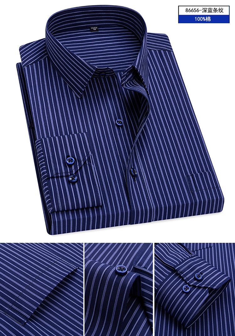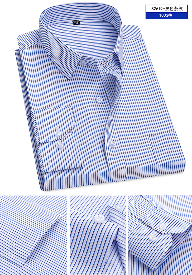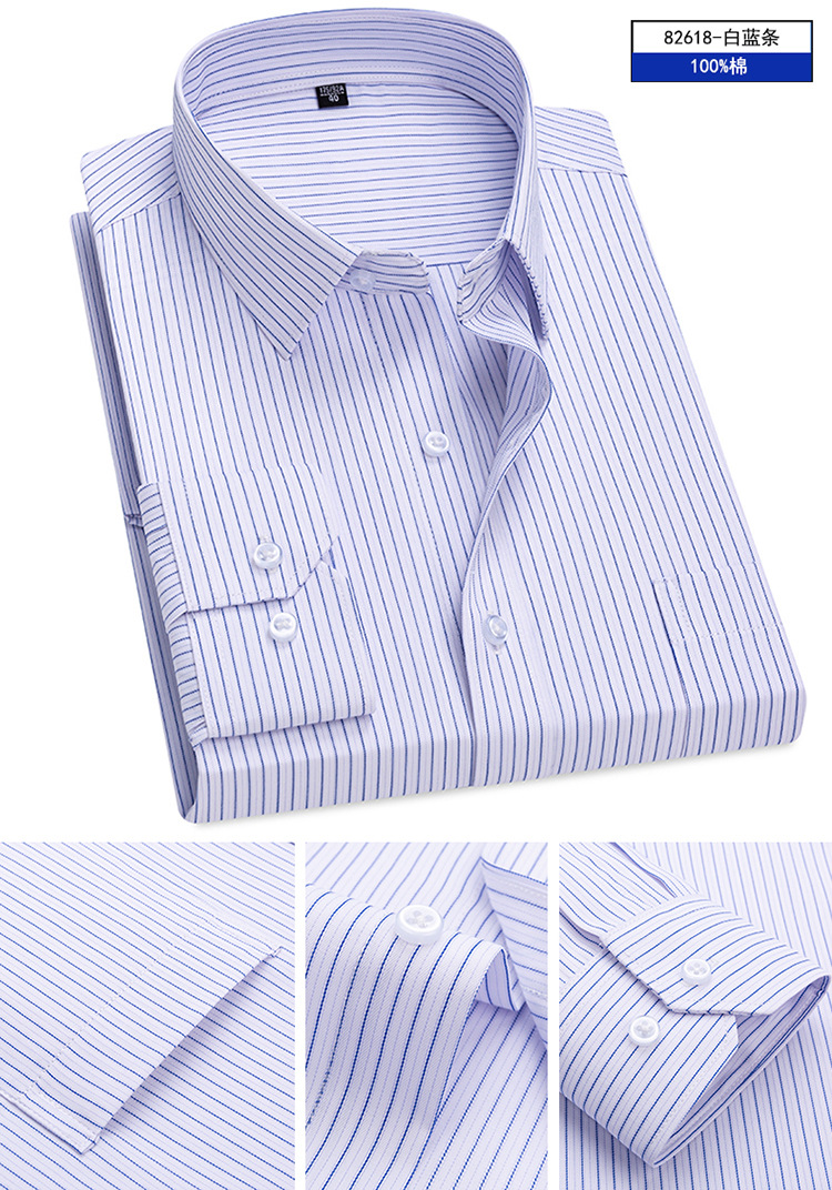 2025년 신형 고급 순면 무다림 셔츠 남성용 긴팔 스트라이프 구김 방지 흰색 셔츠 직장 및 비즈니스용스토어 가기